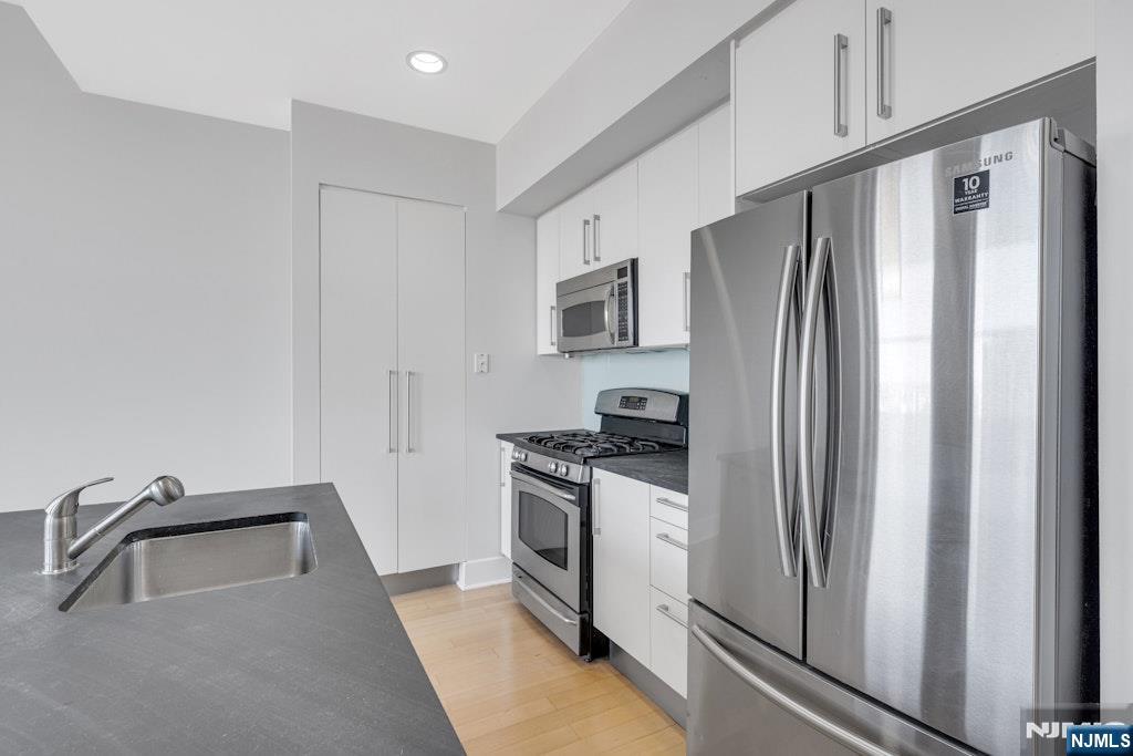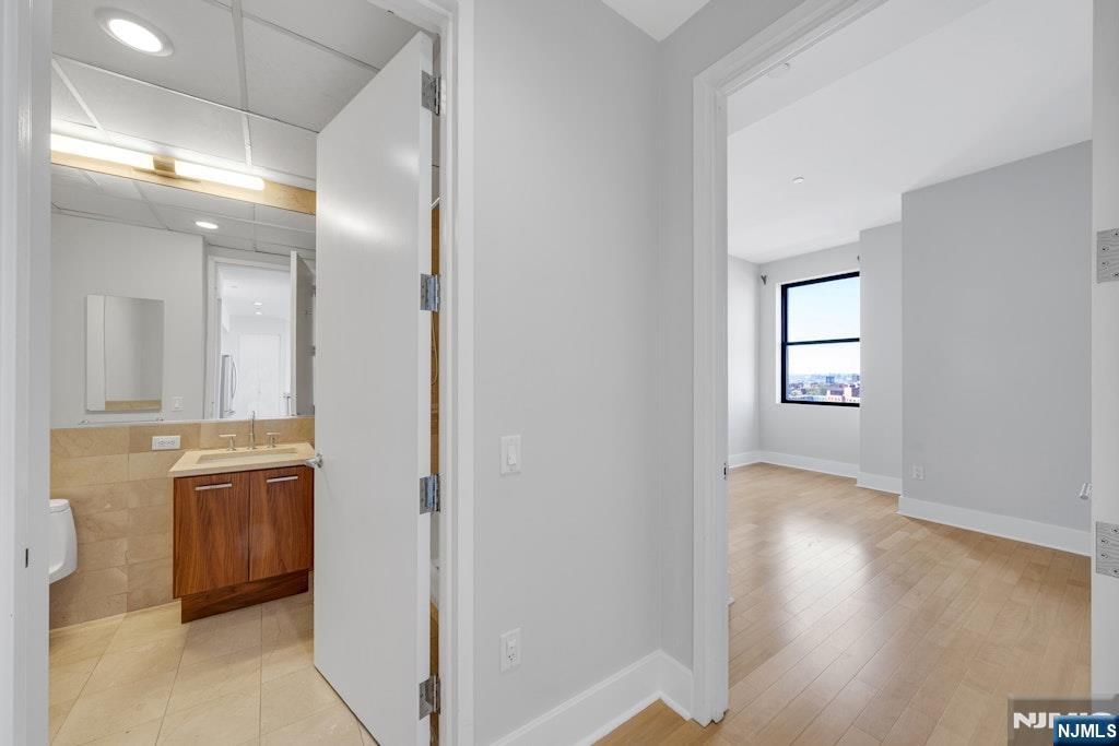 One-bedroom residence at The Beacon’s Rialto Tower. This bright and spacious 764 sq.ft. home features soaring 12-foot ceilings, oversized windows, and open city views. The kitchen includes sleek black stone countertops, stainless steel appliances, and an island that flows naturally into the living area. Highlights include hardwood floors, a washer and dryer, and a modern style bathroom. The building offers excellent amenities, including an indoor pool, fitness center, sauna, steam room, residents’ lounge, and a well-organized shuttle service with weekday and weekend schedules, providing easy access to Manhattan and Downtown Jersey City. A perfect combination of light, space, and comfort in one of Jersey City’s premier full-service communities.