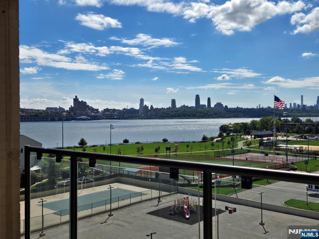 ALL Utilities IN (gas, electric, heat, HW, cable, Wi Fi, and one parking space)! In a luxury building and this very bright and spacious Apt. unit offers a breathtaking view of the Hudson River and NYC, with hardwood floor throughout. Building amenities feature 24hr security, pool, tennis court and fitness room. Great location too: NYC commuters' delight, with minutes' walk to NYC bus and ferry. Convenient grocery shopping and great restaurants in town. Bring your clients in! Owner has a NJ lic.