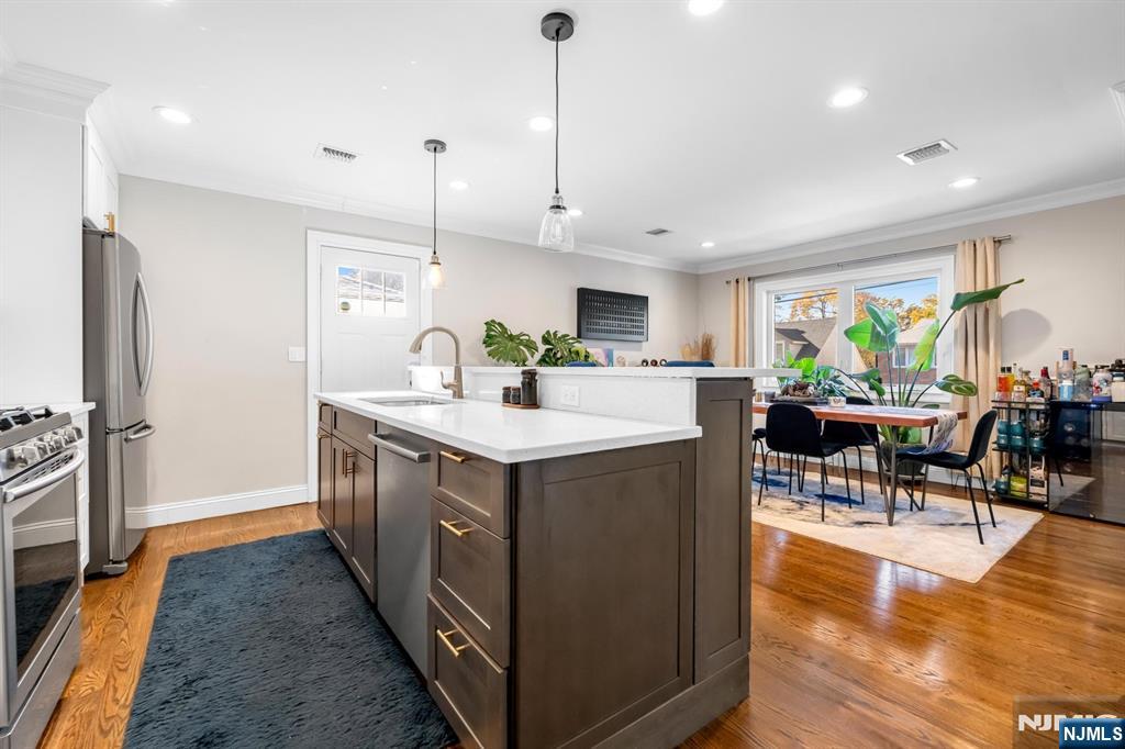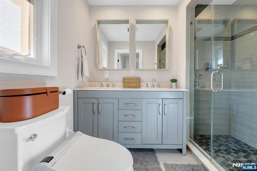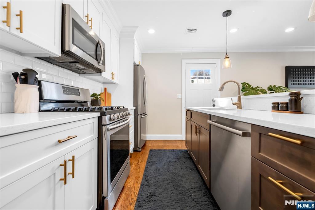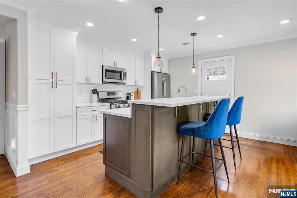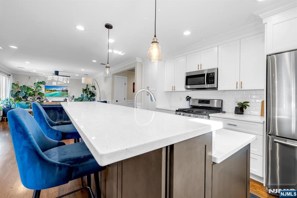 Beautifully renovated and completely move-in ready brick ranch featuring 3 bedrooms and 3 full bathrooms. This home offers a bright, open-concept layout ideal for entertaining, with a spacious living room, dining area, and a stunning chef’s kitchen showcasing stainless steel appliances, a large center island, and quartz countertops. Elegant hardwood floors, detailed moldings, and custom trimwork add warmth and sophistication throughout. The main level includes three generous bedrooms and two full bathrooms, including a luxurious primary suite with a walk-in closet and a private bath featuring a double vanity. The fully finished lower level provides incredible additional living space with a large recreation room, a bonus summer kitchen, a full bathroom, and direct access to the two-car garage. Enjoy outdoor living in the expansive backyard with a patio, perfect for relaxing or entertaining. Located in a prime Fort Lee neighborhood with easy access to NYC transportation, excellent restaurants, shops, and a welcoming community atmosphere.