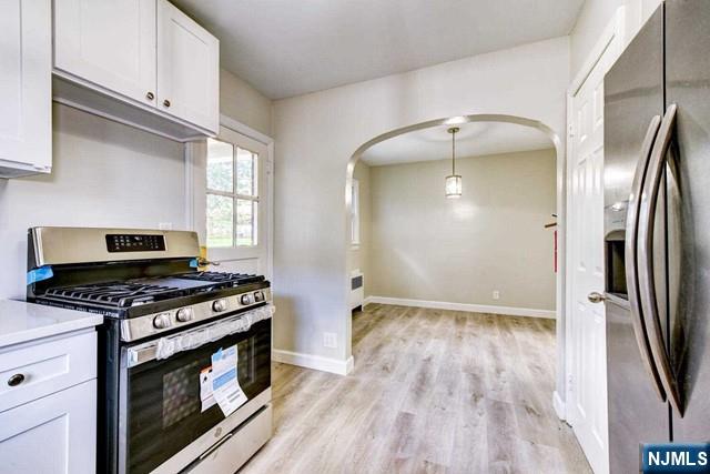 This Cape Cod home, newly renovated in 2022, is located in a quiet tree-lined neighborhood overseeing the city skyline with only a short distance to schools, shopping, restaurants, MetLife Stadium, American Dream Mall, and approximately 15 miles to NYC. It boasts an entertainment-size living room, formal dining room, 2 sizable bedrooms, and a spacious kitchen on the 1st floor. Relax or entertain on the patio easily accessed from the noteworthy kitchen. The 2nd floor compliments the 1st floor with an additional large bedroom and a half walk-in closet. The Basement is fully finished with a half bathroom, recreational room, family room, and walkout to the garage. Imagine yourself the next owner of this breathtaking, move-in ready home! Further imagine your transformed lifestyle in this nothing-short-of-spectacular abode.