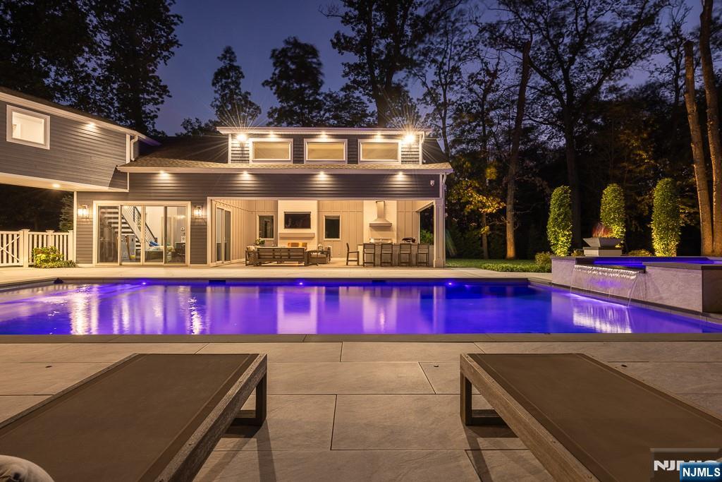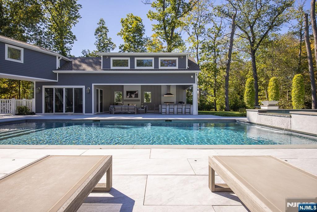 Welcome to this stunning luxury estate, offering a perfect blend of sophistication, comfort, and resort-style living. From the moment you arrive, the circular driveway, elegant uplighting, and manicured landscaping set the tone for what awaits inside. Step through the front door and experience exceptional craftsmanship throughout every space. Custom wallpaper, designer finishes, and thoughtfully curated details create a warm yet refined atmosphere. The gourmet kitchen is a chef’s dream, featuring a 64-inch refrigerator and freezer, double wall ovens, a built-in microwave, a farmhouse sink with filtered water, and a spacious wet bar with a wine fridge and sink, perfect for entertaining. Sliders from the kitchen open directly to the backyard patio, making indoor-outdoor living effortless. A separate pantry and abundant cabinetry ensure both beauty and function. Enjoy multiple living and entertaining spaces, including a formal dining room, a living room with a cozy gas fireplace, and a screened-in porch off the living room that also opens to the backyard and a powder room. The office, set behind elegant French doors, features custom cabinetry and shelving, creating a perfect work-from-home environment. The first-floor guest suite offers a walk-in closet and a private en suite bath, providing a comfortable retreat for visitors. Upstairs, the primary suite boasts a private deck, custom closets, and a luxurious en suite bathroom. Two additional bedrooms share a stylish Jack & Jil