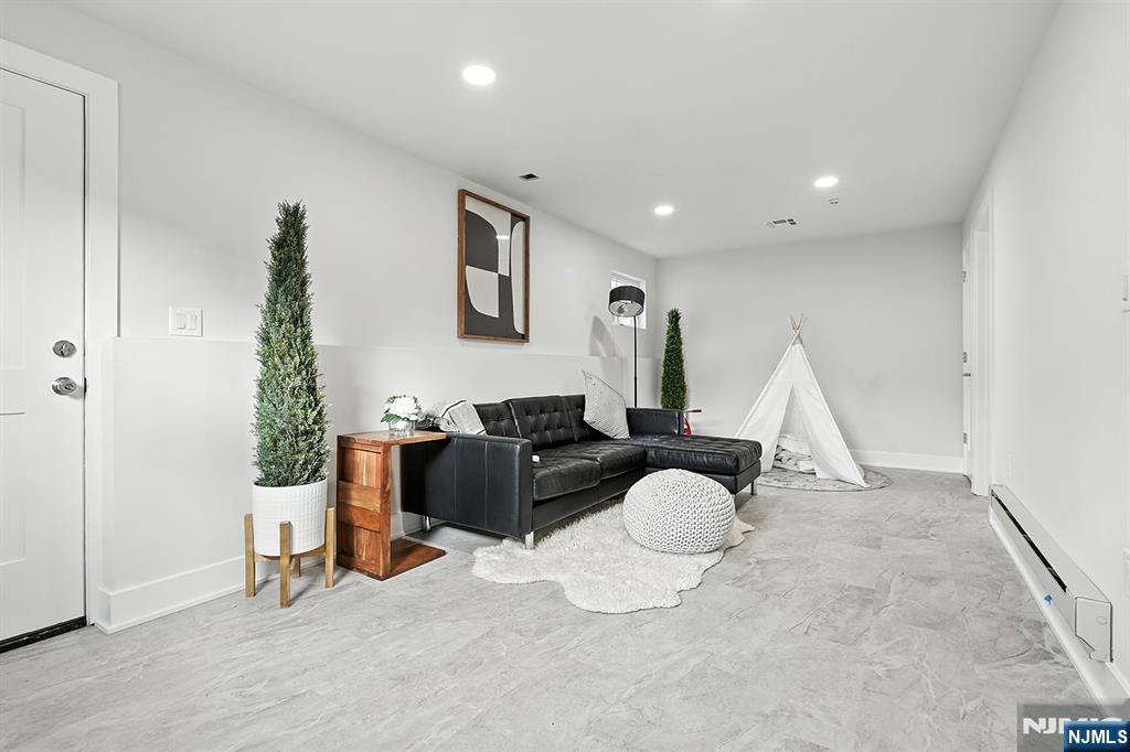 Brand New Modern Luxury " Single Family Home " No HOA! 4 Rooms Meet Town Regulations for Bedrooms! This new 3-level, 2,627 sq. ft. home combines modern design with everyday comfort. Andersen High Performance windows, 9' ceilings, and hardwood floors enhance the open main level, featuring a designer kitchen with quartz countertops and full quartz backsplash, 2-tone cabinetry w/ center island, and all GE stainless steel appliances. The kitchen flows into the dining and living areas, creating a great space for both entertaining and daily living.The primary suite offers a spacious bathroom with double sinks, a glass-enclosed walk-in shower, and a generous closets. You will also find a 2nd bedroom, full guest bath, washer/dryer and flexible office or den. The 1st level includes a recreation/media room, powder room, and full laundry room equipped with full size GE Washer/Dryer & sink.A private 14' x 12' deck, extensive professional landscaping with sod and shade trees creates a beautiful setting. Exterior includes Stone, Hardie Plank siding, paver driveway, and insulated garage with opener. Parking accommodates 3 vehicles.Additional highlights include designer Kohler fixtures and lighting, 2-zone central A/C, natural gas heat, and fire sprinkler on all floors. With no HOA fees, a 10-year homeowner warranty, and a location minutes from NYC transit, dining, shops, and top-rated schools, this home delivers style, function, and long-term value.