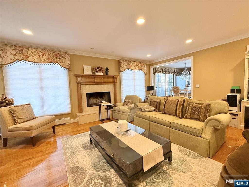 Immaculate Center Hall Colonial with a large and open floor plan and gleaming hardwood floors throughout in Englewood Cliffs! The bright and welcoming foyer leads into a large formal dining room, and French doors to a spacious office. The expansive great room features a gas fireplace, and is open to the beautiful gourmet kitchen including a large center island, high-end stainless steel appliances and granite countertops. Access to a large deck off of the kitchen. A half bath and laundry room completes the first level. The second level offers a luxurious primary suite featuring dual custom closets and a primary bath with a vaulted ceiling, two vanities, a jetted tub and separate shower. Three large bedrooms and an updated full bath completes the second level. An expansive walk-out lower level includes a large family room with a gas fireplace and sliding doors to the backyard. A kitchenette with a peninsula, large bedroom and updated full bath completes the lower level. A two-car garage and wide driveway are great for parking! Close proximity to NYC and transportation. Great location, convenient to everything!