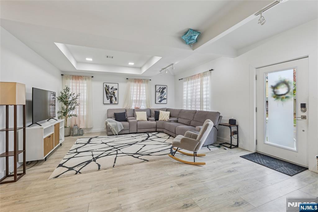 Step into a home where every detail exudes luxury and timeless style. Completely rebuilt and expanded, this 4-bedroom, 3-bath residence offers an exceptional blend of classic charm and modern sophistication. The bright open-concept layout features high ceilings, beautiful hardwood floors, and a stunning floating staircase with a double-height ceiling accented by a statement chandelier. The large gourmet kitchen showcases quartz countertops, premium stainless-steel appliances, a featured pantry with glass doors and lighted shelves and a stylish wet bar that opens seamlessly to the living and dining areas. The first floor also includes a bedroom and full bath. Upstairs, the primary suite offers vaulted ceilings, two walk-in closets, and a spa-inspired bathroom. Two additional bedrooms feature unique design touches, a private balcony, and also upstairs cozy office nook. From the dining room, glass sliding doors open to a spacious deck overlooking a private backyard. The home also includes a detached two-car garage and a full basement providing laundry and extra storage. Located in Little Falls, one of the best towns to live in, close to everything! Minutes to the NYC train or bus, top-rated schools, parks, and cafés. This home is a true turnkey gem ready to be enjoyed from day one!