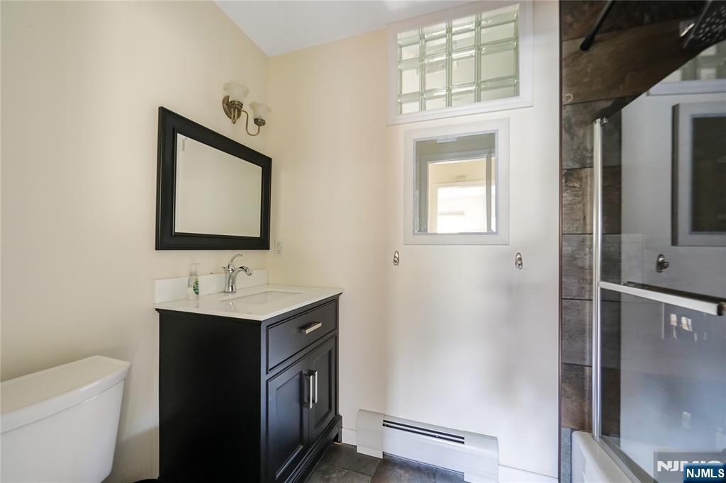 Charming Bi-Level home sits on a tree-lined street. This spacious 4-bedroom, 3-full-bathroom bi-level is ideally located on beautiful grounds with close proximity to downtown Closter. The Main Level features a kitchen, complete with a Quartz countertop & center island, which flows seamlessly into the sun-drenched dining & living rooms. A sliding glass door from the dining area opens to an outside deck, offering beautiful views of the large backyard. This level also includes the primary suite with a private primary bath, two additional bedrooms, & a full hall bathroom. The Lower Level is highly functional, offering a very spacious fourth bedroom, a full bathroom, and a comfortable family room with sliding glass doors leading directly to the backyard. Completing this level are the laundry area & a two-car garage. Amenities include handsome wood floors, central air conditioning, base board heat. Closter is renowned for its top-rated school district and excellent recreational programs.