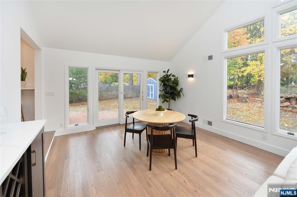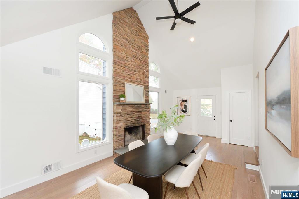 WELCOME TO THIS STUNNIBG UPDATED EXPANDED HOME NESTLIED ON A QUIET TREE-LINED STREET IN THE HEART OF DUMONT. FEATURES 4 SPACIOUS BEDROOMS AND 2 FULLY RENOVED BATHROOMS, THIS HOME BLENDS CLASSIC CHARM WITH MODERN UPDATES THROUGHOUT.STEP INSIDE TO DISCOVER A BRIGHT LIVING ROOM WITH SOARING CATHEDRAL CEILINGS, A COZY WOOD-BURNING FIREPLACE, AND A SLIDING GLASS DOOR LEADING TO A PAVER PATIO-PERFECT FOR RELAXING OR ENTERTAINING. THE BRAND NEW KITCHEN SHOWCASES CONTEMPORARY FINISHES, SLEEK CABINETRY, AND QUALITY APPLIANCES. BOTH BATHROOMS HAVE BEEN COMPLETELY UPDATED WITH STYLISH FIXTURES AND TILE WORK. ENJOY NEW HARDWOOD FLOORS ACROSS THE FIRST AND SECOND LEVELS AND A FRESH, MODERN PAINT PALETTE THAT GIVES THE HOME A WARM, INVITING FEEL. THE FINISHED BASEMENT OFFERS ADDITIONAL LIVING SPACE- IDEAL FOR FAMILY ROOM, HOME GYM OR OFFICE. OUTSIDE YOU'LL FIND TASTEFUL LANDSCAPING, AND A PRIVATE BACKYARD WITH A SHED. HOME HAS CENTRAL AIR CONDITIONING FOR YEAR-ROUND COMFORT. LOCATED JUST STEPS FROM A LOCAL PARK AND HIGHLY DESIRABLE SELTZER SCHOOL. THIS NOVE-IN- READY HOME OFFERS THE PERFECT BLEND OF COMFORT, STYLE, AND CONVENIENCE.