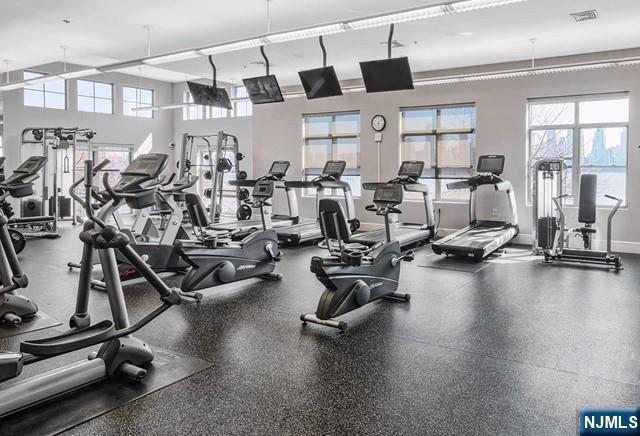 Fabulous Hudson Club 1232 square foot two bedroom, two bath with loft and views of NYC!! Vaulted ceilings. Flooded with sunlight all day long!! Upgraded throughout!! Hardwood floors, stainless steel appliances, granite countertops, stylish cabinets and upgraded bathrooms. Loft area makes great home office with storage. Rent includes technology package, (high speed internet, Cablevision's iO package, and security alarm), gas, water and amenity package, (outdoor swimming pool with Jacuzzi, tennis courts, children's playground, dog run, indoor tennis court, fitness center, aerobics room, club room, lounge and wet bar, business center with conference room and private movie room). One indoor parking space; second spot available for $200/month. Free shuttle to NY Waterway Ferry to NYC. Steps to 158 bus to Port Authority. Close to restaurants and shopping. A Commuter's Dream Home!!