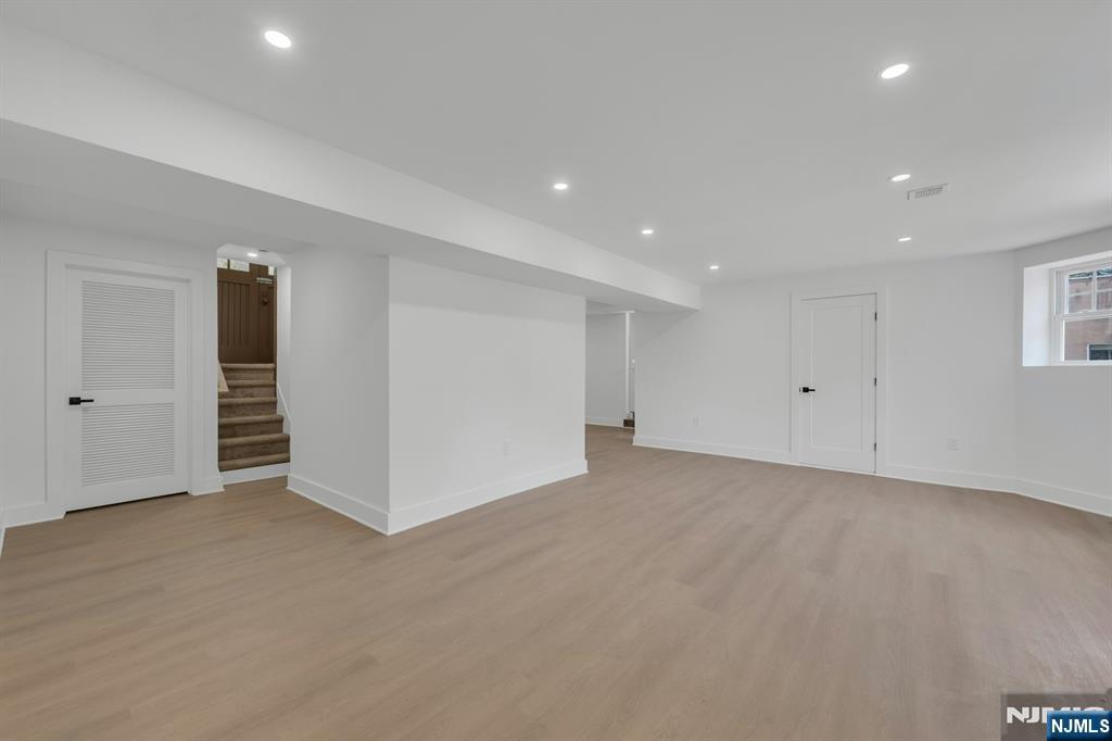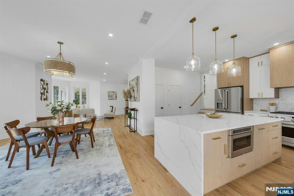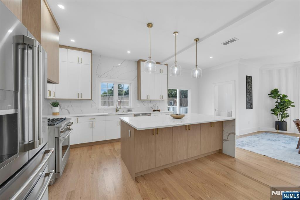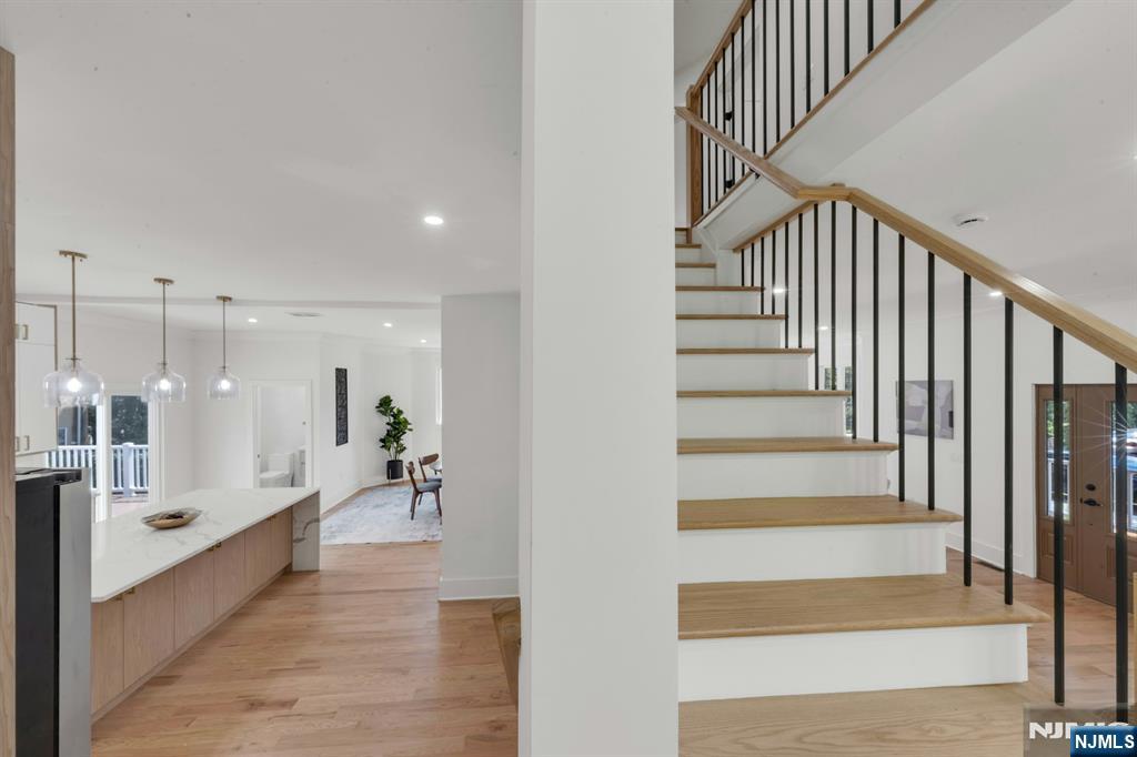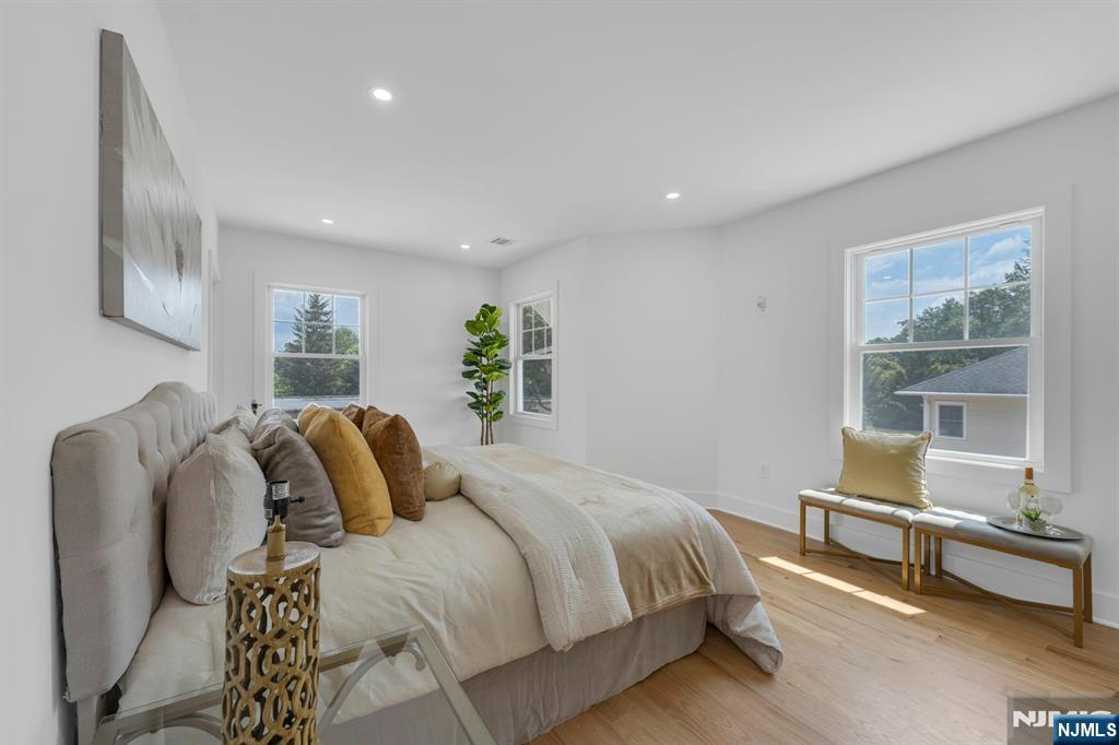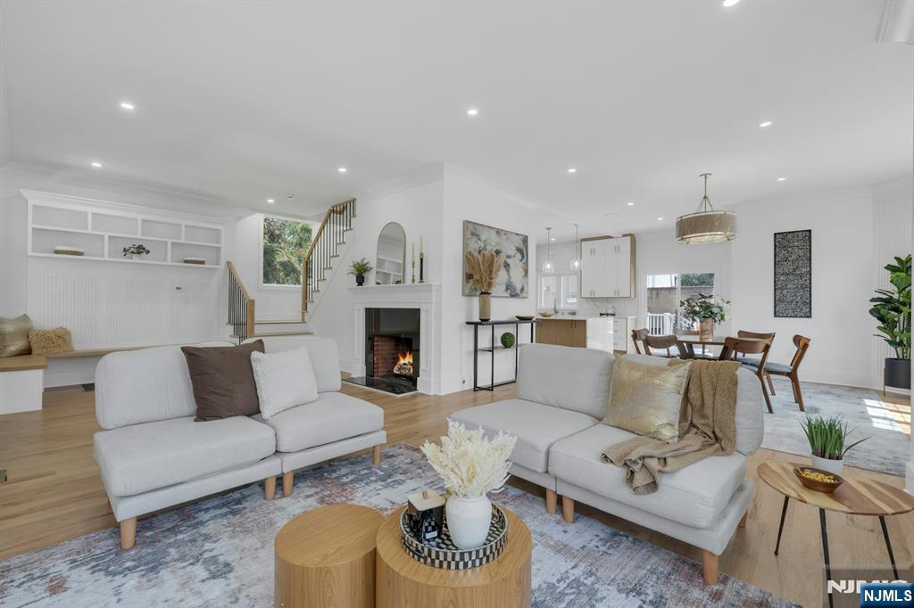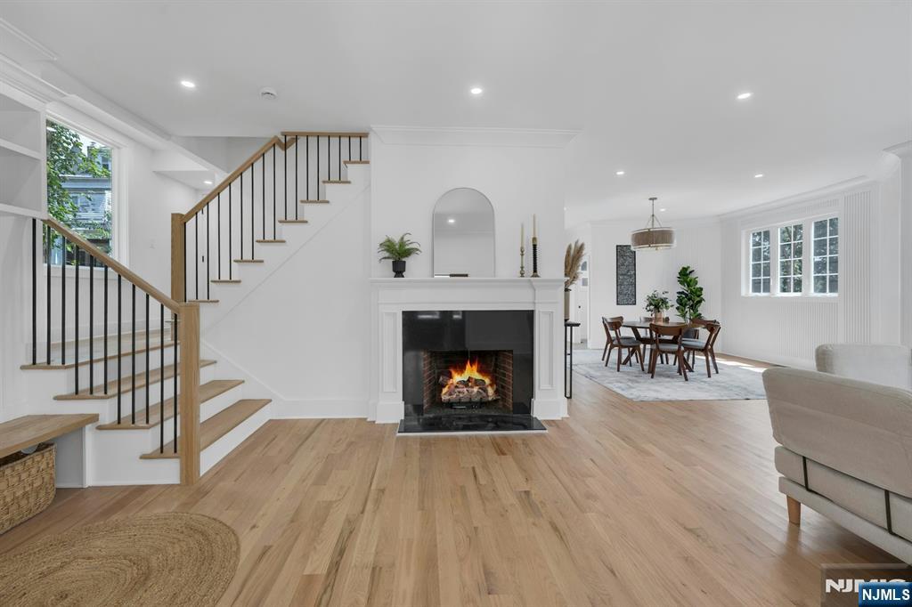 Renovated four-level single-family home for rent in Rutherford offering 5 bedrooms and 4.5 baths with flexible space for work, guests, or hobbies. The main level features a welcoming living room with gas fireplace, formal dining room, eat-in kitchen, powder room, and sliders to a deck and backyard. The second floor includes a primary suite with walk-in closet and full bath plus two additional bedrooms and another full bath. The third floor adds two bedrooms, a full bath, and a laundry room with storage. A finished basement provides a recreation area, kitchenette/laundry, and another full bath. Multi-zone central air and heat, hardwood floors throughout, and a detached two-car garage with off-street parking. Pets conditional. Available 11/1. Renters insurance required. Tenant pays all utilities including water and is responsible for lawn care and snow removal. Close to downtown shops, parks, schools, and NYC transportation.