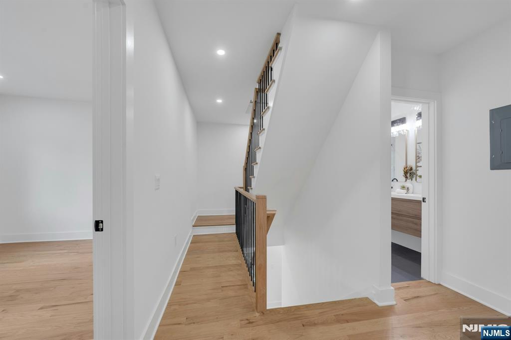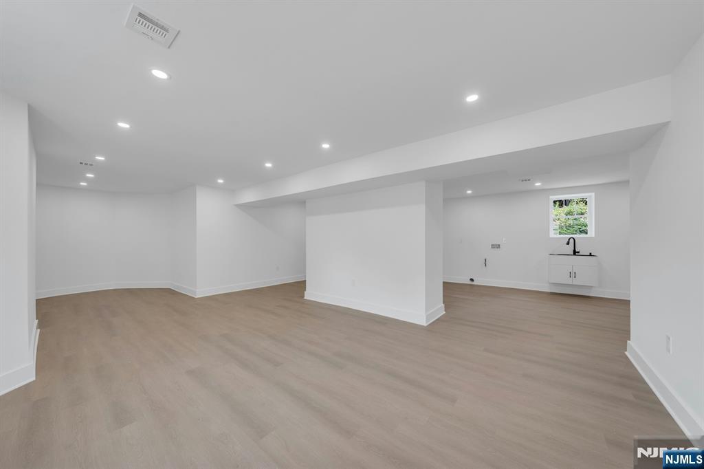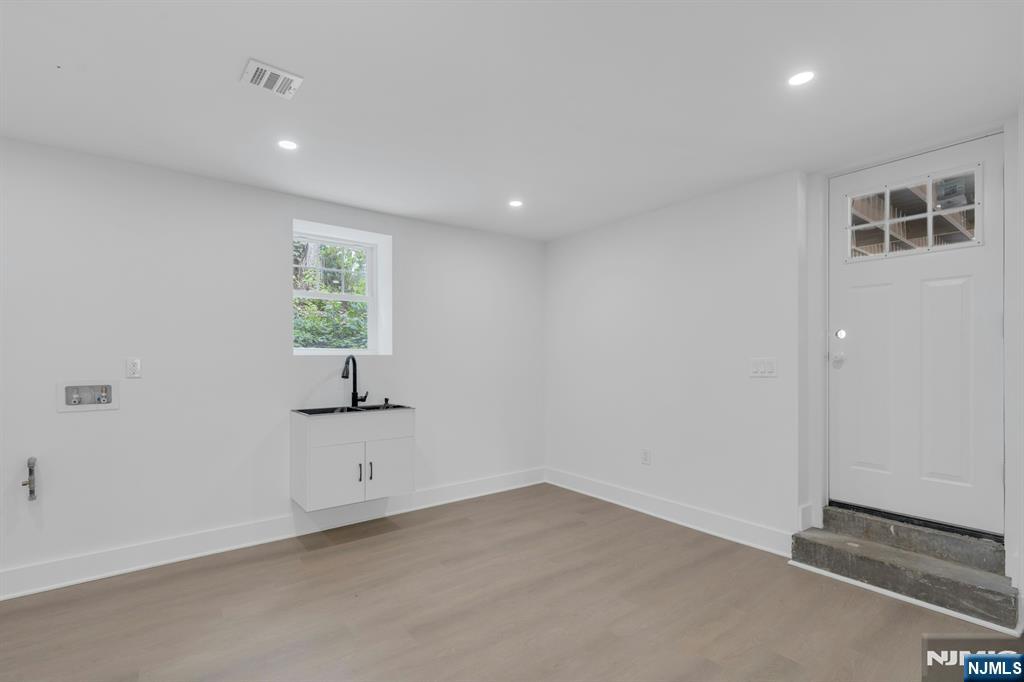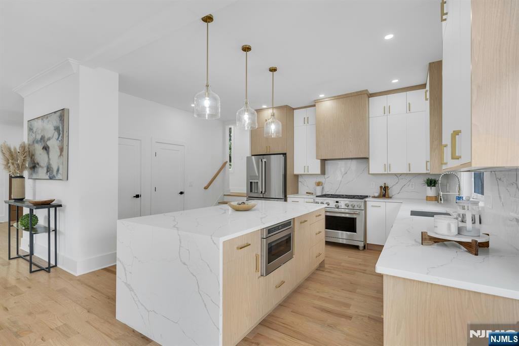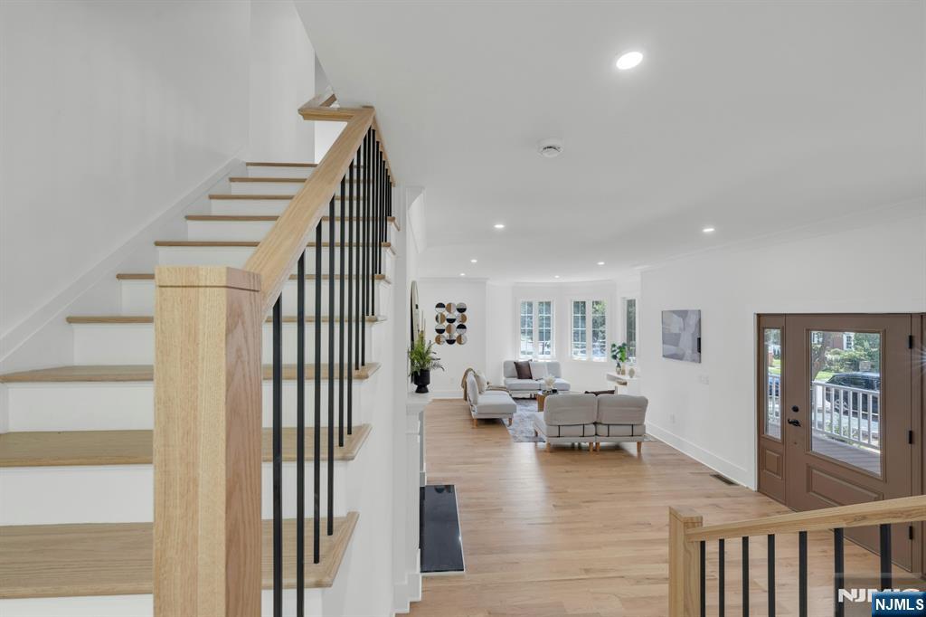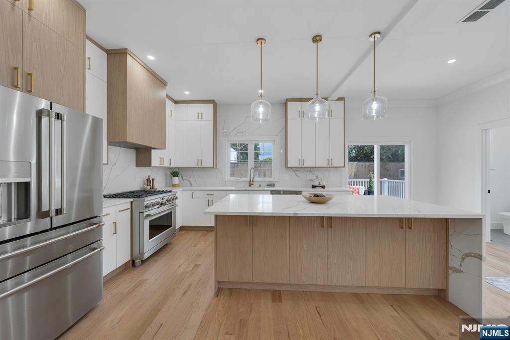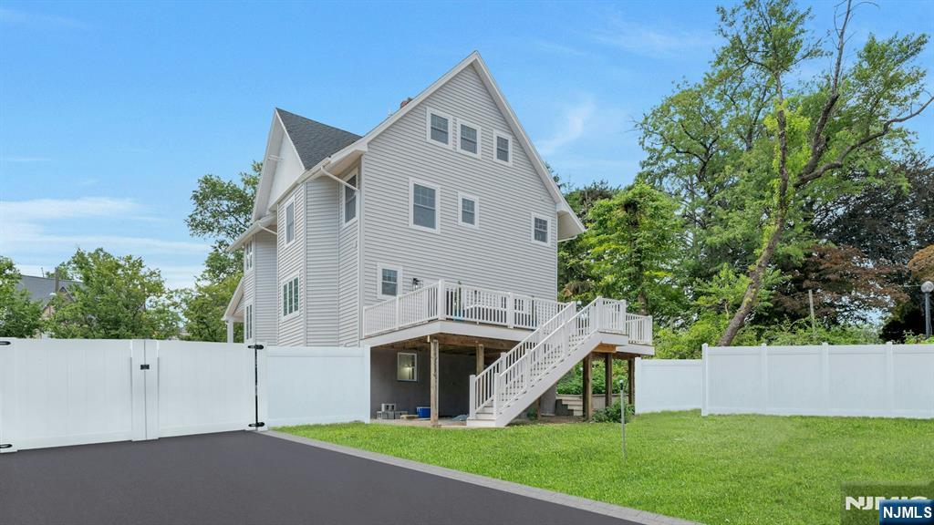 Renovated four-level single-family home for rent in Rutherford offering 5 bedrooms and 4.5 baths with flexible space for work, guests, or hobbies. The main level features a welcoming living room with gas fireplace, formal dining room, eat-in kitchen, powder room, and sliders to a deck and backyard. The second floor includes a primary suite with walk-in closet and full bath plus two additional bedrooms and another full bath. The third floor adds two bedrooms, a full bath, and a laundry room with storage. A finished basement provides a recreation area, kitchenette/laundry, and another full bath. Multi-zone central air and heat, hardwood floors throughout, and a detached two-car garage with off-street parking. Pets conditional. Available 11/1. Renters insurance required. Tenant pays all utilities including water and is responsible for lawn care and snow removal. Close to downtown shops, parks, schools, and NYC transportation.