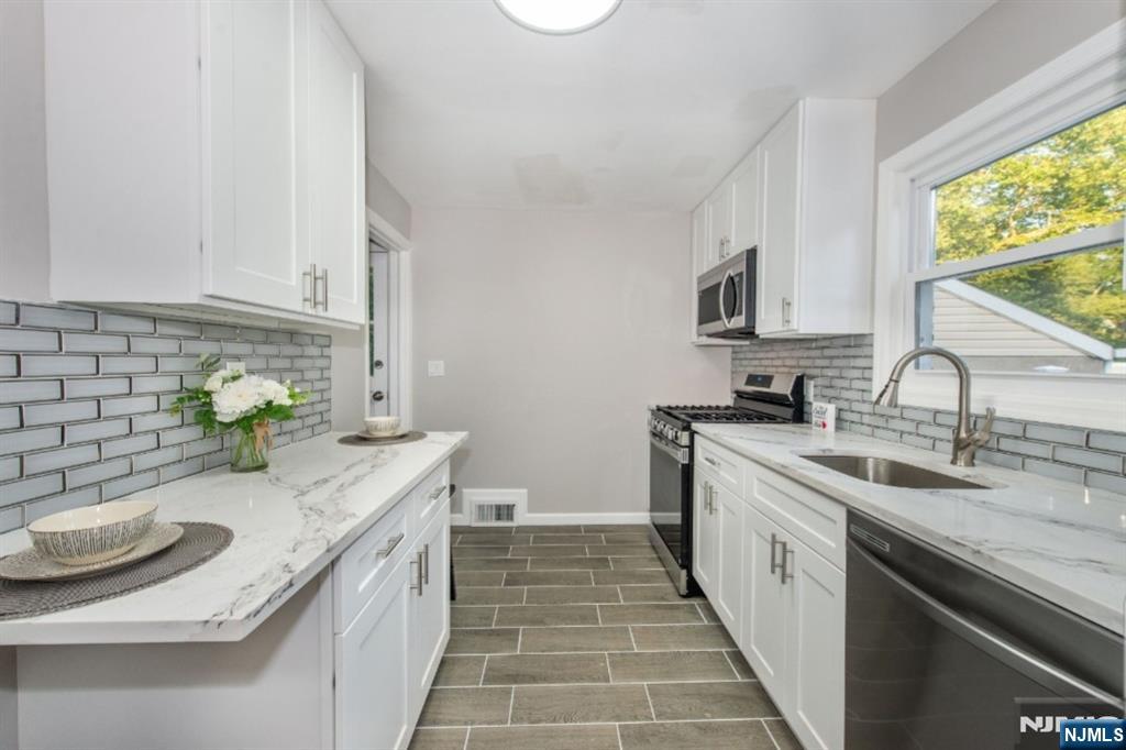Come see the fabulous, renovated cape in Dumont. The first level welcomes you to the entry foyer with a coat closet, good size living room with gleaming hardwood floors. The gourmet kitchen with soft closing doors, brand-new stainless-steel appliances, granite counters and breakfast bar. Direct access to the backyard from the side door. The dining room is large, with sliders to the quaint backyard space. First floor renovated bath and primary first floor bedroom. The second level boasts two additional bedrooms, modern half bath and extra space for a possible office or sitting area. There is a full finished basement, storage and laundry room. Attached garage and central air. Tenant is responsible for the first 150.00 in each repair, snow removal and lawn maintenance. No smoking and pets could be considered on a case-by-case basis. Close to transportation. Good credit and income a must. LANDLORD ONLY ACCEPTING APPLICATIONS WHERE THE TENANT IS PAYING THE REALTOR FEE.