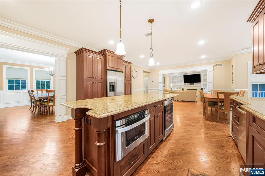 Welcome to 277 Airmont Ave, a beautifully maintained colonial built in 2013 that combines modern comfort with timeless elegance. Set on a private, landscaped property, this four bedroom, three bath home offers an inviting layout filled with natural light. The main level features spacious living and dining areas with hardwood floors and recessed lighting, perfect for everyday living and entertaining. The impressive kitchen showcases rich cabinetry, quartz counters, tile backsplash, stainless steel appliances, and a large center island that opens to a comfortable family room with fireplace and access to the backyard. Upstairs offers four generous bedrooms including a luxurious primary suite with custom closet and spa inspired bath. A full unfinished basement provides ample storage or potential for future expansion. Prime Mahwah location near parks, schools, shopping, and houses of worship.