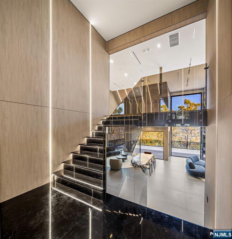 Modern. Seductive. Unapologetically bold. Welcome to The Allure  a striking architectural masterpiece by ECS Homes redefining modern luxury in Totowa’s exclusive hilltop. This entertainer’s paradise fuses high design and sensual minimalism with soaring spaces, smoked glass railings, black marble staircases, radiant heated flooring, and custom LED lighting throughout. The dramatic great room opens to a massive balcony with panoramic city views, while the designer kitchen with full prep kitchen and main-level primary suite with sculptural tub and smoked-glass shower epitomize indulgence. Upstairs offers a loft with coffee bar and three ensuite bedrooms, including a spa-style alternative primary. The walkout lower level features a gym with infrared sauna and cold plunge, wet bar, and recreation area opening to the resort-style pool and terraces. Finished with radiant floors, epoxy garage for six, generator, and elite imported finishes  The Allure defines modern desire.