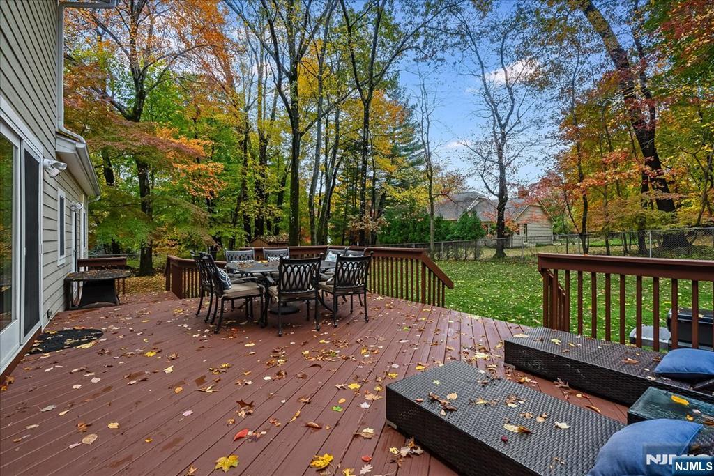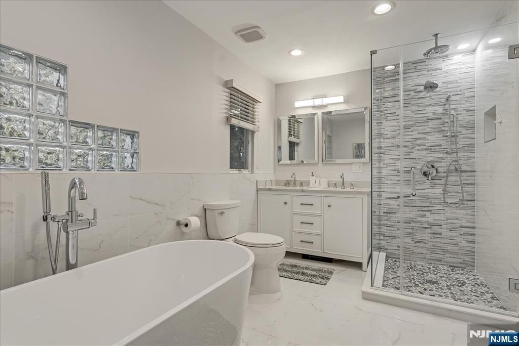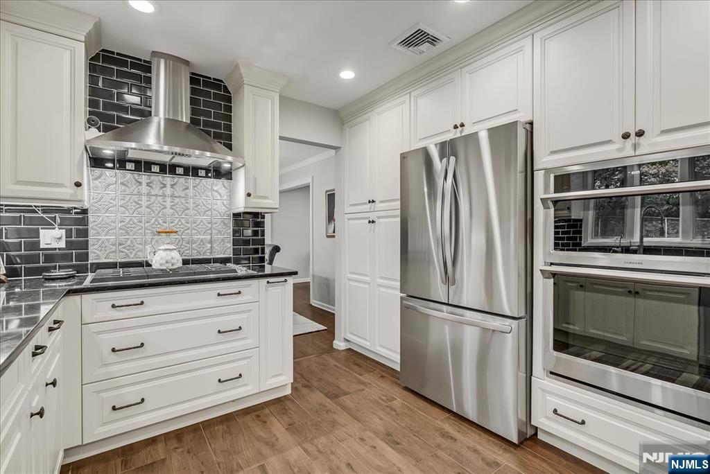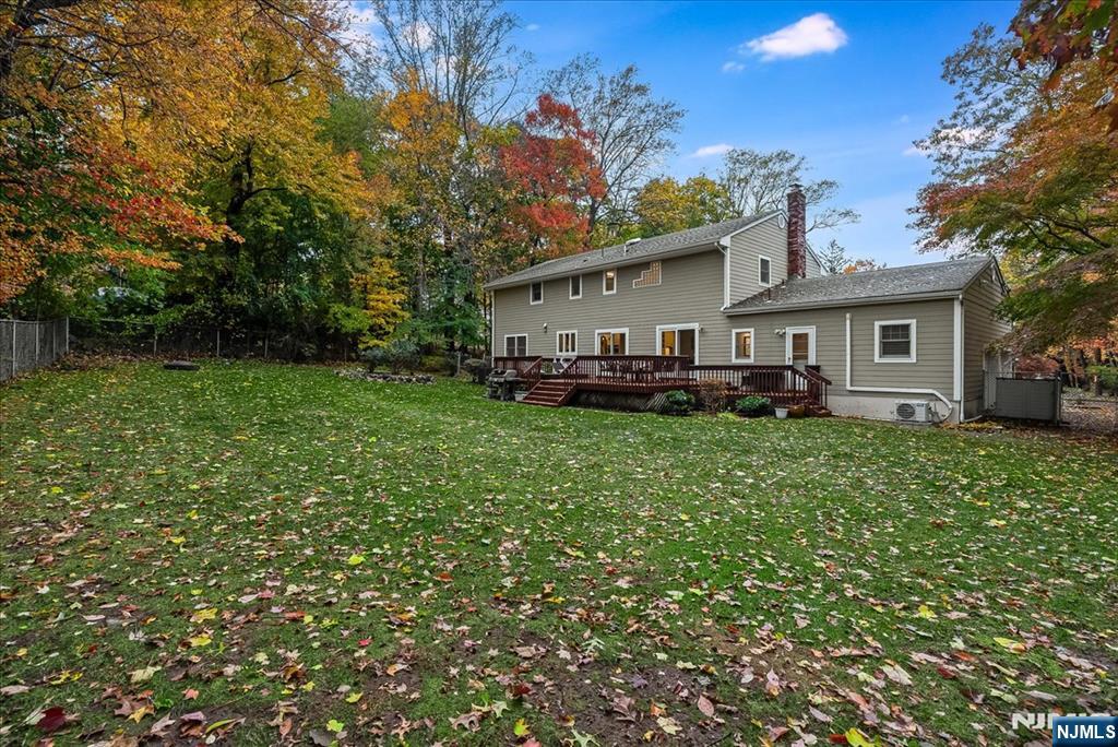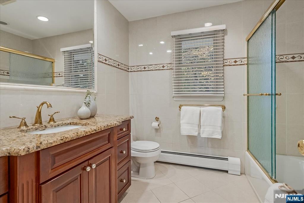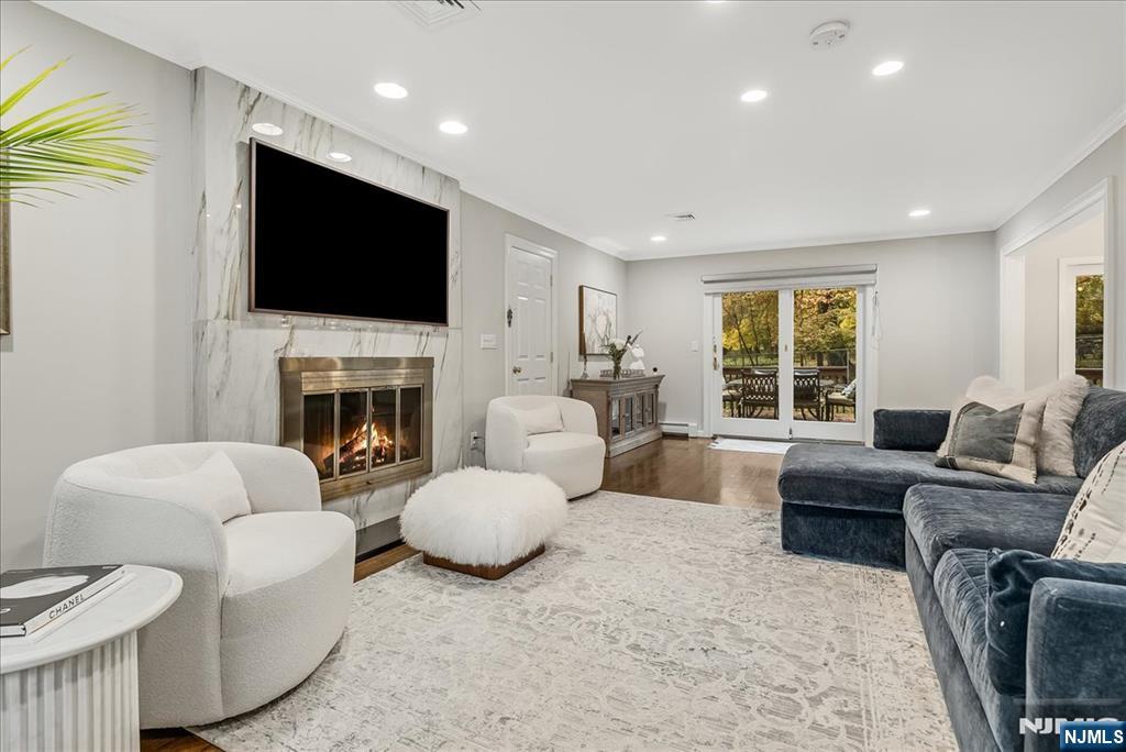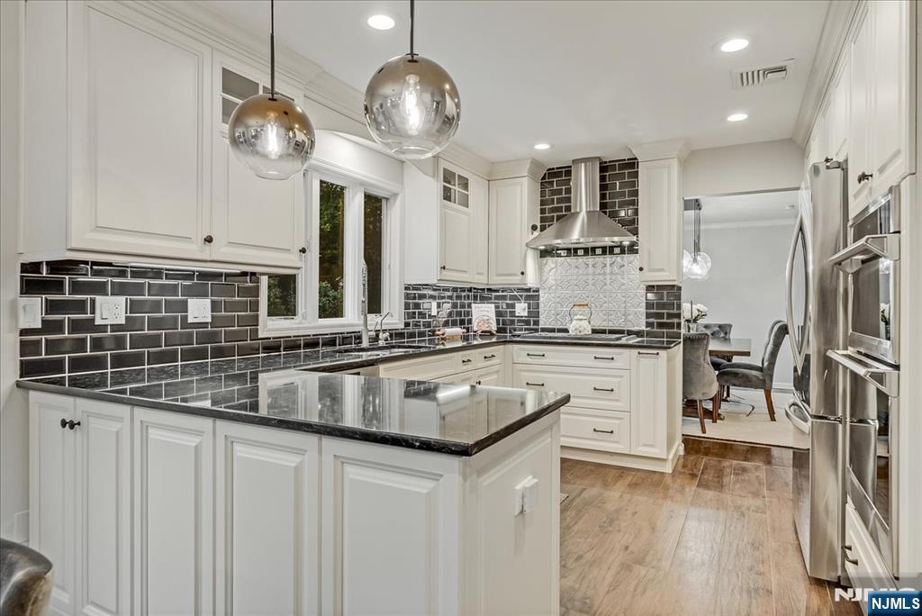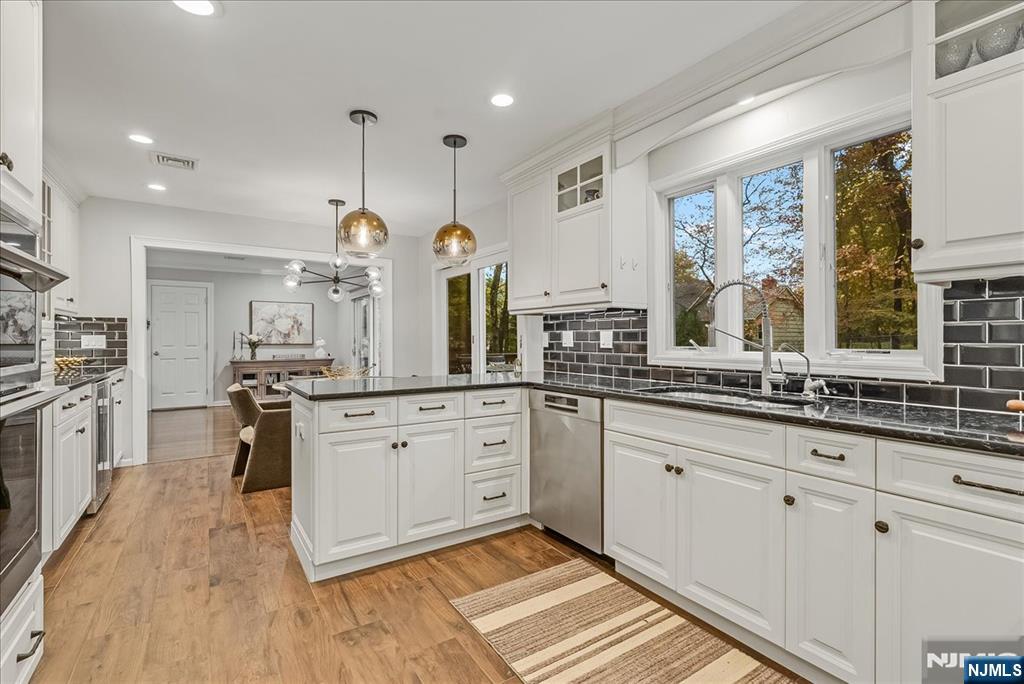 Prime Woodcliff Lake Location! Beautifully Landscaped and Completely Renovated home. This stunning home, renovated in 2020 and featuring thoughtfully curated finishes, offers 5 spacious bedrooms and 3.5 baths. Step inside to a charming entrance foyer that welcomes you into a large family room with a cozy fireplace and a sliding glass door leading to an oversized, beautifully landscaped yard, perfect for outdoor entertaining. The bright and airy living room is filled with natural light and seamlessly flows into a spacious dining area. The eat-in kitchen features elegant granite countertops, stainless steel appliances, including a new refrigerator, and easy access to the yard, ideal for family gatherings and outdoor meals. On the first floor, you'll also find a bedroom or home office, a powder room, and convenient garage access. Upstairs, the primary bedroom boasts a private ensuite bath and a walk-in closet. Three additional spacious bedrooms share a full bath. The finished basement, fully renovated in 2023, includes an office or guest room and an additional full bath. Recent upgrades include a new whole-house A/C system installed in 2025, with additional cooling in the basement for year-round comfort. Enjoy easy access to shops, top-rated schools, and NYC bus transportation. This meticulously maintained home combines comfort, style, and convenience. L/A is related to the owner.