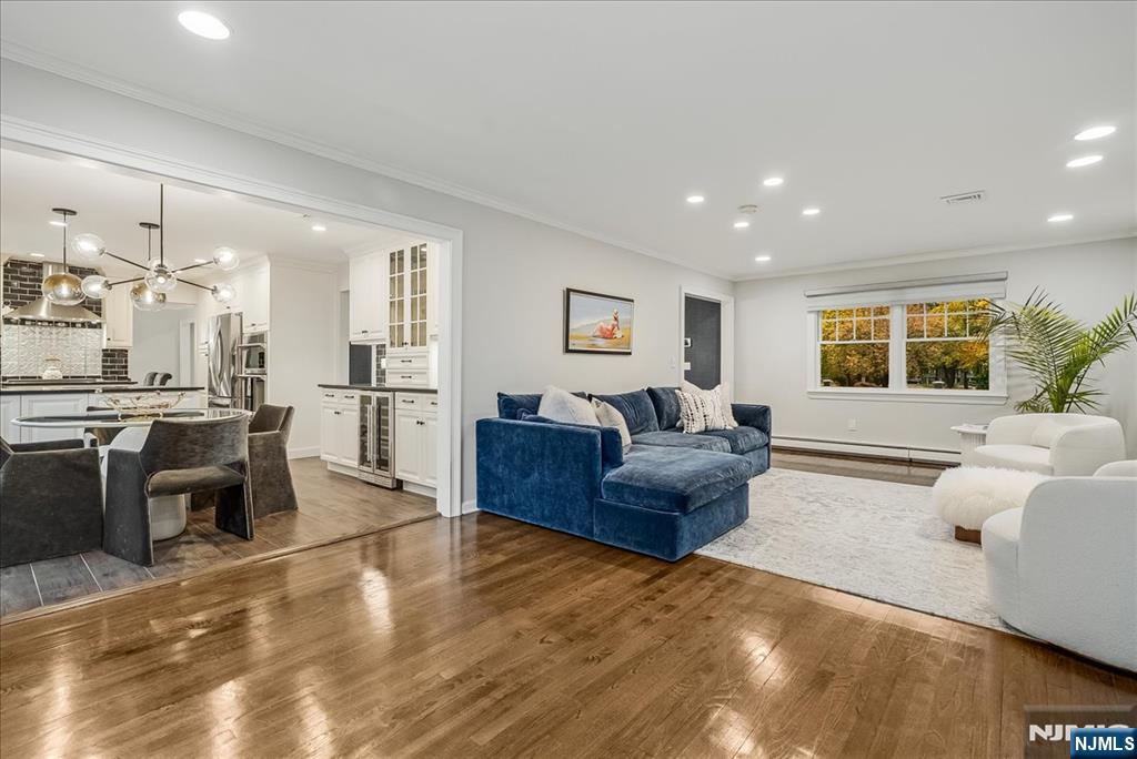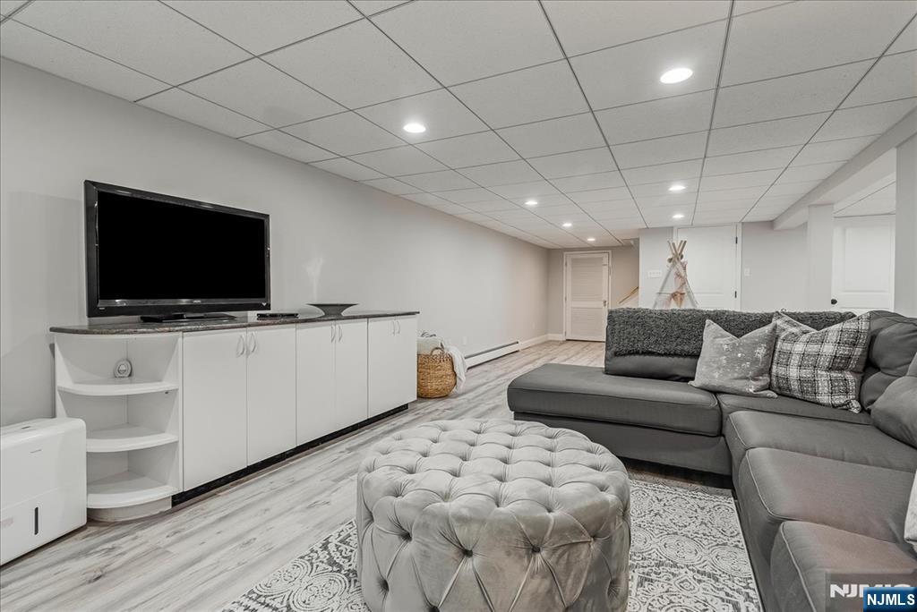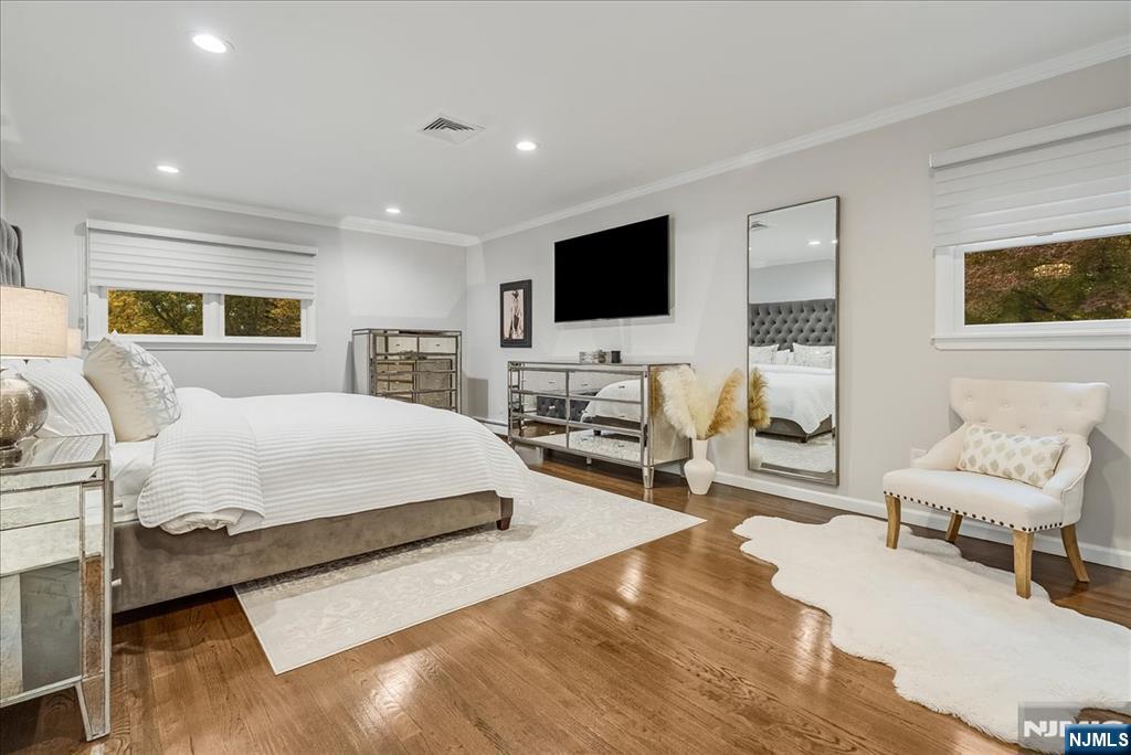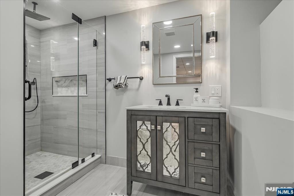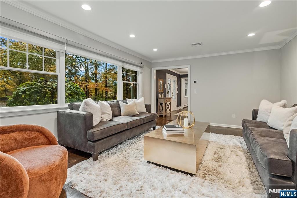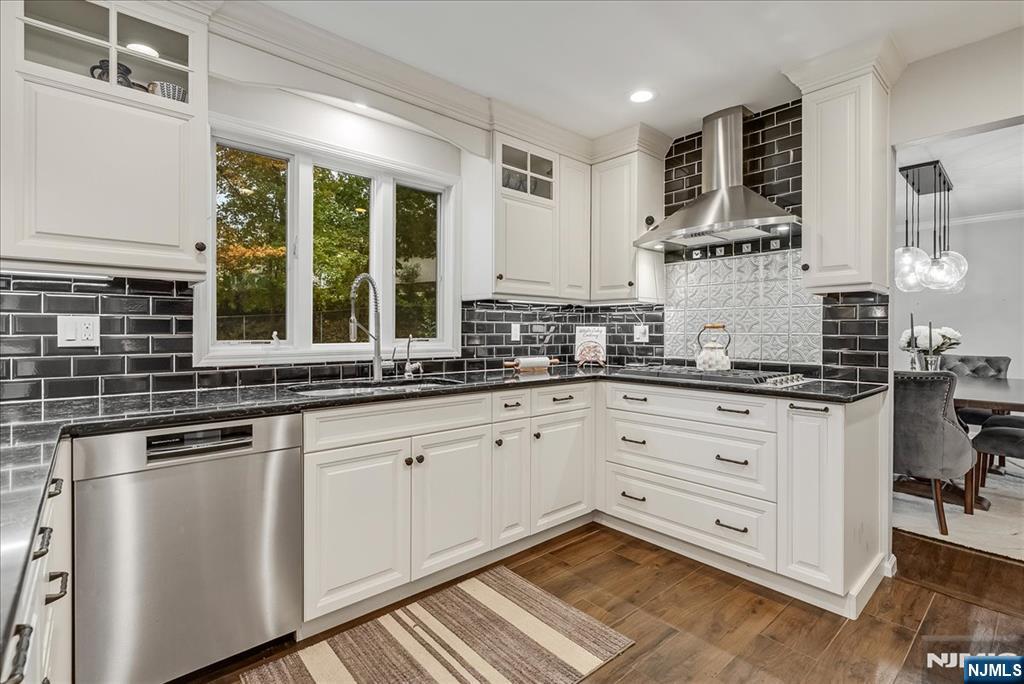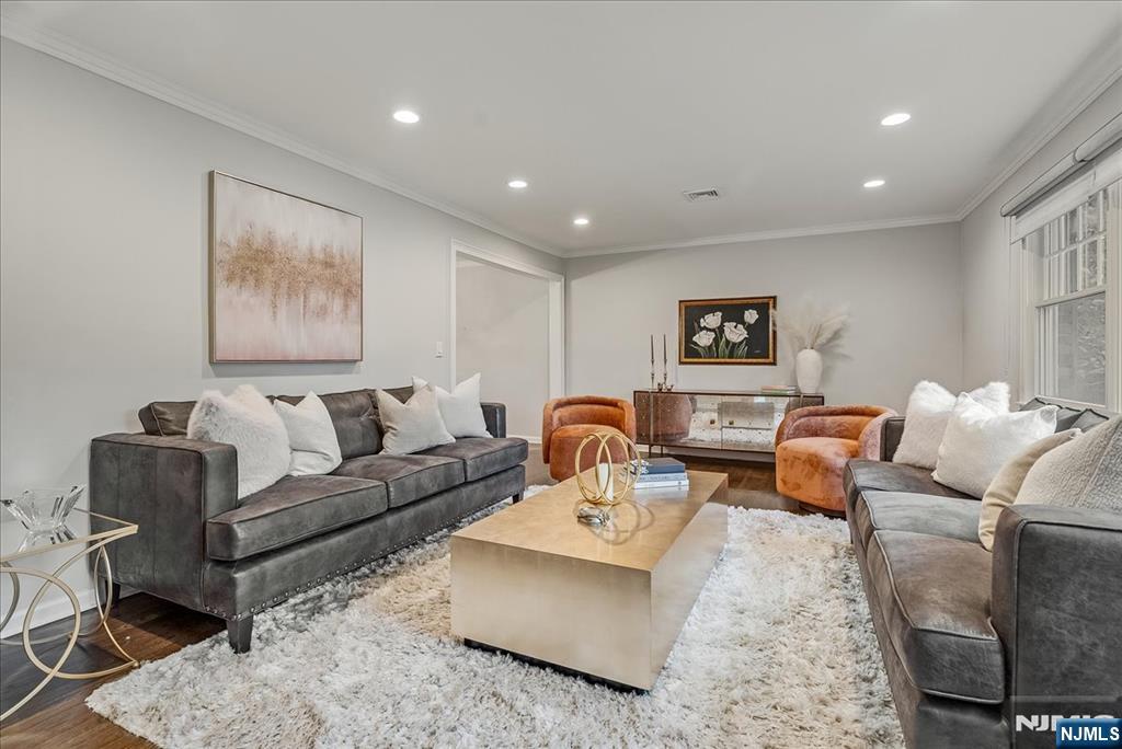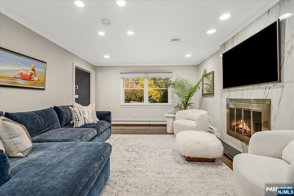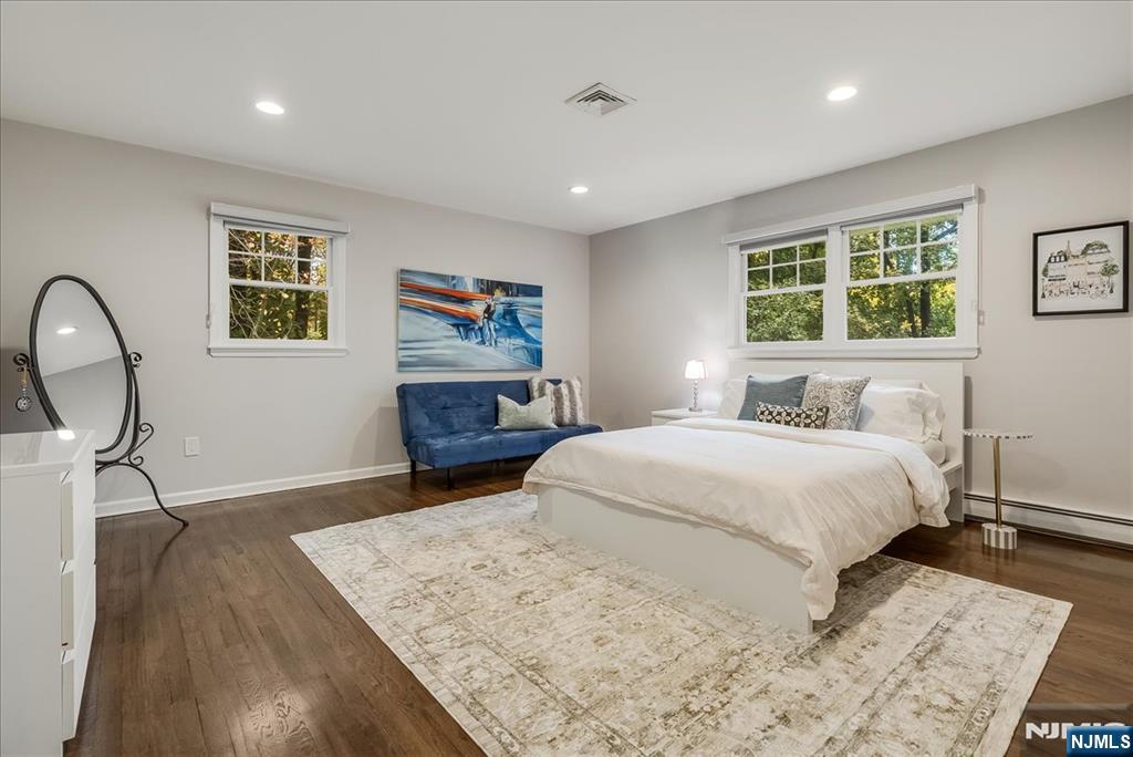 Prime Woodcliff Lake Location! Beautifully Landscaped and Completely Renovated home. This stunning home, renovated in 2020 and featuring thoughtfully curated finishes, offers 5 spacious bedrooms and 3.5 baths. Step inside to a charming entrance foyer that welcomes you into a large family room with a cozy fireplace and a sliding glass door leading to an oversized, beautifully landscaped yard, perfect for outdoor entertaining. The bright and airy living room is filled with natural light and seamlessly flows into a spacious dining area. The eat-in kitchen features elegant granite countertops, stainless steel appliances, including a new refrigerator, and easy access to the yard, ideal for family gatherings and outdoor meals. On the first floor, you'll also find a bedroom or home office, a powder room, and convenient garage access. Upstairs, the primary bedroom boasts a private ensuite bath and a walk-in closet. Three additional spacious bedrooms share a full bath. The finished basement, fully renovated in 2023, includes an office or guest room and an additional full bath. Recent upgrades include a new whole-house A/C system installed in 2025, with additional cooling in the basement for year-round comfort. Enjoy easy access to shops, top-rated schools, and NYC bus transportation. This meticulously maintained home combines comfort, style, and convenience. L/A is related to the owner.