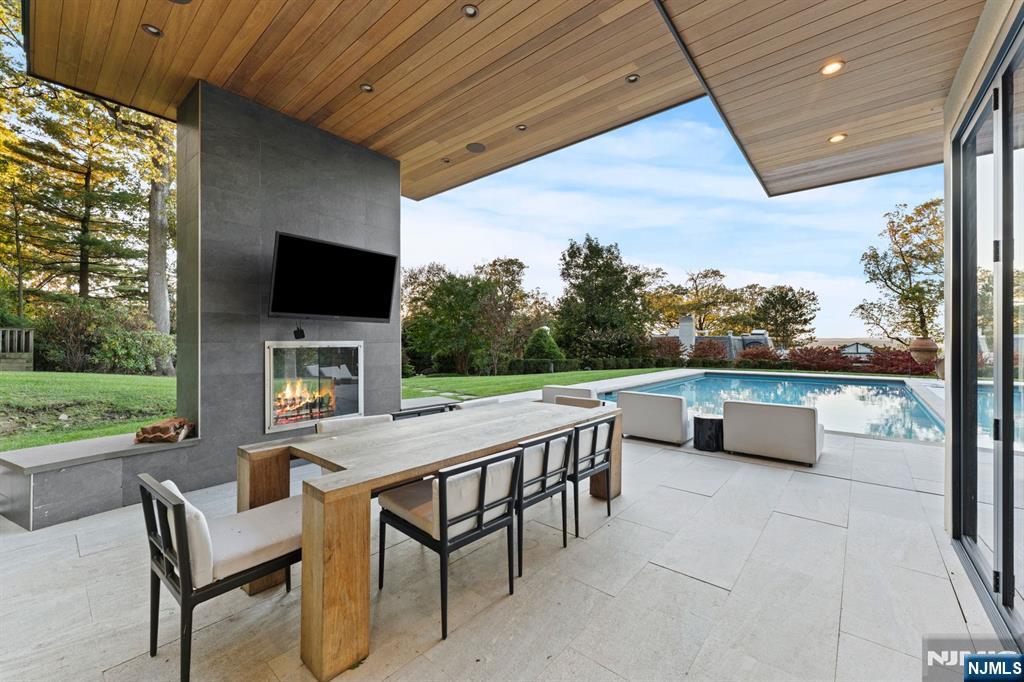 Escape to this private estate surrounded by nature and refined luxury. Set high on nearly an acre of exquisitely landscaped grounds bordering the Tenafly Nature Center, this residence offers unmatched privacy and scenic beauty. A true sanctuary, it features cascading waterfalls, a koi pond, lush gardens, and multiple stone terraces for relaxation and entertaining. At its heart, a new pool house with wet bar and bath overlooks the sparkling pool, outdoor fireplace, and expansive sitting areasâ€â€creating a resort-caliber experience rarely found in Tenafly. Inside, timeless craftsmanship defines light-filled spaces including a gracious living room with fireplace, formal dining room, inviting family room, and gourmet kosher kitchen with custom cabinetry and professional appliances. The serene primary suite with spa bath is joined by five bedrooms, three full baths, a home theater, gym, and wine cellar. With slate roof, four-car garage, generator, and premier location, this estate epitomizes elegant modern living.