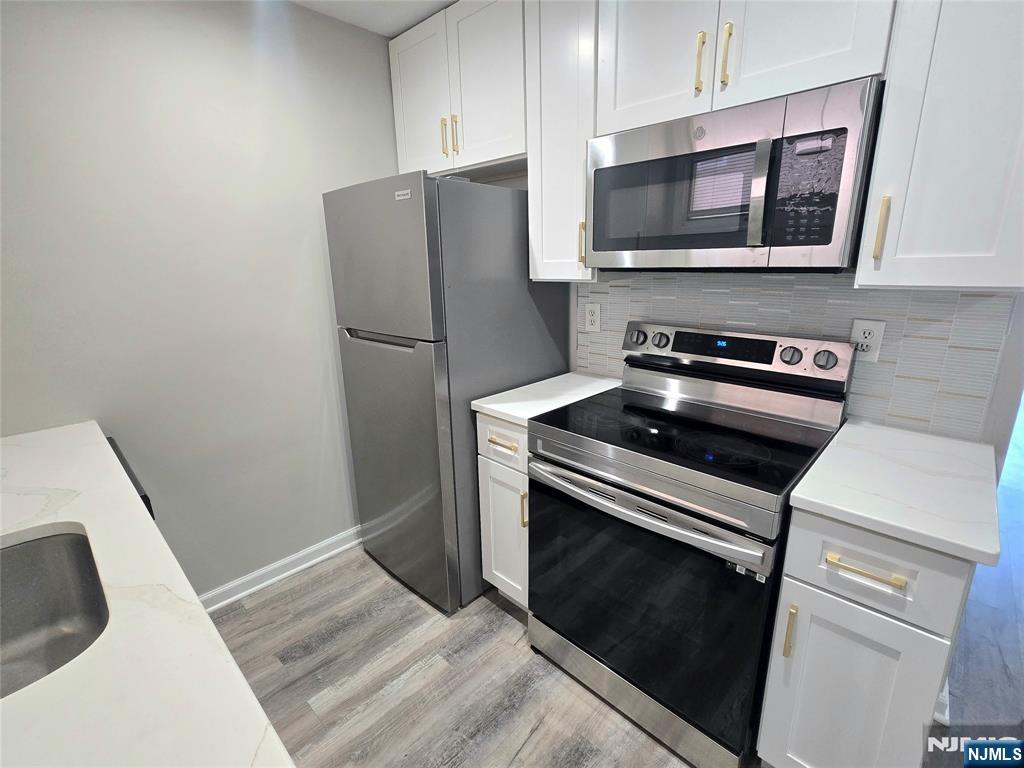 Just one block away from the New Downtown! Conveniently Located close to Bus Stop and walking distance to Essex St. Train Station. Newer Kitchen Cabinets and Quartz Counters, Soft-Close Cabinets and Stainless Steel Appliances. Large Living & Dining Area with Fireplace. New Flooring Throughout, Freshly Painted and Move-in Ready! Central Air, Private Balcony with entrances from Primary Bedroom and Living Room. Washer/Dryer in unit! Two Parking Spaces included! Just steps away from Hackensack Performing Arts Center, Restaurants, Stores and More! Listing agent related to owner.