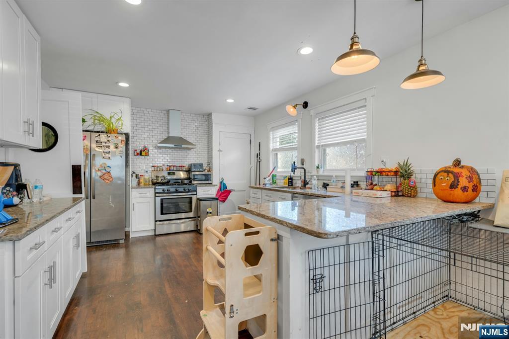 Welcome home to this beautifully updated 3-bedroom, 2-bath ranch offering comfort, style, and space. The inviting living room showcases soaring beamed cathedral ceilings and glistening hardwood floors that flow throughout the home. The modern kitchen is a showstopper with white cabinetry, granite countertops, tiled backsplash, and sleek stainless steel appliances. Each room is generously sized, providing an open and airy feel throughout. The beautifully finished lower level is perfect for extended living or entertaining, featuring a summer kitchen, family room with built-in bar, office area with closet, and full bath. Enjoy outdoor fun in the fenced backyard, ideal for play or relaxation. A detached 2-car garage completes this exceptional property—where every detail has been thoughtfully designed for today’s lifestyle. Located in a desirable neighborhood with excellent public schools and an easy commute to New York City, this home truly offers the best of suburban living with urban convenience.