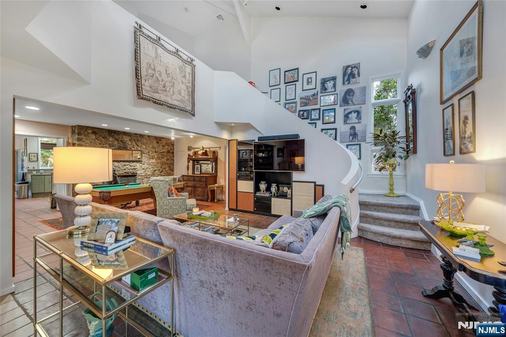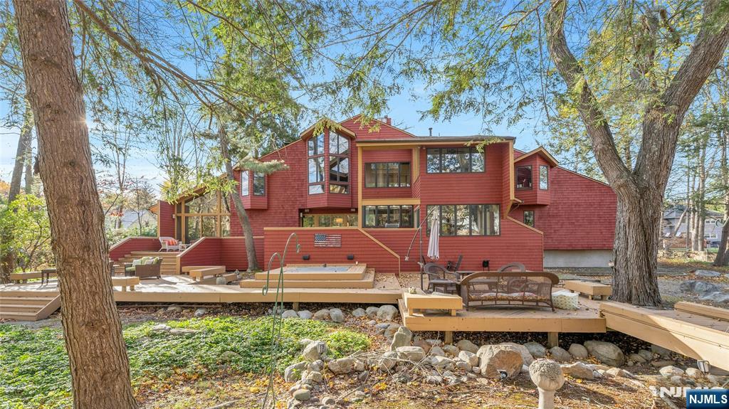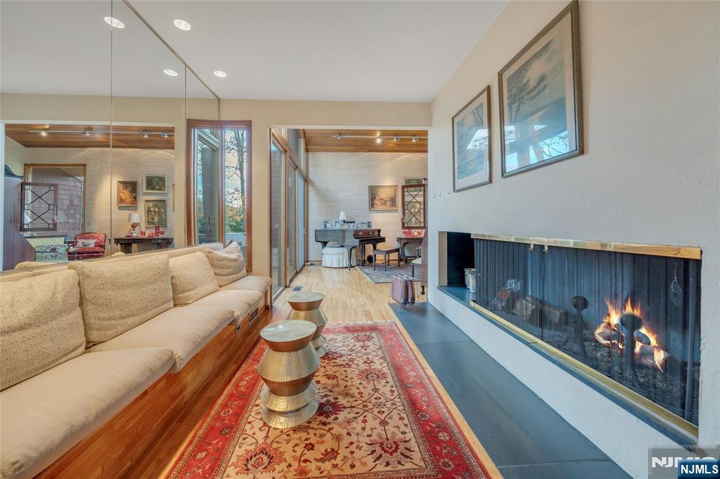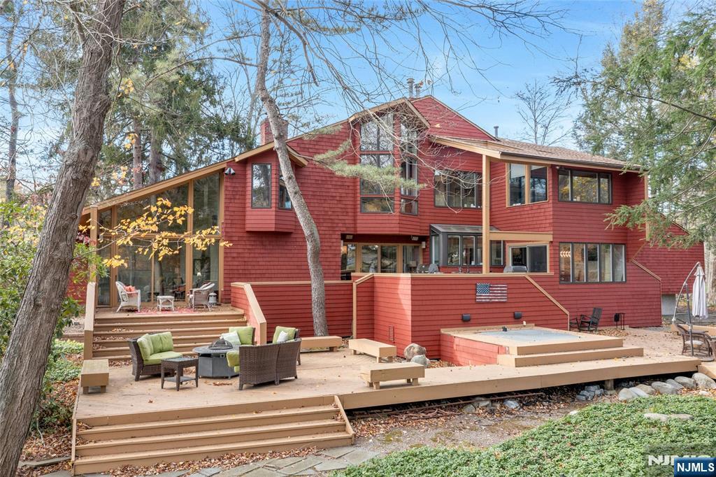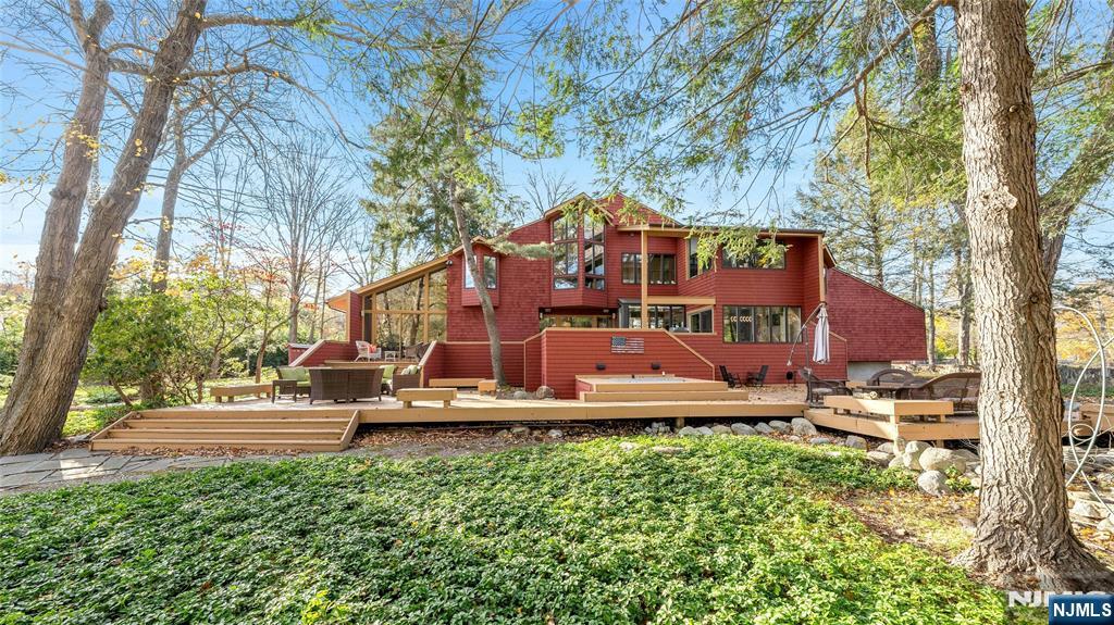 Designed by renowned architect Eleanore Pettersen, inspired by Frank Lloyd Wright, this chic & stunning masterpiece is situated on 1.86 acres along the picturesque Saddle River. The 5-bedroom, 3.5 bath home offers approx. 5100 sf of unique living space including a wine room on the 1st floor, & has an open floorplan offering spectacular views of the natural setting. Exterior amenities include a large deck for entertaining, 250-foot stone wall, lush landscaping & a tennis court. This is a true opportunity for the discerning buyer..