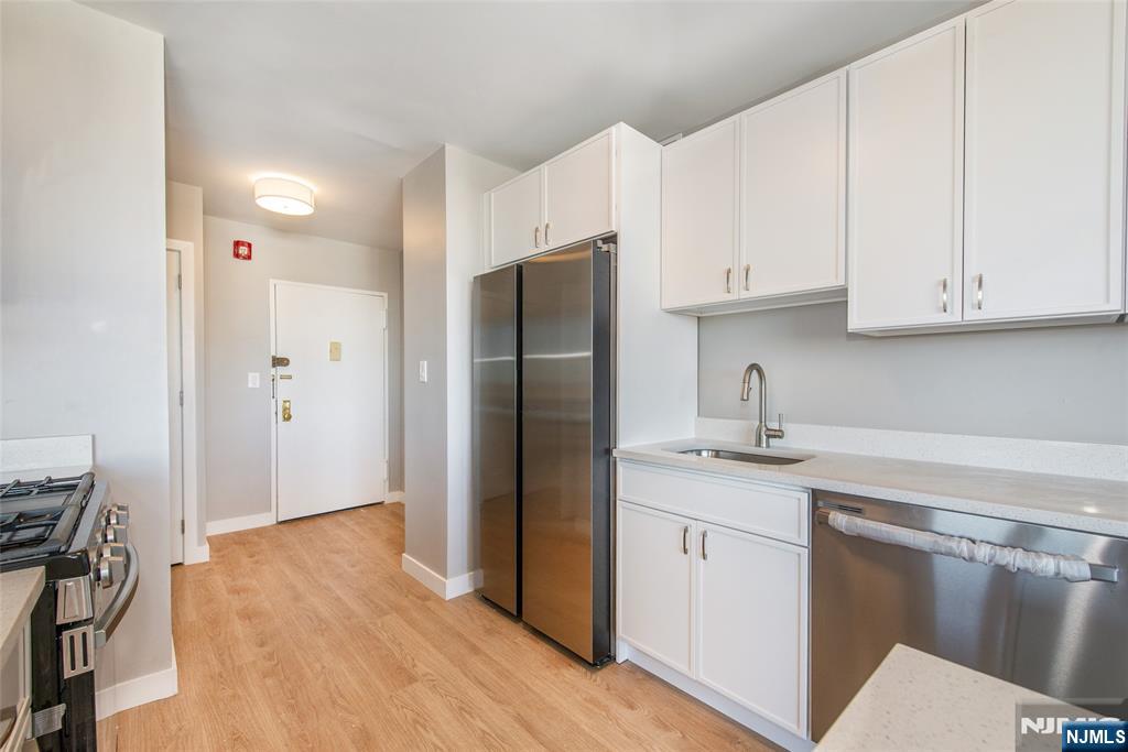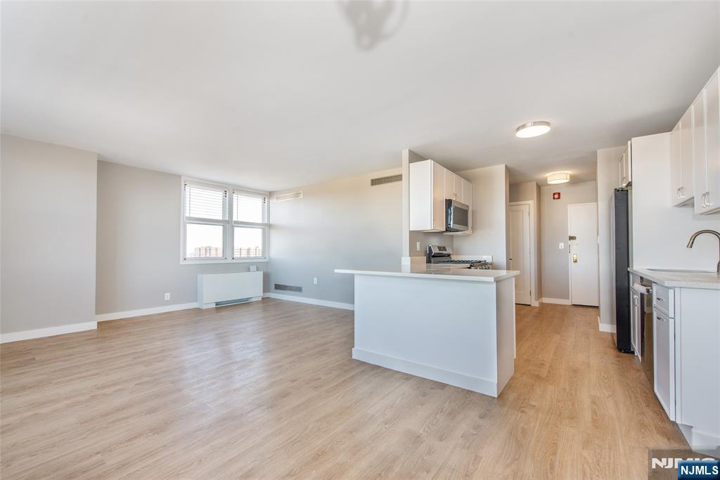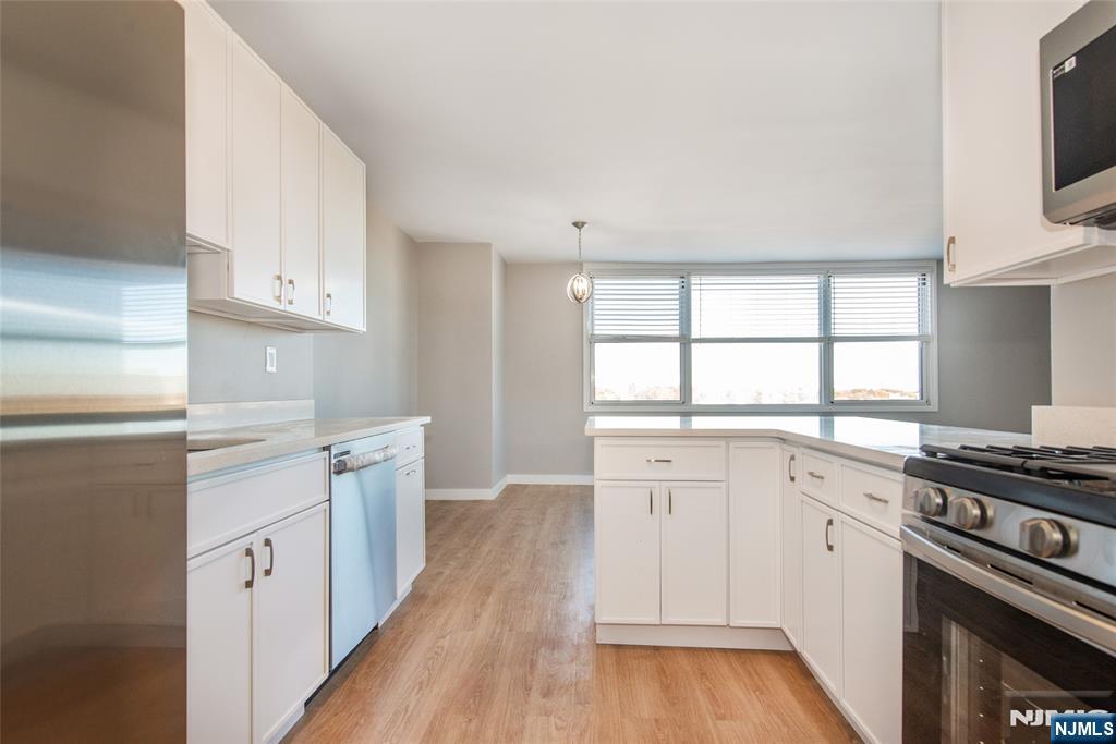 TOTALLY RENOVATED FROM TOP TO BOTTOM 1 BEDROOM PLUS 1 DEN, FULL BATH. RARELY AVAILABLE IN THE LECROSS BUILDING . SUPER EASY COMMUTE TO NYC - IN THE CENTER OF SHOPPING, TRANSPORTATION, HAS A VIEW OF THE GW BRIDGE FROM LR. 915 SQ FT: ALL NEW FLOORS THROUGOUT, NEW AIR/HEAT WALL UNITS; NEW CABINETS AND COUNTERTOPS, ALL NEW STAINLESS APPLIANCES; NEW CLOSETS; NEW LIGHTING; NEW LAYOUT AND NEW TILES AND VANITY IN BATHROOM; PAINTED FRESHLY WITH LIGHT NEUTRAL WHITES AND GREYS; LOVELY BUILDING BRIGHT AND SUNNY; PARKING AVAILABLE FOR EXTRA FEE IN THE GARAGE NEXT DOOR; NO CAR? NO WORRIES - WALKING DISTANCE TO THE BUSSES OR COULD WALK ACROSS GW BRIDGE AS WELL! WALKING DISTANCE TO A&P; CVS; BAKERIES ; SUSHI AND MORE. INCOME , EMPLOYMENT AND IDENTIFICATION VERIFICATION NEEDED. UTILITIES INCLUDED IN THE RENT. LAUNDRY IN BUILDING.