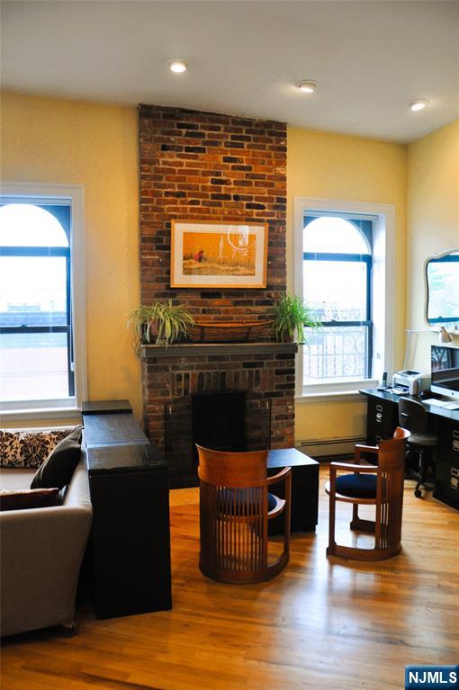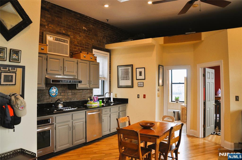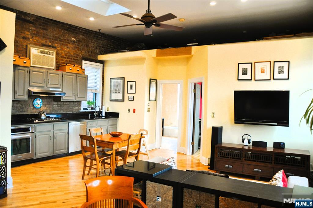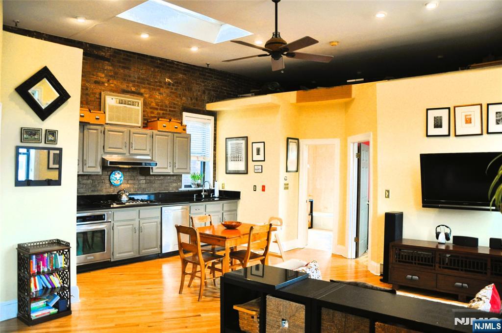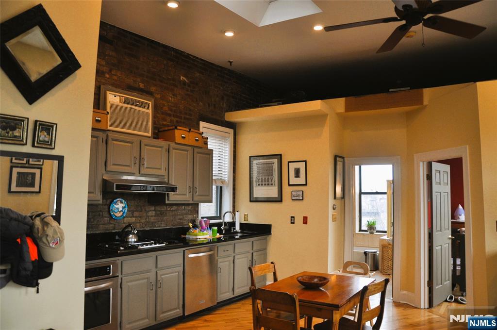 Welcome to 163 14th Streetâ€â€a well-maintained corner building in Hoboken’s highly desirable uptown neighborhood. This top-floor, corner one-bedroom apartment is filled with natural light from its south and west exposures, plus a skylight that enhances the home’s airy ambiance. The residence offers a generous open-concept layout with hardwood floors throughout, soaring ceilings, and exposed brick that adds character and warmth. The open kitchen offers stainless steel appliances and ample cabinet space, while the bathroom features both a separate bathtub and shower stall. Additional highlights include two decorative fireplaces, in-unit washer and dryer, wall-mounted air conditioning units, and an expansive lofted storage area. Situated just steps from the NYC bus, 14th Street ferry, Trader Joe’s, and some of Hoboken’s best restaurants, cafes, and shops, this home offers unbeatable accessibility and charm. A parking garage is conveniently located one block away on Bloomfield Street. Rent includes heat and hot water. Avail DEC 1 - no pets, no smoking.