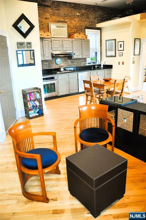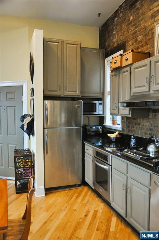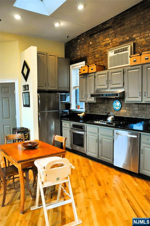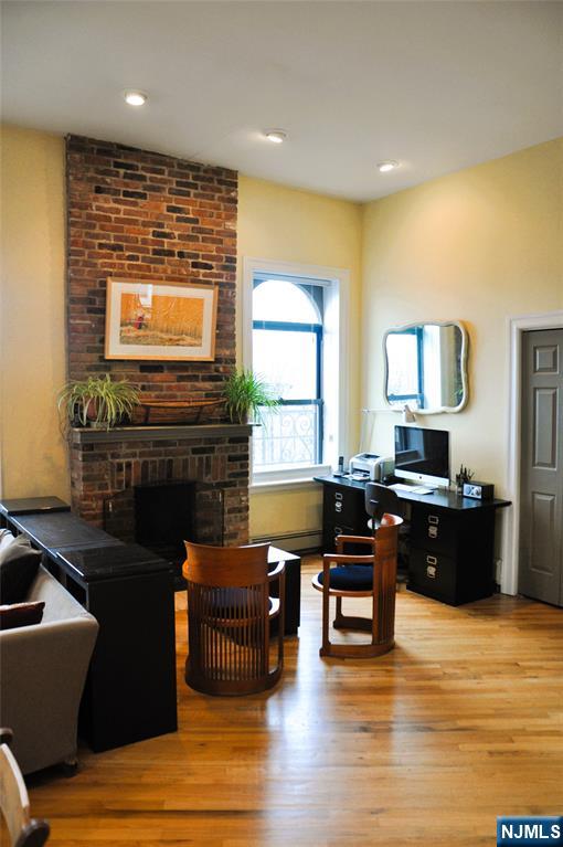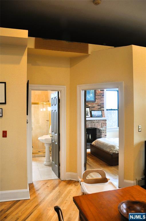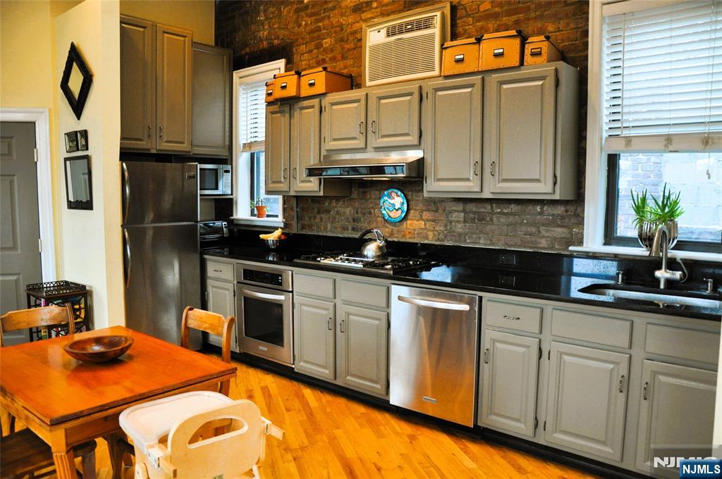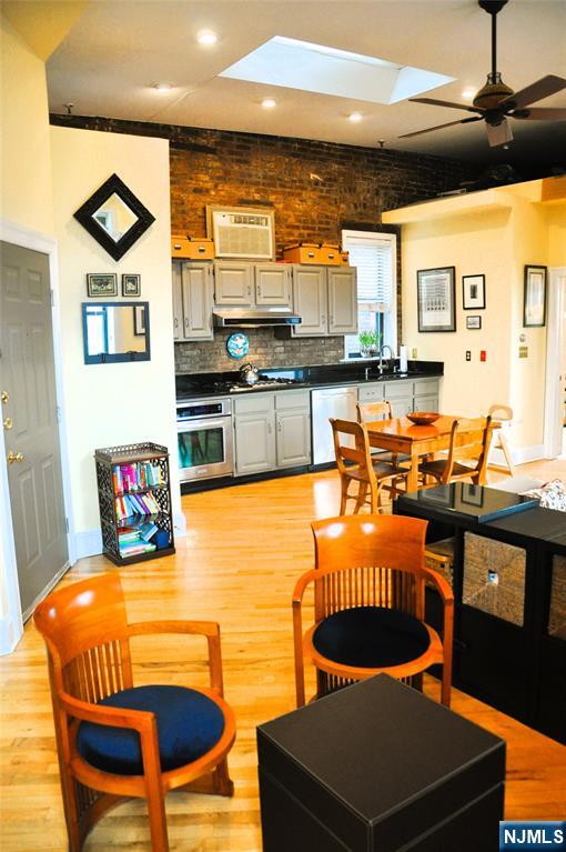 Welcome to 163 14th Streetâ€â€a well-maintained corner building in Hoboken’s highly desirable uptown neighborhood. This top-floor, corner one-bedroom apartment is filled with natural light from its south and west exposures, plus a skylight that enhances the home’s airy ambiance. The residence offers a generous open-concept layout with hardwood floors throughout, soaring ceilings, and exposed brick that adds character and warmth. The open kitchen offers stainless steel appliances and ample cabinet space, while the bathroom features both a separate bathtub and shower stall. Additional highlights include two decorative fireplaces, in-unit washer and dryer, wall-mounted air conditioning units, and an expansive lofted storage area. Situated just steps from the NYC bus, 14th Street ferry, Trader Joe’s, and some of Hoboken’s best restaurants, cafes, and shops, this home offers unbeatable accessibility and charm. A parking garage is conveniently located one block away on Bloomfield Street. Rent includes heat and hot water. Avail DEC 1 - no pets, no smoking.