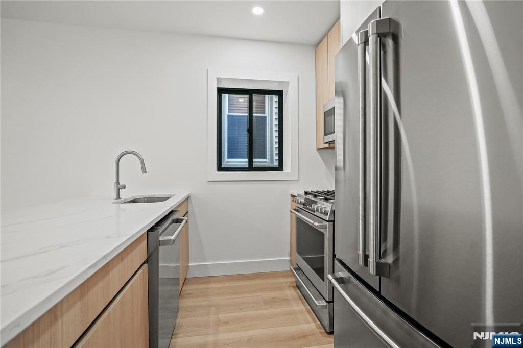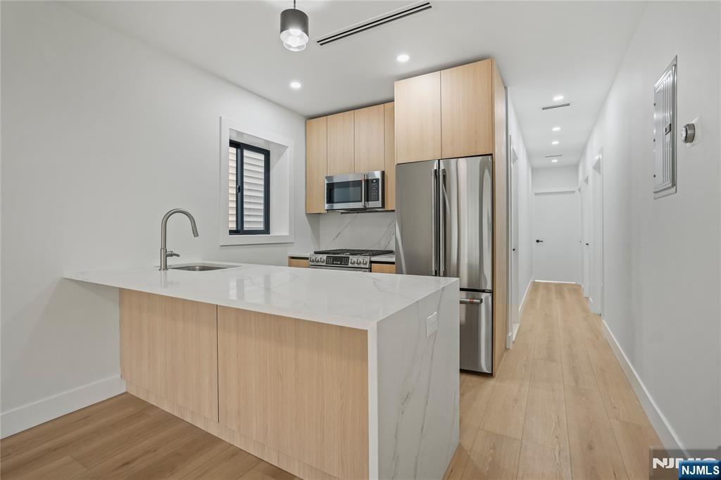 Welcome to this stunning 3-bedroom, 2-bathroom apartment in Bayonne, completely renovated from top to bottom with high-end finishes. Inside, you'll find beautiful new floors, brand-new quartz countertops, and top-of-the-line appliances in the kitchen. With the master suite conveniently located on the main level and large windows in every room filling the home with natural sunlight. Enjoy the convenience of laundry in unit and backyard access. Multiple Hudson-Bergen Light Rail stops, including at 34th and 45th Street make commuting to Jersey City and Manhattan easy, and just steps off Broadway with restaurants, shopping, and more at your door.