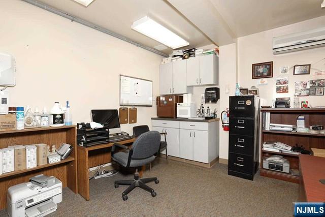 Amazing Mahwah Commercial Office and Garage/Warehouse for rent. Wonderful location. Immaculate carpeted office. Two desks can be left if you wish. Kitchenette. Heat pump and central A/C. Large Bathroom handicap fitted. Wait until you see this state of the art Garage/Warehouse. Soaring 20ft ceilings. Approximately 16 ft. Commercial Insulated Garage Door. New LED high efficiency lighting. Shelving units line the perimeter of the Garage. Units can be left or removed. 5 Parking Spaces included. Convenient to major highways. Don't miss this one of a kind unit.