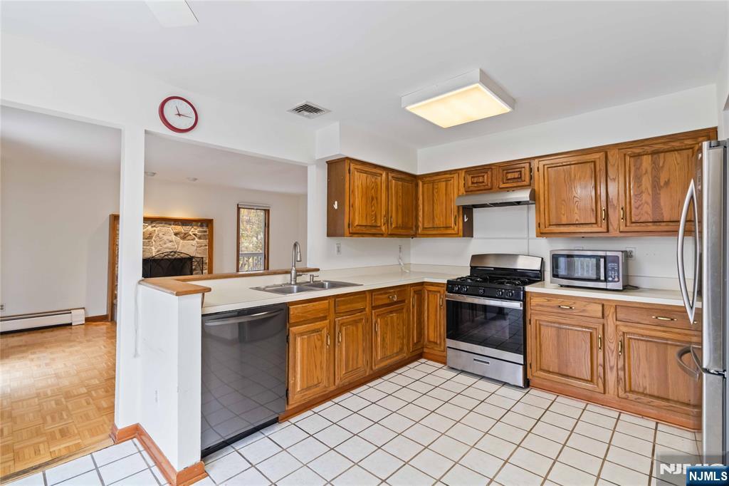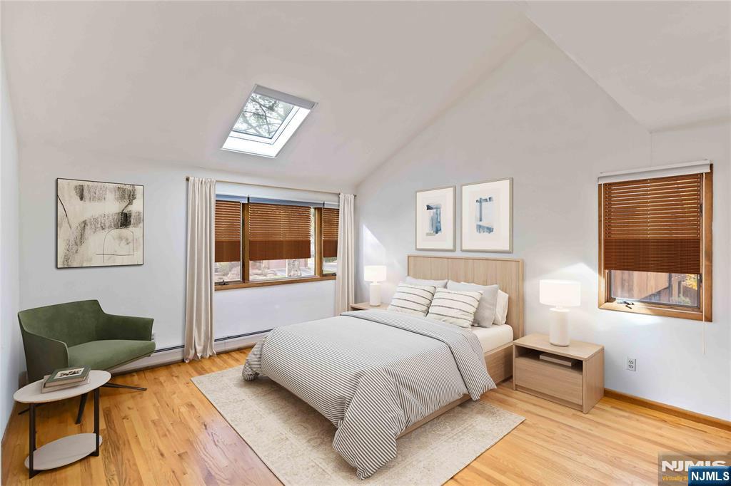 Are you looking for a 4 bedroom colonial close to the center of town in Westwood? This custom-built home offers privacy and approx. 2200 sq ft of living space with hardwood floors throughout, a primary suite with skylights, wood-burning fireplace, and a 2 car garage. The front porch leads to the main entry with a new door, tiled EH, large front-to-back living and dining room, a family room with raised hearth stone-faced fireplace, large backyard, and SGD to wraparound deck. The 2nd floor features a primary bedroom with vaulted ceilings, a walk-in closet, and a full bath. There are also 3 large bedrooms with a full bath. Other amenities include parquet hardwood flooring, a 2 car garage, refrigerator, washer/dryer, central air conditioning, & 3 zone gas baseboard heat. Updates include siding, roofing, gutters, and central AC. This home is just a few blocks away from the highly desired downtown Westwood shopping & train station. Schedule your private showing before it's too late!
