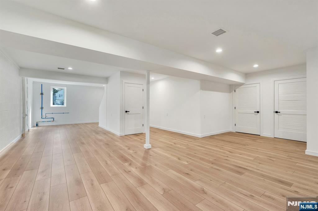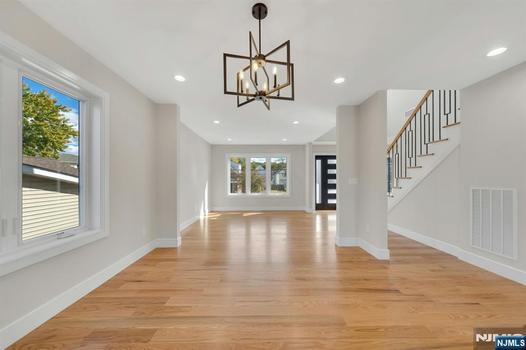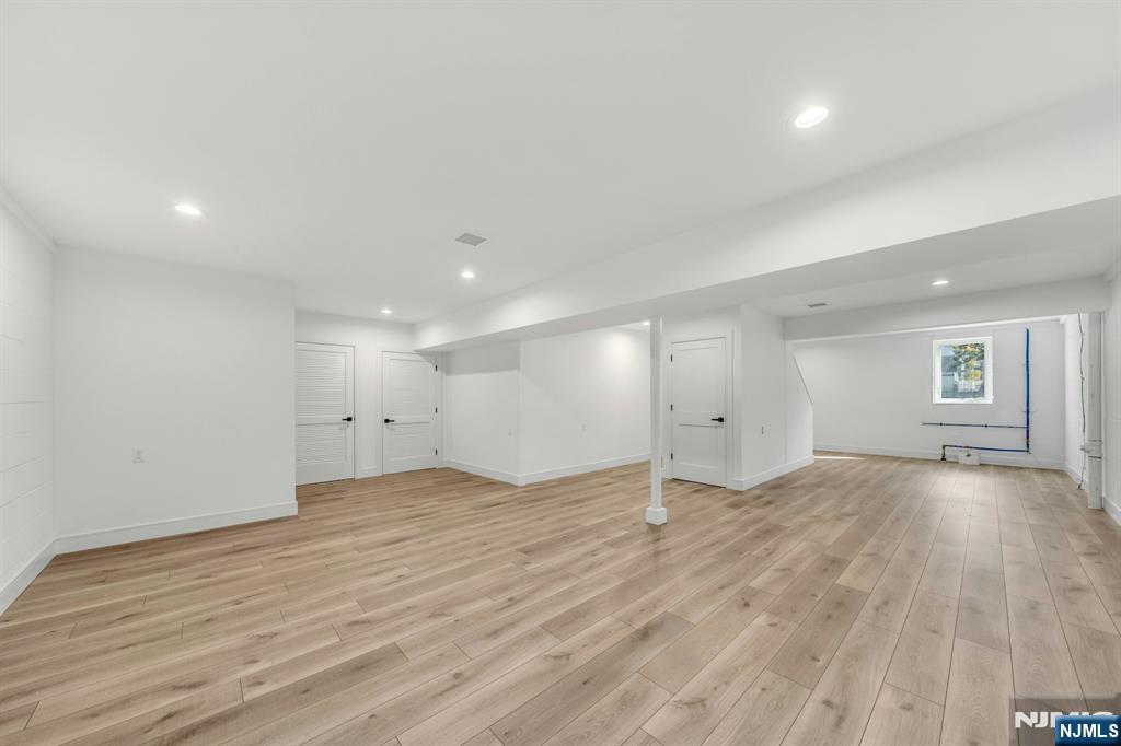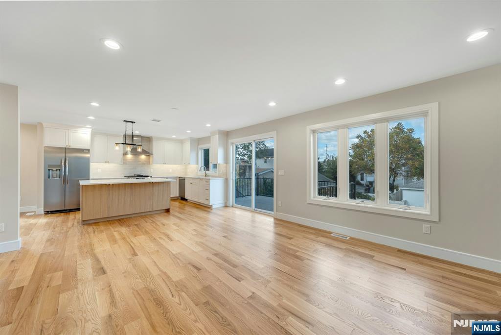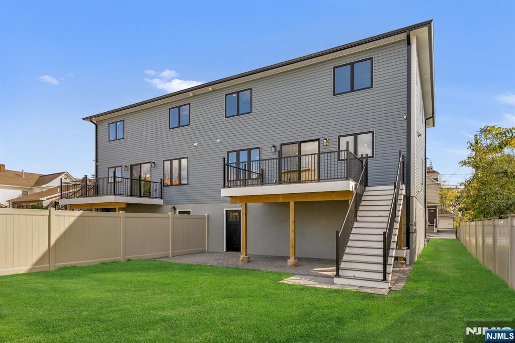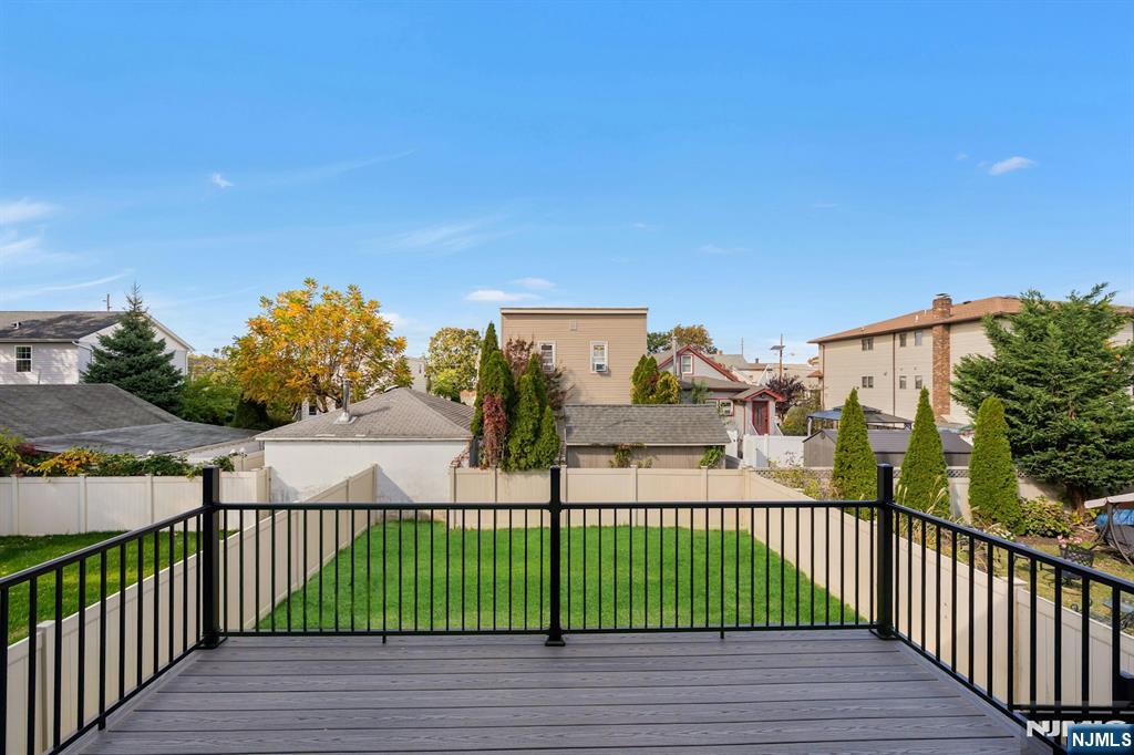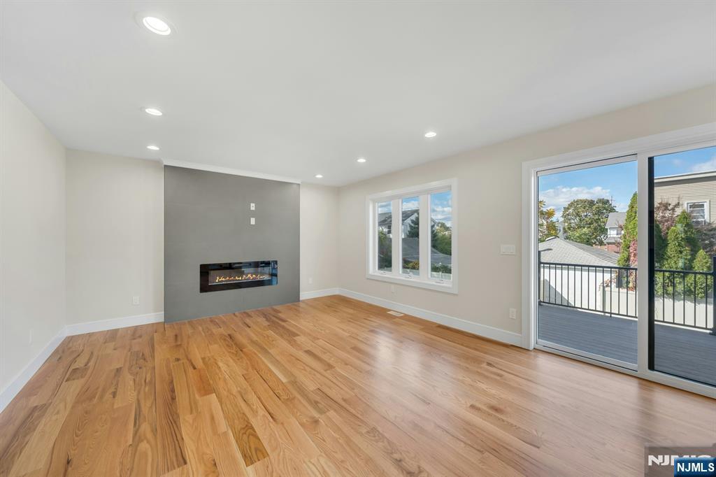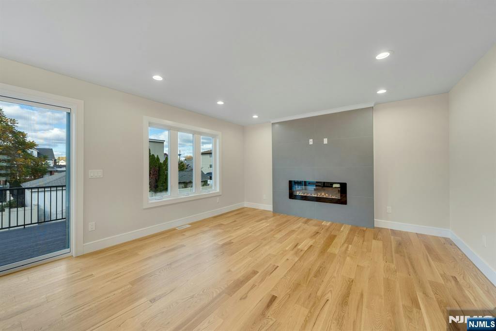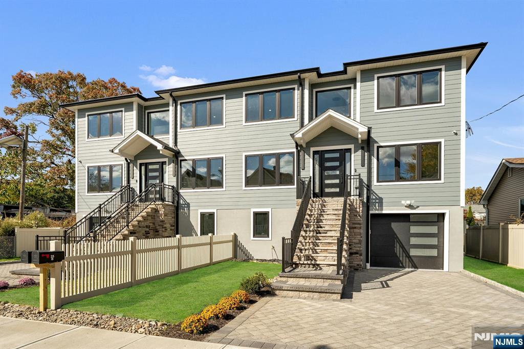 Brand New East-facing 8-bedroom, 6 full bath 2 family duplex w/2 separate garages & driveways! This quality-built home measures approx 4,800 sq ft (plus an additional 2,000 sq ft on ground level) on a 75 x 113 lot! Each side has Living room, dining room, den, family room combined with an open concept kitchen with custom built cabinets, quartz tops with tiled backsplash, stainless steel appliances, which include stove, built-in microwave, dishwasher, and refrigerator with ice maker/water dispenser. The family room has a heated electric fireplace and sliders to 10' x 15' composite deck overlooking a deep yard. 2nd floor features 4 bedrooms, laundry closet with washer & dryer & 2 full baths. Master bedroom with 2 walk-in closets and private bathroom with shower stall. Pull down stairs to attic. 4 separate gas forced air heating & air conditioning systems ( units each side), 2 gas tankless water heaters, 2 electric, gas & water meters. Security camera system, hardwood floors on 1st & 2nd floor, 2nd floor pre-wired for house router. Ground level has access to a built in garage and walkout to rear yard. 150 amp electric panel. Each driveway can accommodate a few cars. Each side has private yard & landscaped property. Located in a flood zone, all finished areas are above the flood elevation line, and flood insurance is quoted at $1255 per year! 2 blocks to NJ Transit bus stop #160 to NYC Bus Terminal in less than 30 minutes on average! Includes a 10-year new home warranty!