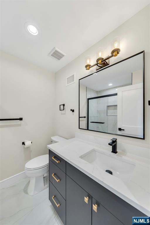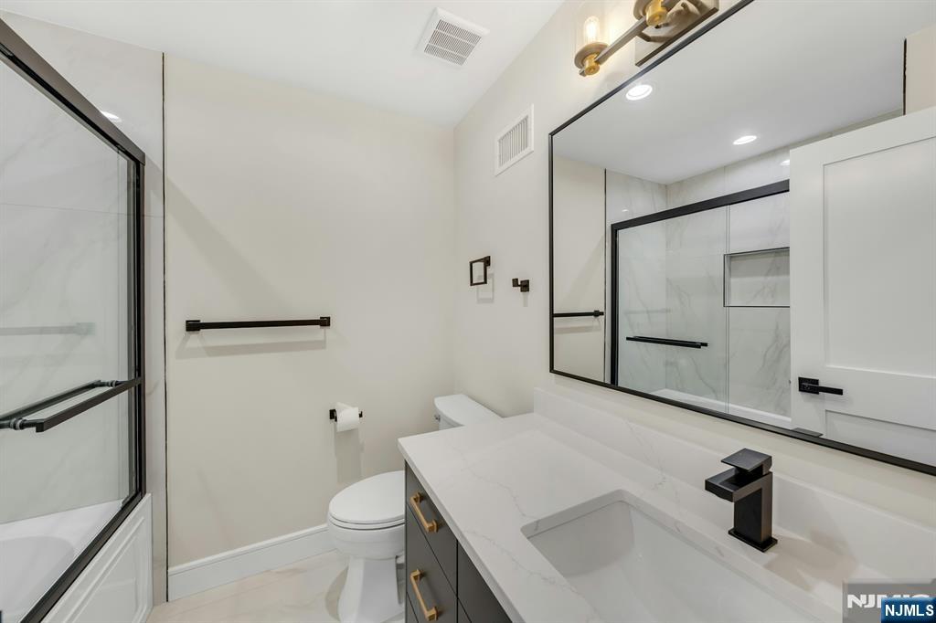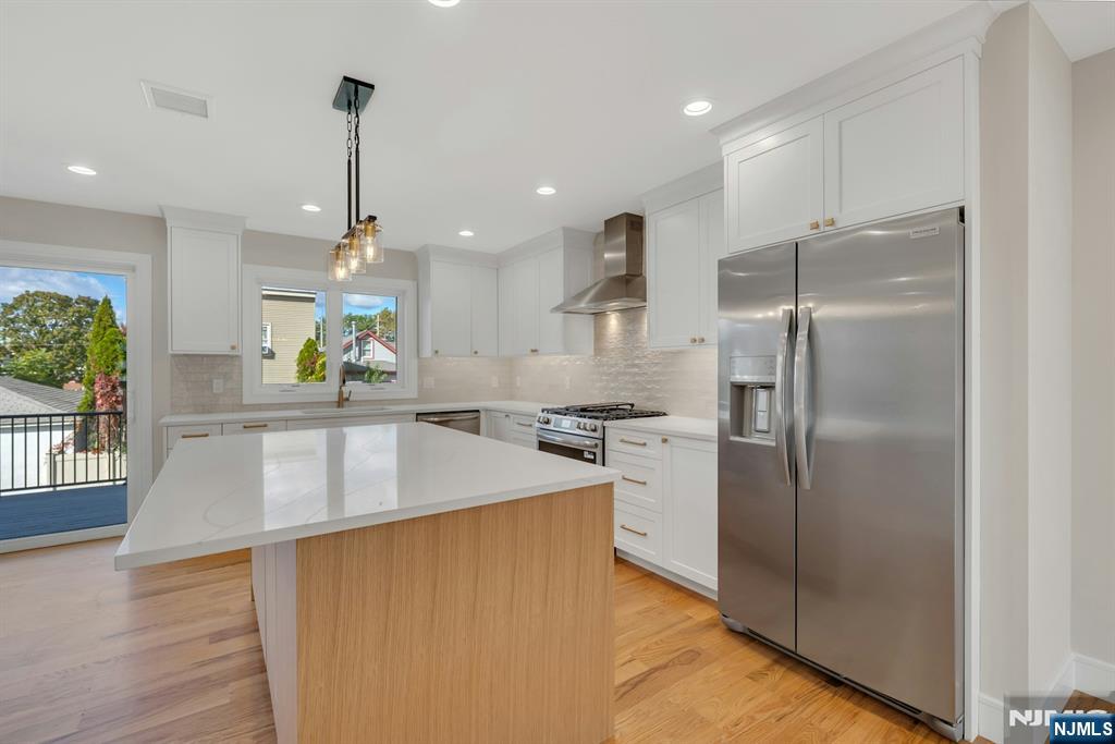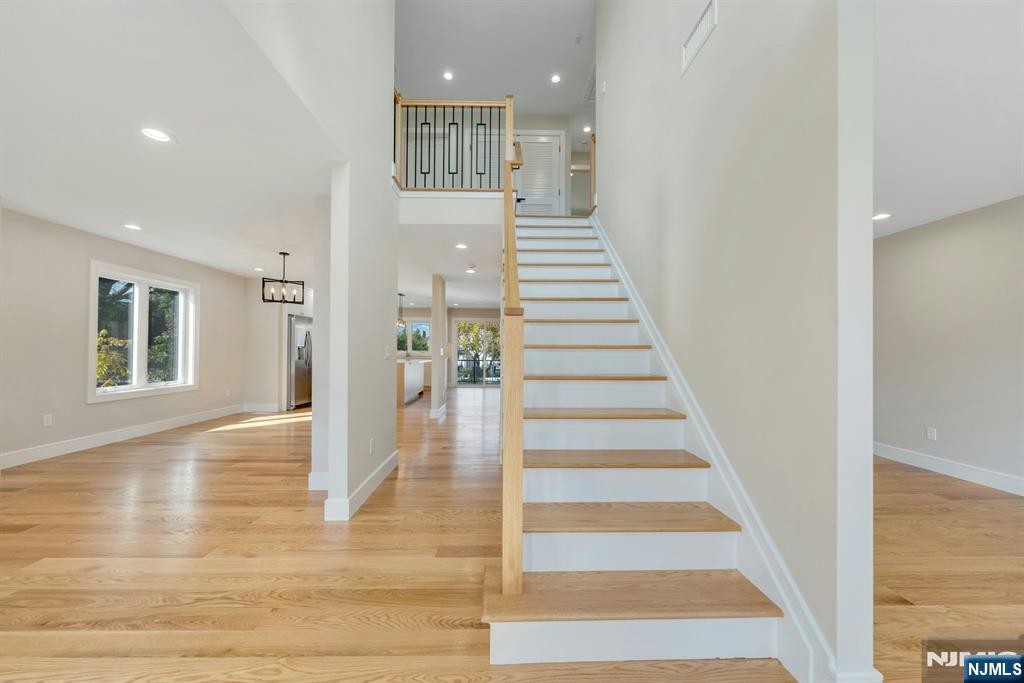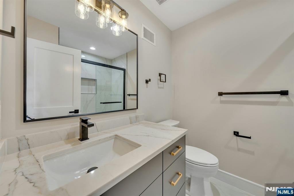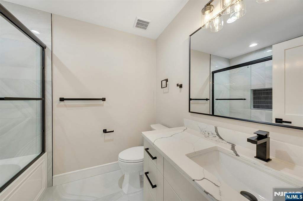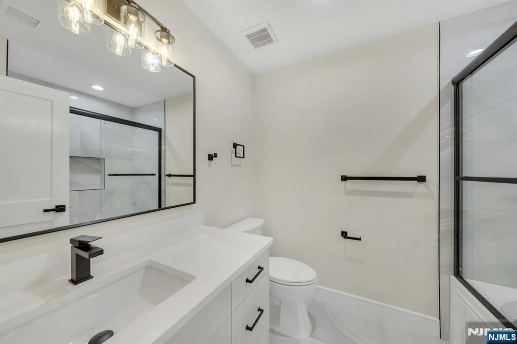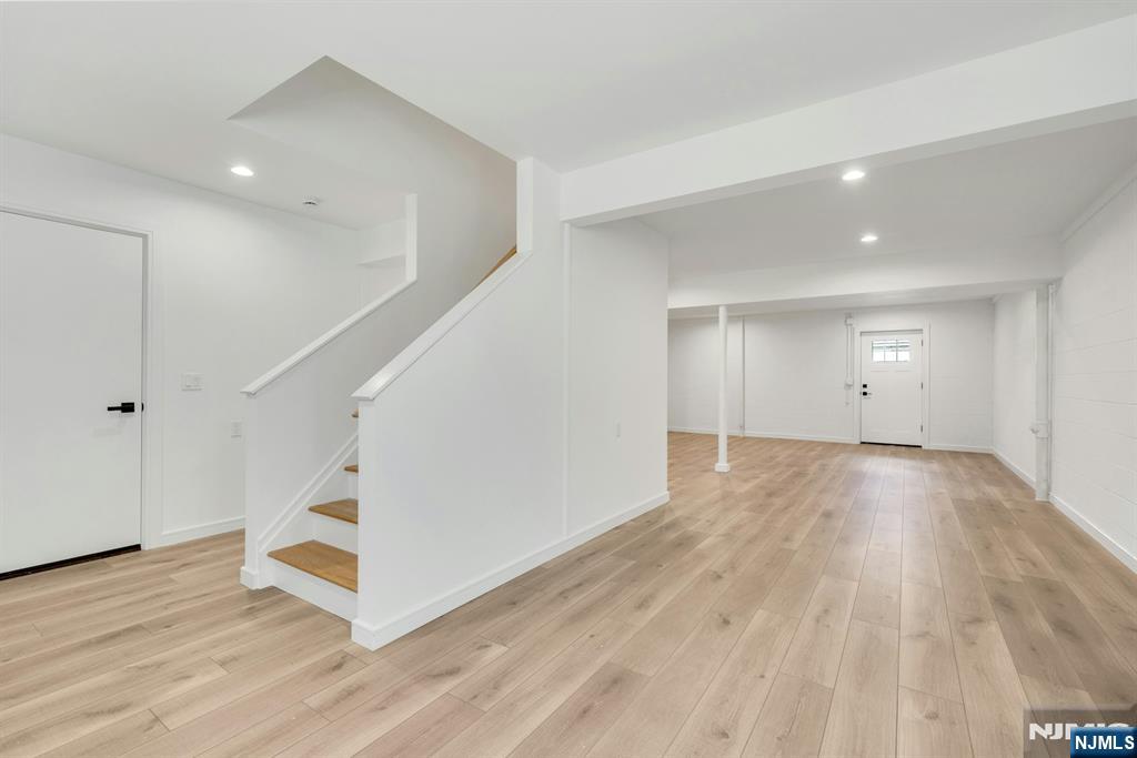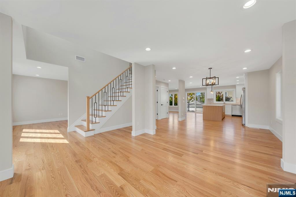 Brand New East-facing 8-bedroom, 6 full bath 2 family duplex w/2 separate garages & driveways! This quality-built home measures approx 4,800 sq ft (plus an additional 2,000 sq ft on ground level) on a 75 x 113 lot! Each side has Living room, dining room, den, family room combined with an open concept kitchen with custom built cabinets, quartz tops with tiled backsplash, stainless steel appliances, which include stove, built-in microwave, dishwasher, and refrigerator with ice maker/water dispenser. The family room has a heated electric fireplace and sliders to 10' x 15' composite deck overlooking a deep yard. 2nd floor features 4 bedrooms, laundry closet with washer & dryer & 2 full baths. Master bedroom with 2 walk-in closets and private bathroom with shower stall. Pull down stairs to attic. 4 separate gas forced air heating & air conditioning systems ( units each side), 2 gas tankless water heaters, 2 electric, gas & water meters. Security camera system, hardwood floors on 1st & 2nd floor, 2nd floor pre-wired for house router. Ground level has access to a built in garage and walkout to rear yard. 150 amp electric panel. Each driveway can accommodate a few cars. Each side has private yard & landscaped property. Located in a flood zone, all finished areas are above the flood elevation line, and flood insurance is quoted at $1255 per year! 2 blocks to NJ Transit bus stop #160 to NYC Bus Terminal in less than 30 minutes on average! Includes a 10-year new home warranty!