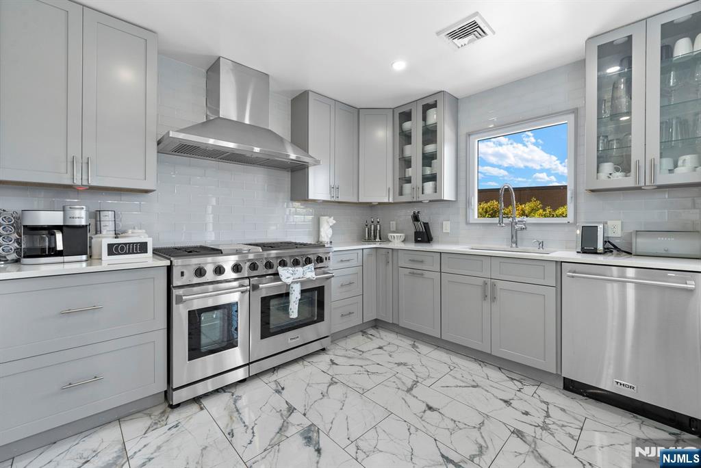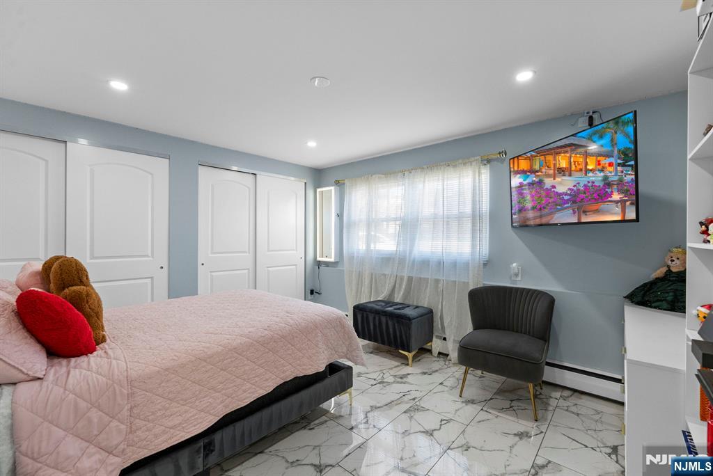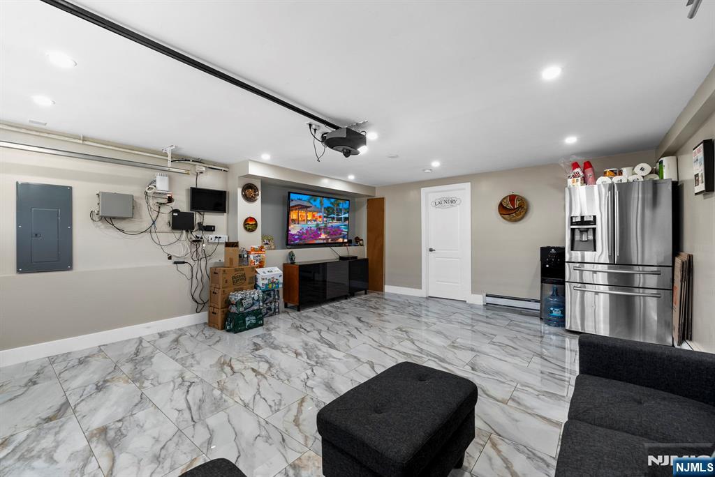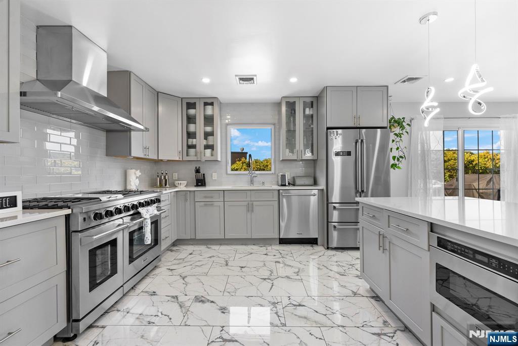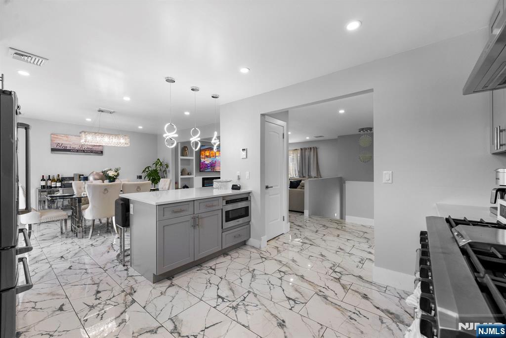 Welcome to Montclair Heights one of Clifton's most sought-after neighborhoods. This beautifully updated 4-bedroom, 2-bath bi-level home offers over 2000 sq. ft. of versatile living space, perfectly designed for today's lifestyle.Step inside to discover modern upgrades throughout: Brand new electrical system with 200-amp service, updated wiring, and a 2022 tankless water heater that comes right off the finished garage Stunning porcelain tile floors, custom lighting, and a sleek electric fireplace Chef's kitchen with shaker cabinetry, quartz countertops, subway tile backsplash, and premium Thor appliances Smart-home features including app-controlled garage door opener, security camera system, and in-wall cable connections Hardwired smoke & carbon monoxide detectors for peace of mind. The flexible layout includes two bedrooms on each level, ideal for an in-law suite, home office, or private guest space complete with a separate entrance. Both full bathrooms are upgraded with modern finishes and even Bluetooth speakers for a luxury touch. Outside, enjoy easy entertaining with a composite deck (water-protected underneath), new fencing, paver patio, and an above-ground pool. Plenty of storage with a one-car garage, attic, and additional driveway parking. Located just minutes from major highways, NYC transportation, and Montclair's restaurants and shops this home truly has it all.