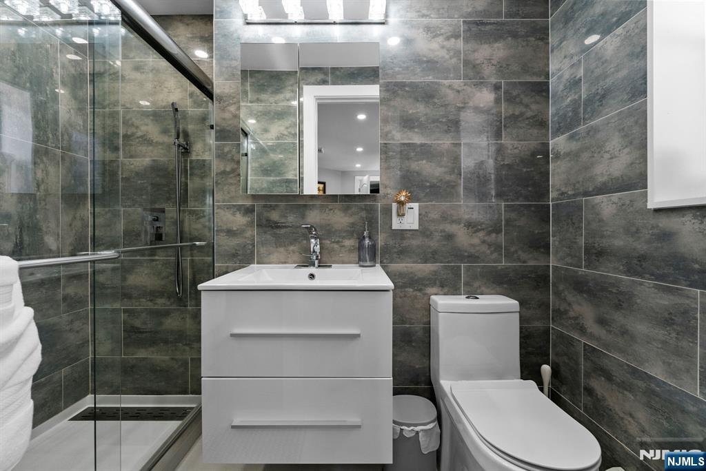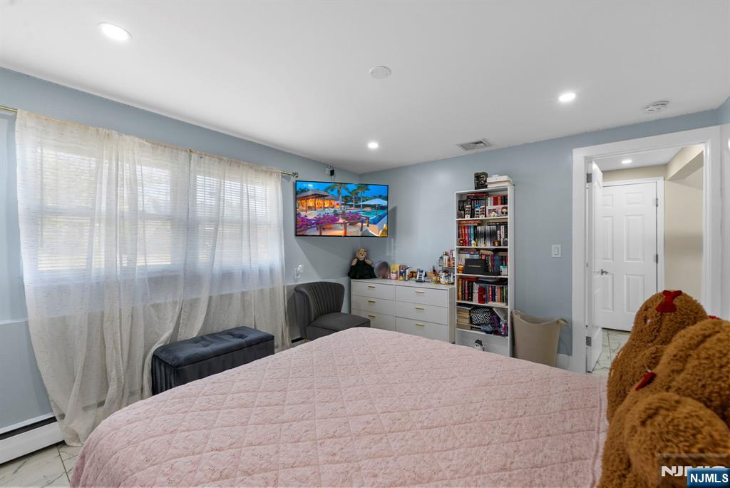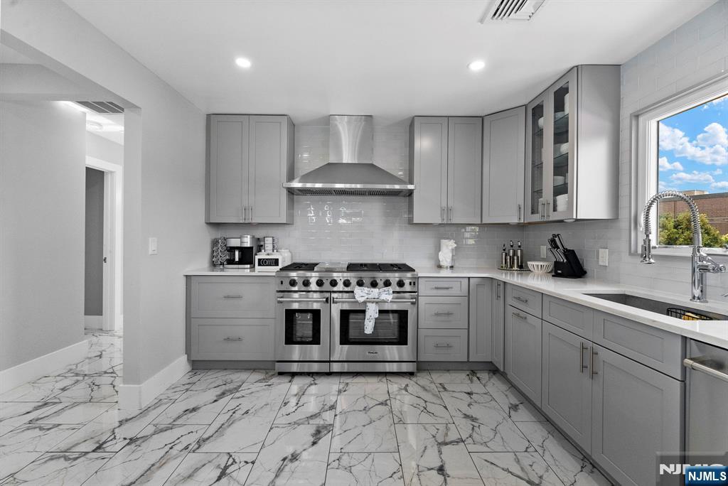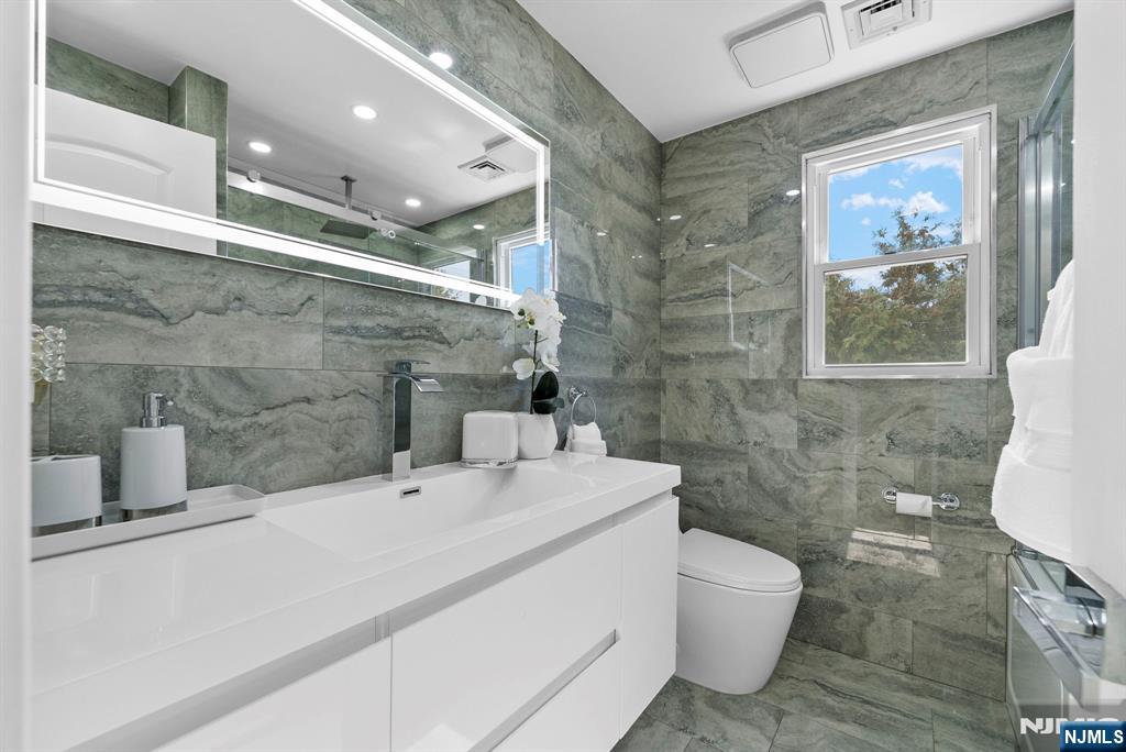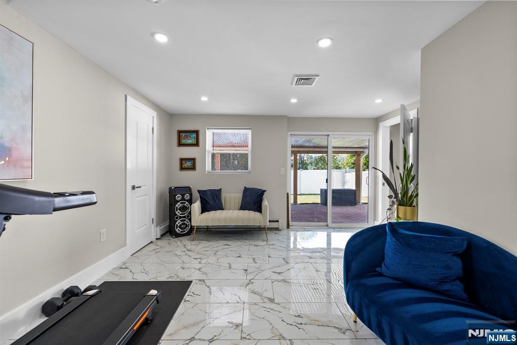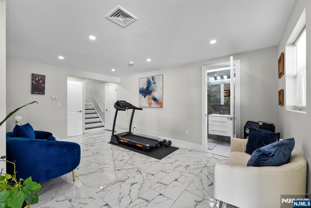 Welcome to Montclair Heights one of Clifton's most sought-after neighborhoods. This beautifully updated 4-bedroom, 2-bath bi-level home offers over 2000 sq. ft. of versatile living space, perfectly designed for today's lifestyle.Step inside to discover modern upgrades throughout: Brand new electrical system with 200-amp service, updated wiring, and a 2022 tankless water heater that comes right off the finished garage Stunning porcelain tile floors, custom lighting, and a sleek electric fireplace Chef's kitchen with shaker cabinetry, quartz countertops, subway tile backsplash, and premium Thor appliances Smart-home features including app-controlled garage door opener, security camera system, and in-wall cable connections Hardwired smoke & carbon monoxide detectors for peace of mind. The flexible layout includes two bedrooms on each level, ideal for an in-law suite, home office, or private guest space complete with a separate entrance. Both full bathrooms are upgraded with modern finishes and even Bluetooth speakers for a luxury touch. Outside, enjoy easy entertaining with a composite deck (water-protected underneath), new fencing, paver patio, and an above-ground pool. Plenty of storage with a one-car garage, attic, and additional driveway parking. Located just minutes from major highways, NYC transportation, and Montclair's restaurants and shops this home truly has it all.