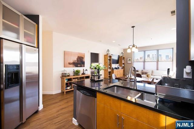 Elevate your lifestyle in this exceptional 2-bdrm 2bath condo showcasing breathtaking views of the Manhattan skyline. This private corner unit offers the perfect living experience. The kitchen features S&S appliances, granite countertops, & a stylish backsplash. Enjoy the open layout with sliding doors leading to a terrace, as well as the convenience of an in-unit washer and dryer. Residents of Hudson Club enjoy an array of fantastic amenities, including a State-of-the-Art Fitness Center, Indoor Basketball, Wet Bar/Billiards, Business Center, & a theater. Outdoor enthusiasts will appreciate the Tennis Courts and Children's Playground, while the 24/7 Concierge & Riverside Promenade enhance the overall living experience. Conveniently located minutes away from Light-Rail, bus, and ferry to NYC, and in proximity to shopping, movies, & restaurants. Rent includes one indoor parking space cabl/internet, & water. Pet OK-conditional(fee applies)