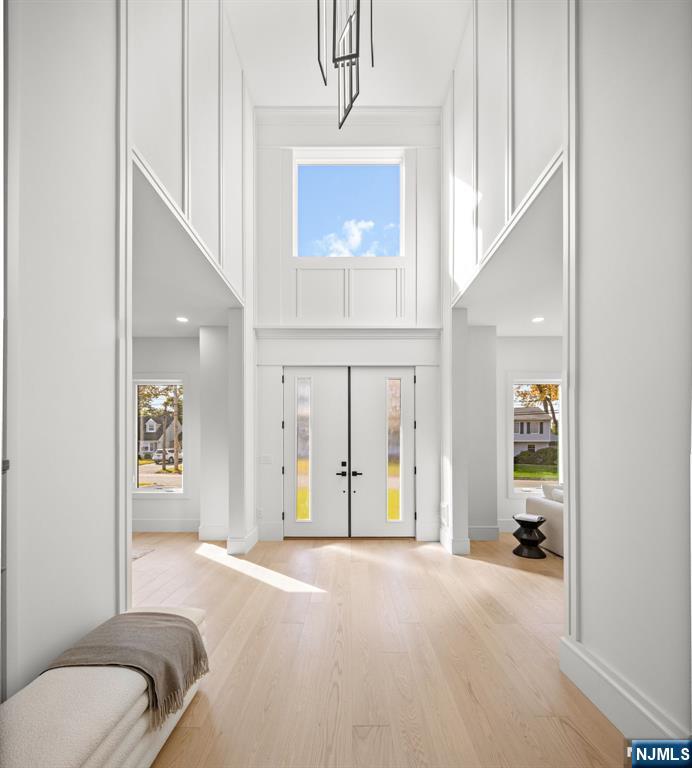 Stunningly luxurious new construction in the low-tax town of Paramus, offering 7,400+ total sq ft on an oversized lot, blending elegant design with top-tier functionality. Features include 10-foot ceilings, custom trim work, and herringbone flooring in the two-story foyer. The main level features a first-floor bedroom suite with ADA-compliant full bath, half bath, office, and formal dining room with wet bar, chef’s kitchen with Viking appliances, custom cabinetry, breakfast nook, and a layout that opens to a spacious backyard (with room for a pool). Upstairs, the primary suite includes 2 custom walk-in closets and a private balcony. 4 additional bedrooms â€â€2 with en-suite bathrooms, a full bath, and a laundry room. Enjoy upscale finishes throughout, including heated floors, floating vanities, and white oak hardwood flooring on both levels. The home is prewired as a full smart home, with hookups for exterior cameras, alarm systems, and customizable automation. Gym, or a movie theater. Wine room, great room with wet bar, and 2 additional bedrooms with full bath.