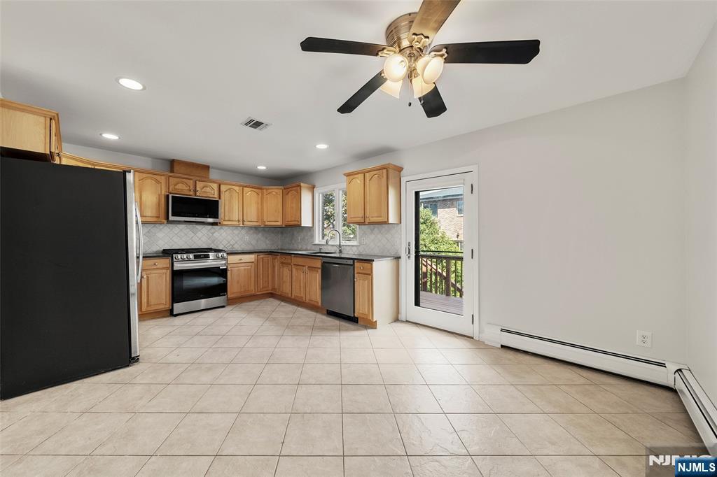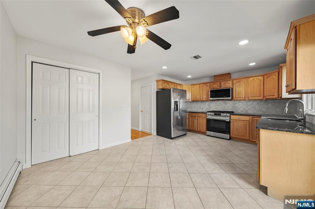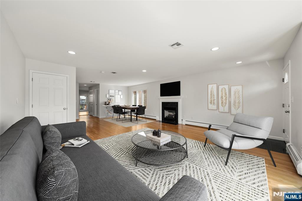 Spacious 4-Bed, 3.5-Bath Duplex in Prime Cliffside Park Location! Nestled in the in the desirable northeastern section of Cliffside Park just off Palisade Avenue, this beautifully maintained duplex offers the perfect blend of comfort and convenience. Commuters will love the proximity to NJ Transit bus stops, while shops, restaurants, and cafes are just a short walk away. The main level boasts a generous living room with a cozy fireplace, a formal dining area, powder room, and a laundry room. The oversized eat-in kitchen features brand-new appliances, a breakfast nook, and sliding doors leading to a private deck-ideal for morning coffee or entertaining. Upstairs, you'll find a spacious primary suite with en-suite bath, two additional bedrooms, and a full hallway bath. The ground level offers a large garage with additional storage, a versatile recreation room, a bonus room perfect for a home office or guest bedroom, a full bath, and a sliding glass doors leading to backyard. Freshly painted and move-in ready. Tenant responsible for snow removal.