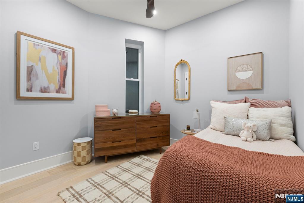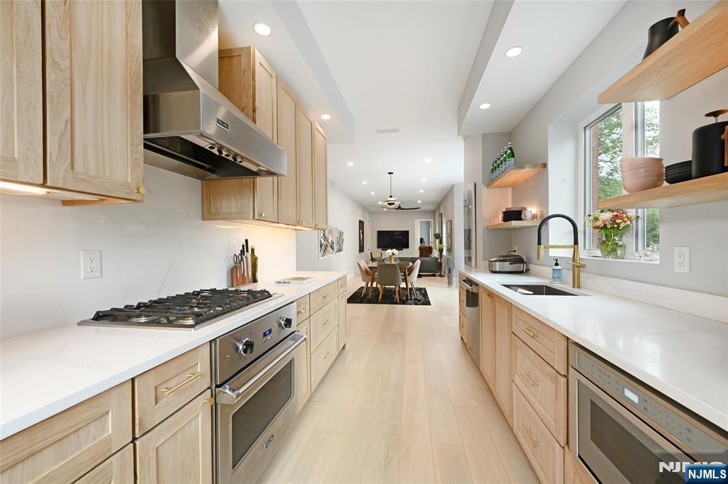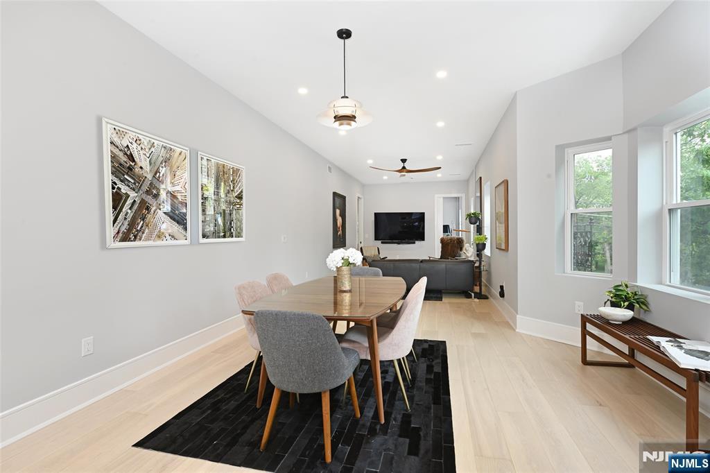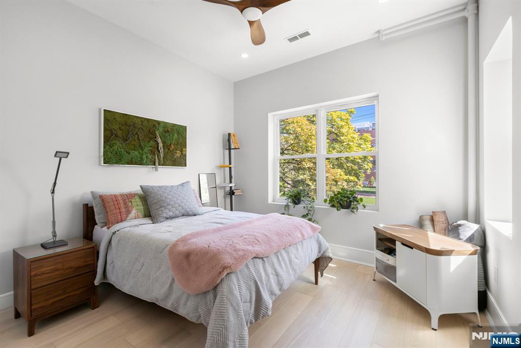 This impeccably renovated 3-bedroom condo looks out on one of Hoboken's most coveted corners, directly across from Stevens Institute and Park. This sun drenched corner unit has an outstanding chef’s kitchen outfitted with custom handmade solid oak cabinetry, floating shelving, and quartz countertops. It features an impressive high-end appliance package including a 36-inch built-in Thermador refrigerator, a Viking Pro Series 5-burner gas cooktop and electric wall oven, Viking dishwasher and an under-counter microwave drawer. The open concept floorplan provides an expansive living space with a generous dining area and an inviting living room that are beautifully enhanced by 8-inch hardwood white oak rift-and-quartered floors and oversized energy-efficient, soundproof windows.The home offers three generously sized separate bedrooms that are ideally situated for privacy. The vast primary bedroom has an en-suite bath beautifully finished with Italian terrazzo tile, designer vanity, Grohe fixtures with a 3-way diverter, and a seamless walk-in shower featuring a frameless glass enclosure and a linear French drain. The large walk-in closet connected to the suite offers flexibility for use as a nursery or dressing room. An elegantly appointed second bathroom, 8 foot solid core doors generous closet space, and slim line full size IQ washer and dryer add to your ultimate comfort. Smart home features include Alexa-enabled switches, a Level smart entry lock, and dual-zone mini split HVA