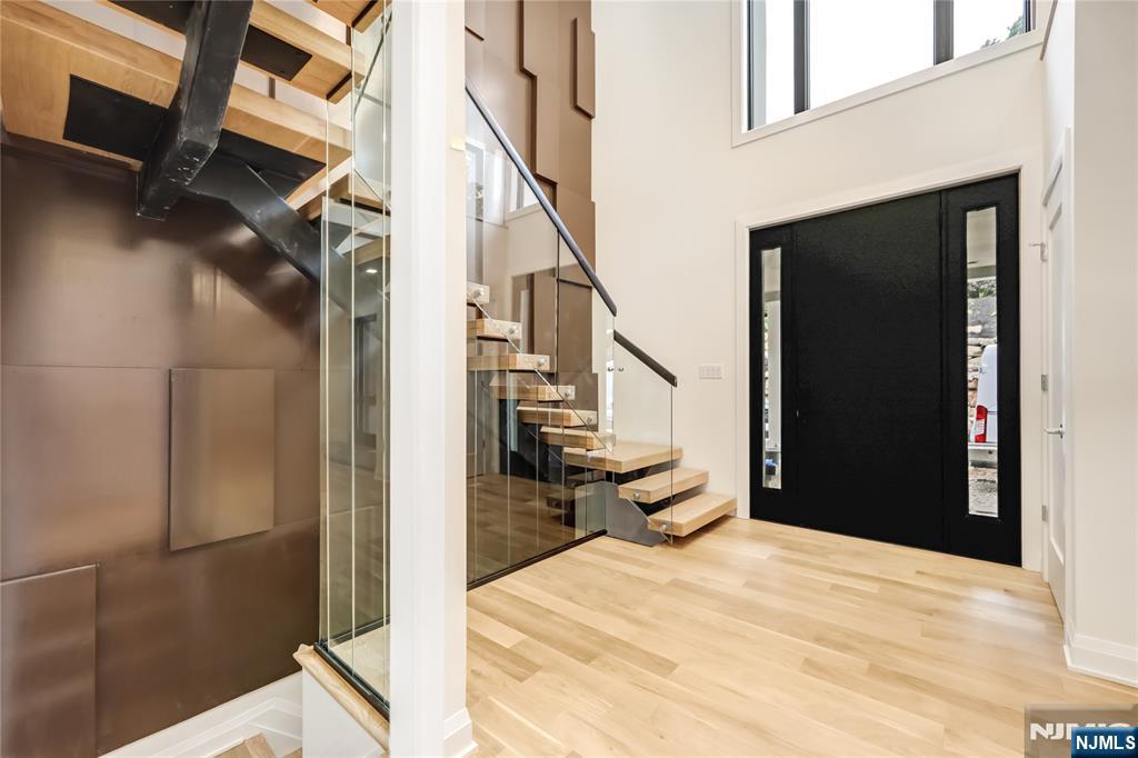 This striking two-story contemporary home greets you with a dramatic foyer featuring rich wood paneling, a sculptural lighting fixture, and a custom staircase with custom glass railings that set the tone for the elegant design throughout. The spacious Great Room, centered around a custom fireplace, flows seamlessly into a sleek, state-of-the-art kitchen with brand-new stainless-steel appliances. Large sliding doors lead to a generous patio with a second fireplace, perfect for refined indoor-outdoor entertainment. The main level also includes a stylish powder room, a versatile bonus room, a well-appointed mudroom, and access to both a two-car garage and a separate one-car garage for added convenience. Upstairs, the bedrooms include the impressive Primary Suite with a walk-in closet and a spa-like en suite bath. Oversized windows and soaring ceilings throughout flood each room with natural light, enhancing the home’s open, airy feel. Set back from the street on a large lot, the home is accessed by a long, elegant driveway and exudes a refined yet welcoming presence. The owner has put in green-grade sod to complete the exterior. 10 Big Ramapo offers everything you need: poured concrete foundation, steel siding, butcher block stairs, custom glass railings, decorative wall accents, and top-tier plantings. This is contemporary living with a distinctly elevated perspective. Come see it for yourself!