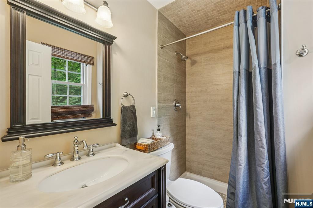 Welcome home to this inviting 4-bedroom, 3-bathroom Split-Level tucked away on a beautifully landscaped, wooded lot in the heart of scenic Ringwood. Surrounded by nature, this home offers the perfect balance of privacy, comfort, and community, ideal for those seeking a lifestyle with access to lakes, parks, and hiking trails. Step through the welcoming entry vestibule into the cozy family room, an ideal space for movie nights or quiet relaxation. Beyond the family room, the spacious den, currently used as a home office and playroom features skylights and a fireplace. A ground-floor bedroom, full bathroom, laundry area, and direct garage access complete the lower level. Upstairs, the sun-filled living room invites relaxation with its large windows and serene wooded views. The open layout flows into the elegant dining area, perfect for gatherings with family and friends. The updated kitchen is both stylish and functional, showcasing granite countertops, custom cabinetry, center island, and pantry. Sliding glass doors open to a large deck that extends your living space, overlooking the peaceful, tree-lined yard. The upper level includes a generous primary suite with a walk-in closet and private bath, two additional bedrooms, and a full hall bathroom. Outdoors, enjoy a true Ringwood retreat complete with a deck for summer dining, a patio for entertaining, and an above-ground pool with built-in decking. A two-car garage and ample parking complete this exceptional property.