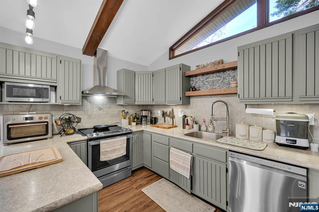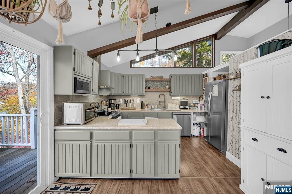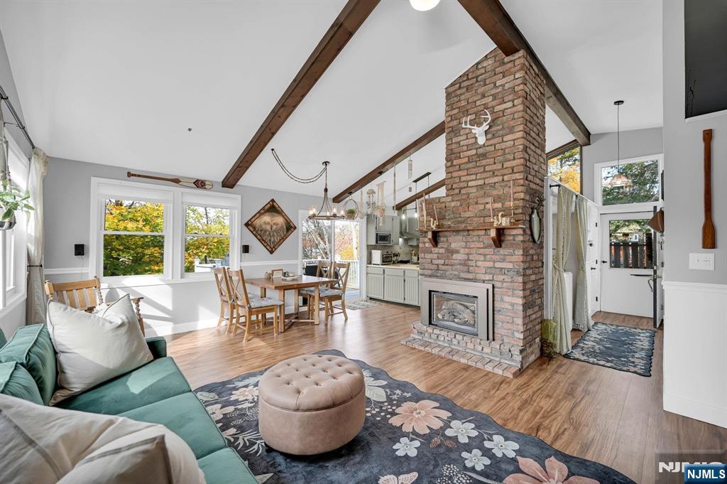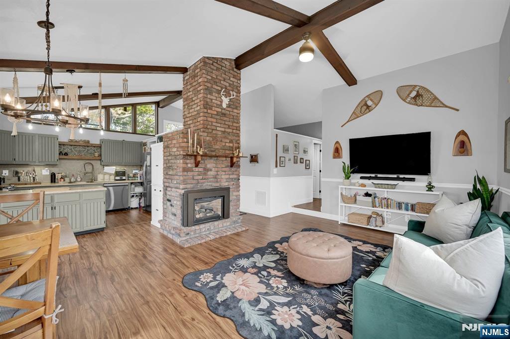 Modern charm meets lake community living! This immaculate 3 Bed, 2 Bath Ranch has been thoughtfully renovated, featuring vaulted ceilings, a cozy gas fireplace, and an open-concept layout perfect for today's lifestyle. This home offers easy single-level living combined with a prime location in the desirable Erskine Lake Community. The property welcomes you with a functional entry area that includes the laundry. Step inside to the main living space, where the Living Room, Kitchen, and Dining Area flow together. This bright and airy space features vaulted ceilings with exposed wood beams, natural light through large windows, and vinyl plank flooring throughout. The Living Room is featured by a cozy gas fireplace, providing a perfect spot for relaxation. The updated kitchen boasts stylish cabinetry and stainless steel appliances, making it ideal for cooking and entertaining. The layout includes the Primary Bedroom with a private, full bathroom, and two additional bedrooms served by the second full bathroom. Outside, an expansive deck is the perfect place to dine or simply unwind, offering stunning lake views and a peaceful connection to nature. Don't miss the opportunity to make this your new sanctuary in the Erskine Lake community.