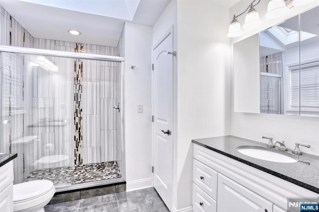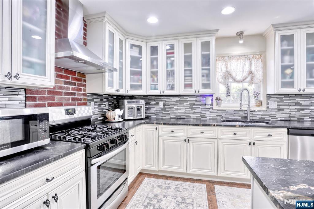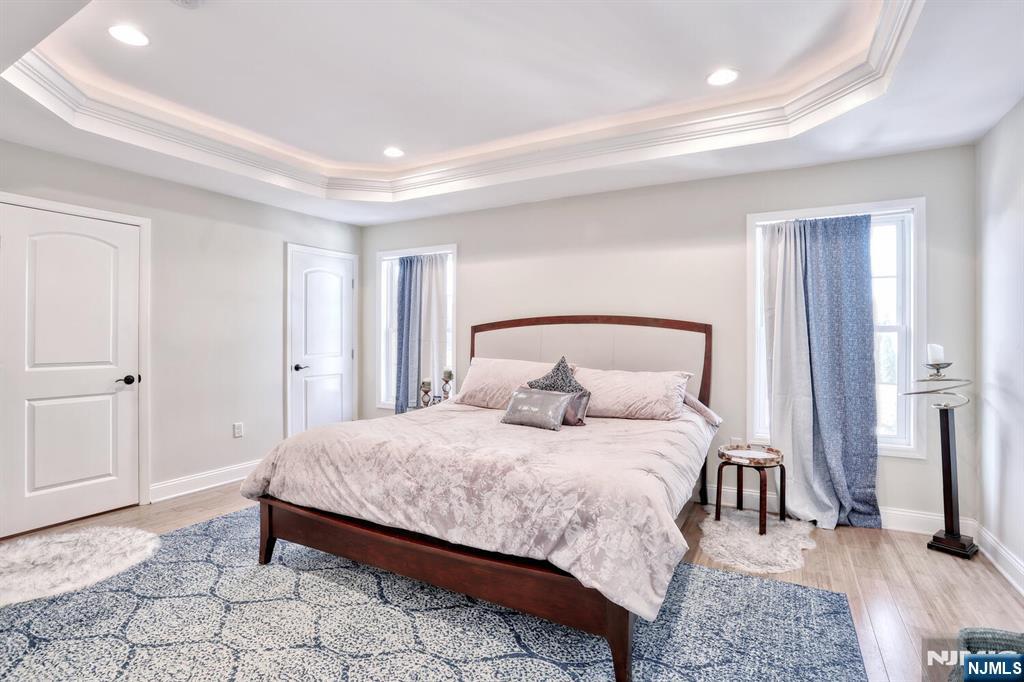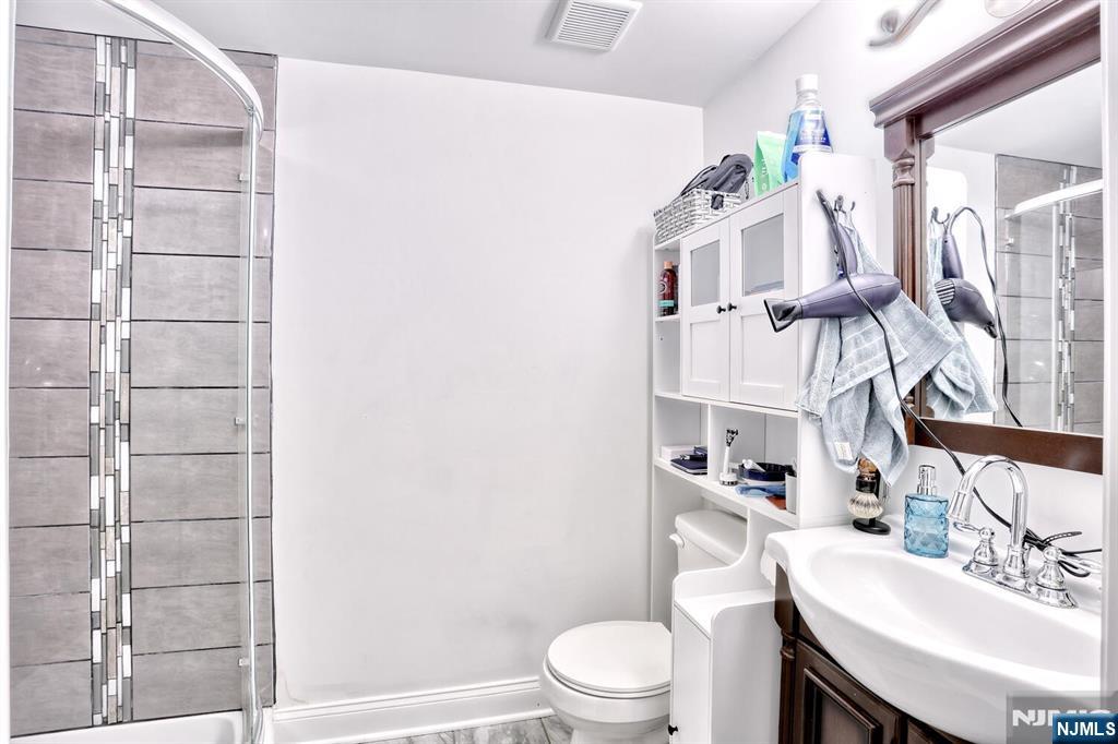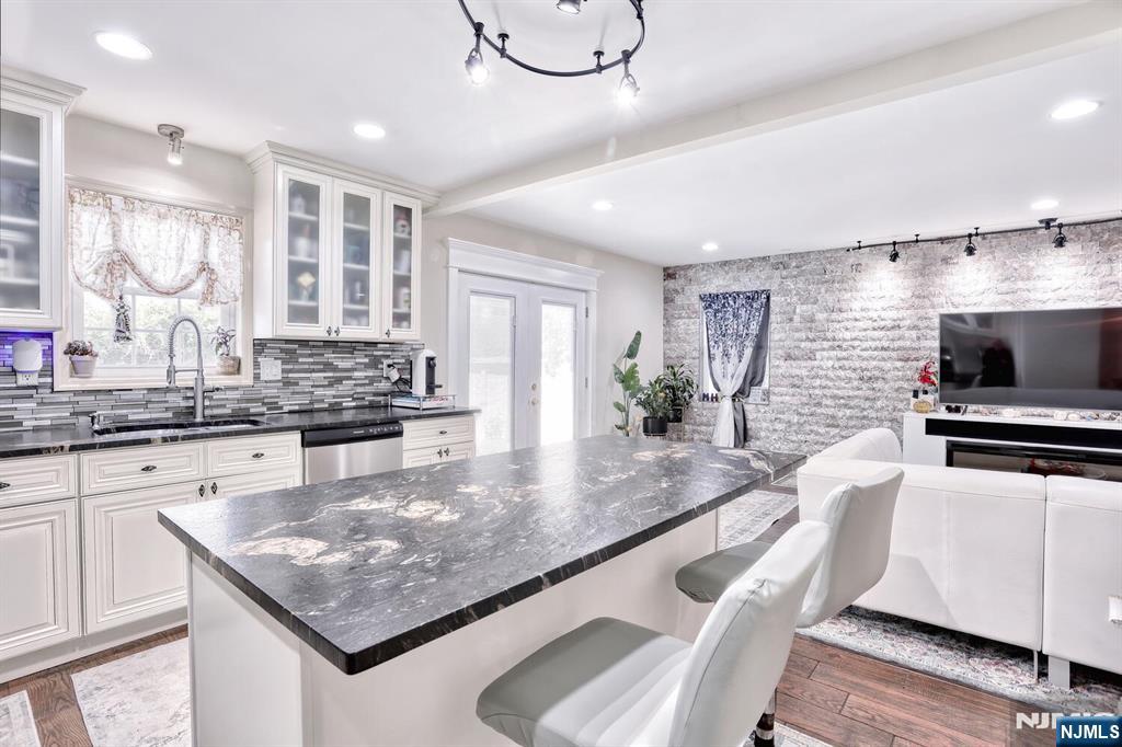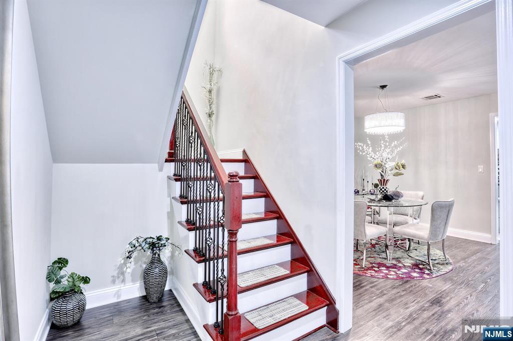 Beautiful 6 year young home built on existing foundation located in North Arlington. Open Floor Plan, spacious home with 5 Bedrooms & 3.1 baths. The first floor welcomes you with an open floor plan. With entry foyer, living room with accent wall, kitchen with central island, formal dining room, bedroom, half bath and door to backyard. The second floor features a large primary bedroom with vaulted lighted ceilings, 2 walk in closets and a large ensuite primary bath with 2 separate sinks & skylight. Second floor also features 3 additional spacious bedrooms, full bath, laundry, multiple linen closets and pull down stairs to attic. Basement is full & finished with an entertainment room, full bath, additional laundry hookups & 1 car garage. Backyard is fully fenced in with jacuzzi tub & sun setter awning. Additional features include: hardwood floors on 1st floor & bamboo flooring on 2nd floor. Plenty of storage, 2 car parking in driveway, 2 zone ac & heating, recessed lighting. Easy commute to NYC with easy access to highways & buses. Close to schools & shopping.