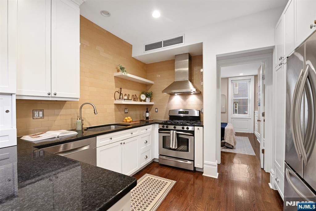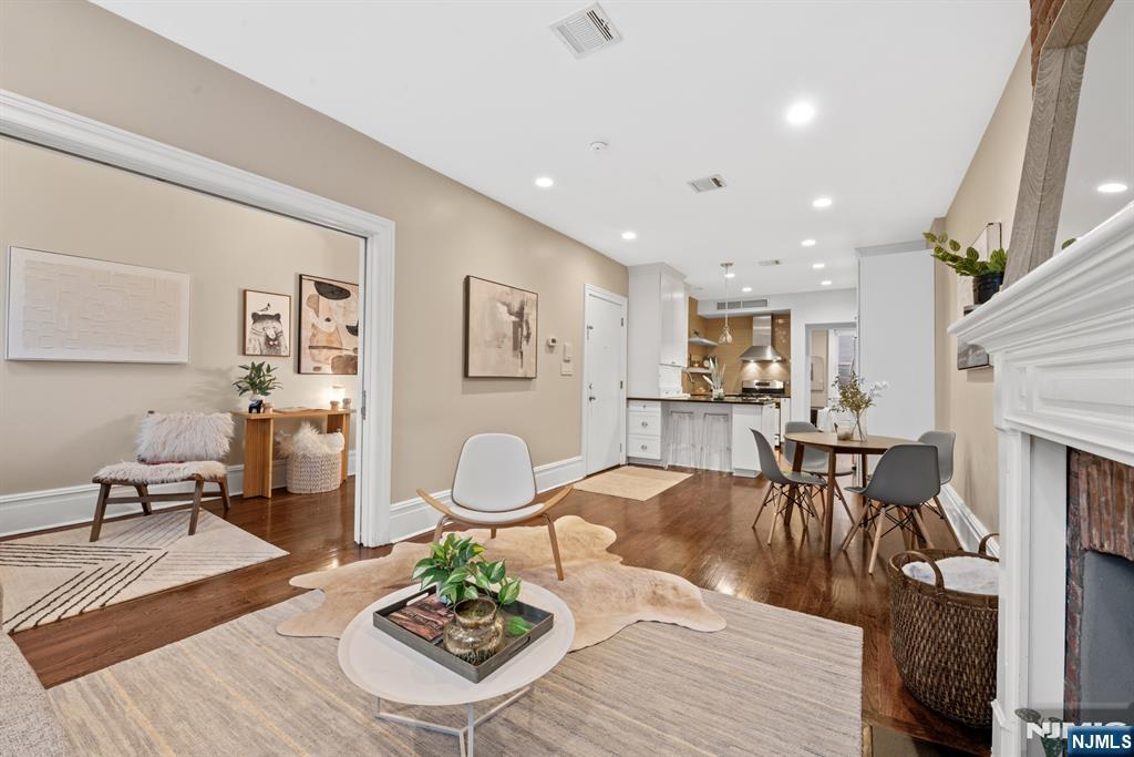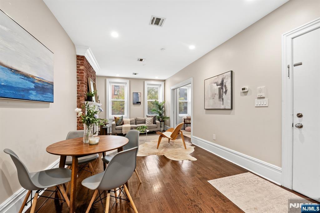 Welcome home to this beautifully renovated 1,042 sq. ft. 2 bed / 1.5 bath home ideally situated on the prestigious Bloomfield Street in downtown Hoboken. This sun filled east-facing unit features the charm of a brownstone with expansive 10 ft. ceilings, a decorative mantle with exposed brick, an abundance of custom built-ins, central A/C, recessed lighting and hardwood floors throughout. The chef's kitchen blends style and function with stainless steel appliances, custom cabinetry with spice rack and built-ins, glass subway tile backsplash, granite countertops, ample counter space, great storage space and a pendant lit breakfast bar perfect for dining. Enjoy the convenience of a newly installed Samsung washer/dryer, low monthly HOA, and the bonus of being outside the flood zone. The generously sized primary bedroom is beautifully lit with wall sconces and features custom built in cabinetry, ensuite bathroom and a massive walk-in closet with Elfa shelving. The 2nd bedroom offers its own half bath. And of course location, location, location. At 336 Bloomfield St, you’re moments away from Washington St, the PATH, buses, Church Sq park, the library, hospital, plus every café, restaurant, and convenience that makes Hoboken living unbeatable.