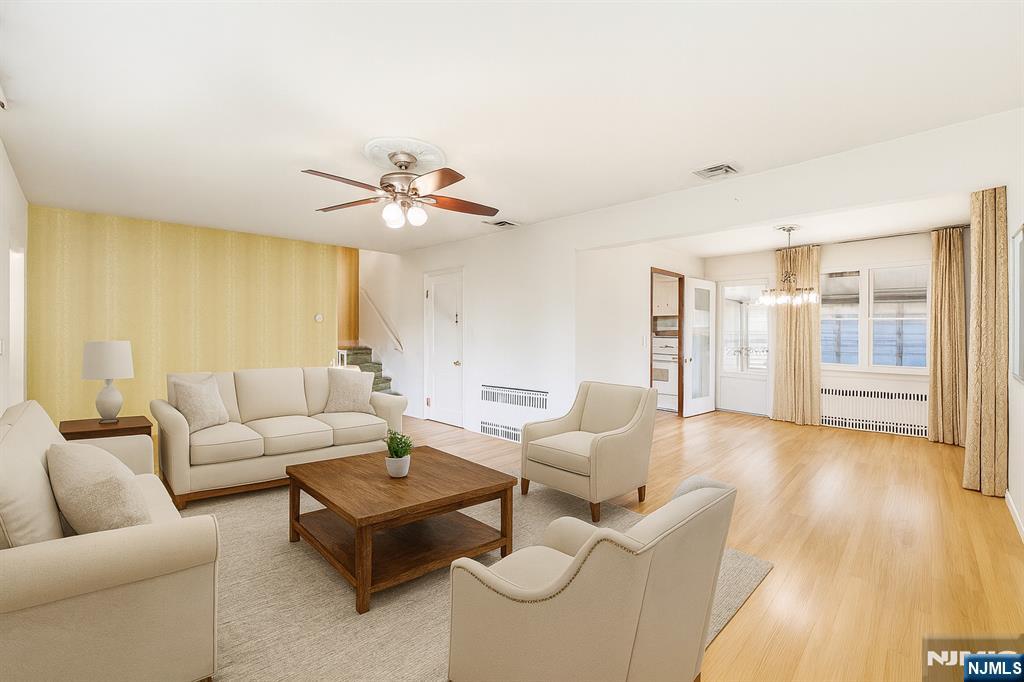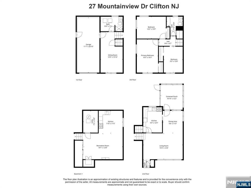 Welcome to 27 Mountain View Dr., a well-located split-level home offering space, versatility, and incredible NYC skyline views. The upper level features 3 bedrooms and 1 bath, while the first floor includes an additional bedroom and full bath, ideal for multi-generational living or flexible use. Hardwood floors extend throughout the home, and the full-height basement offers excellent expansion potential along with a summer kitchen, perfect for extended stays, entertaining, or supplemental prep and storage. An attached garage completes the layout. The home needs some TLC, making it a prime opportunity for buyers, renovators, or investors looking to create value in a sought-after Clifton location close to major highways, shopping, and transportation.