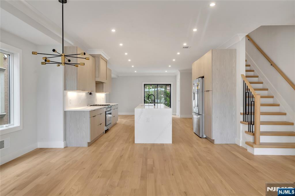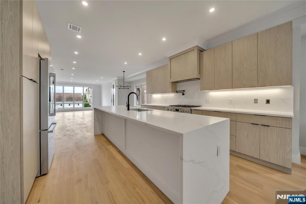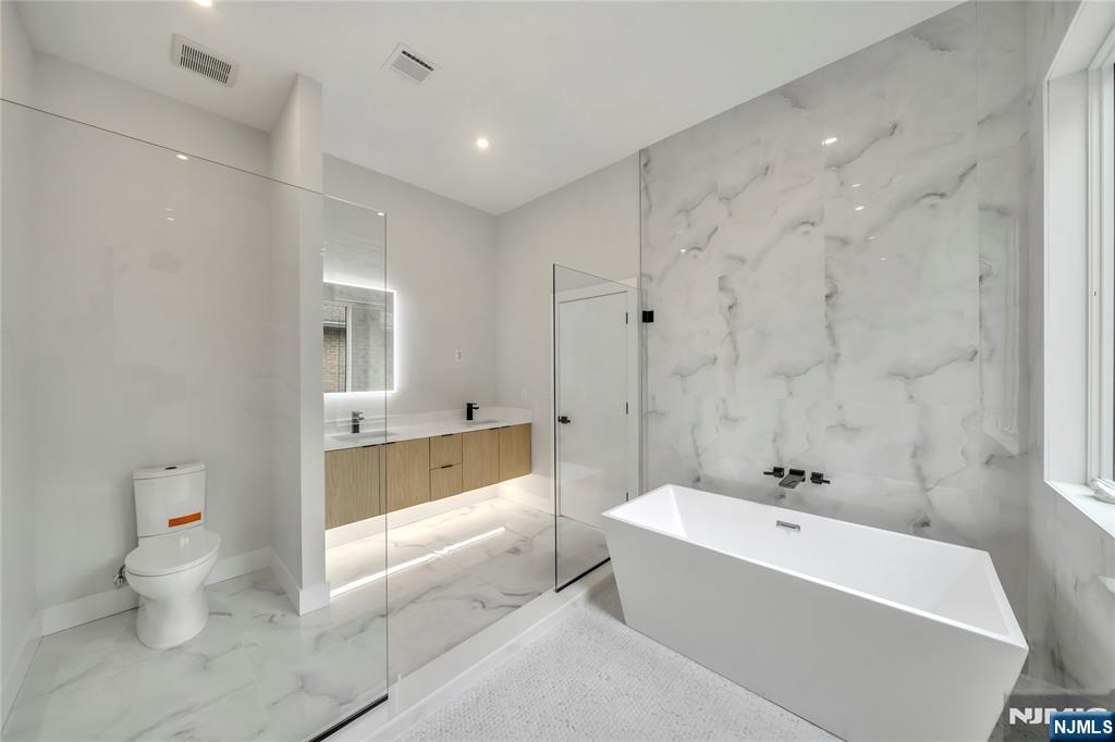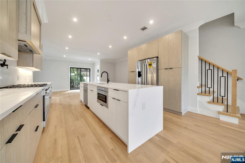 BRAND NEW LUXURY 4 STORY TOWNHOUSE ON QUIET DEAD END STREET IN PALISADES PARK. MAIN LEVEL FEATURES OPEN FLOOR PLAN WITH 9' CEILING, LIVING ROOM WITH GAS FIREPLACE, DINING ROOM, MODERN KITCHEN WITH OVERSIZED ISLAND, SITTING ROOM, AND SLIDING GLASS DOORS TO FENCED IN YARD AND PATIO....PRIMARY BEDROOM WITH TWO CLOSETS, OVERSIZED WINDOWS, AND BATH WITH FLOATING DOUBLE VANITY WITH LED LIGHTING AND WET ROOM WITH GLASS ENCLOSED FREESTANDING TUB AND SHOWER...ANOTHER TWO ADDITIONAL BEDROOMS SHARE THE HALLWAY BATHROOM...STAIRCASE LEADING UP TO OVERSIZED ROOFTOP TERRACE BOASTING SPECTACULAR VIEWS OF MEADOWLANDS AND PERFECT FOR RELAXING AND ENTERTAINING....GROUND LEVEL OFFERS TWO CAR GARAGE, RECREATION ROOM WITH WET BAR, BEDROOM OR OFFICE, FULL BATHROOM, AND SEPARATE SIDE ENTRANCE....AVAILABLE NOW