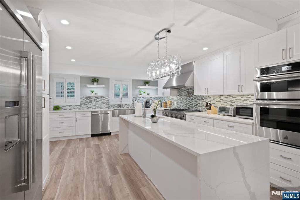 Pull into the oversized paved driveway and view the inviting wraparound porch — you’ll instantly feel at home. This fully renovated split-level colonial offers over 3,600 sq. ft. of living space on nearly one acre, combining modern luxury with timeless charm. Inside, enjoy 5 spacious bedrooms including two primary suites—one with dual walk-in closets and a private balcony overlooking the backyard. The home features 3.5 beautifully updated bathrooms, generous closet space, and a flowing layout perfect for entertaining. The chef’s kitchen boasts a waterfall quartz island, Bertazzoni appliances, and French doors opening to a tiered deck and private yard. Gather by one of two fireplaces in the living or game room, or spend summer days relaxing by the in-ground pool surrounded by pavers. With professional landscaping, elegant finishes, and a serene yet convenient location, this home is truly move-in ready. No flood insurance currently required (buyer to verify). Unpack and start living the River Vale lifestyle!