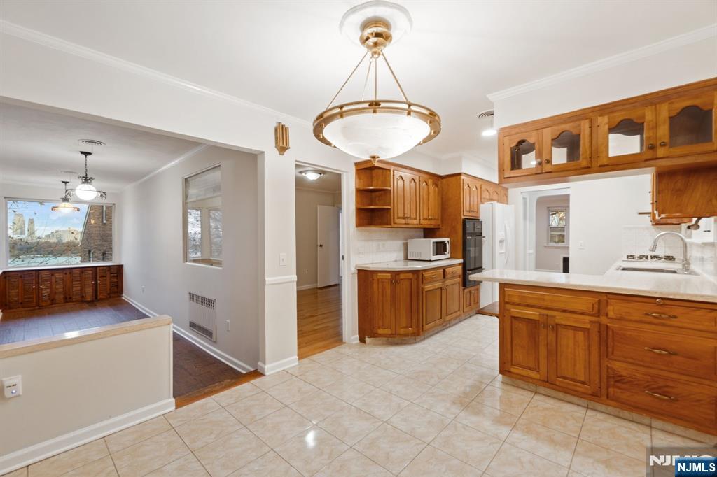 Experience the perfect blend of suburban tranquility and city convenience in this charming 3-bed, 2-bath ranch-style single-family home for rent. Situated on a quiet dead-end street, this home features beautiful hardwood floors throughout the main level and offers a classic, easily manageable layout with spacious bedrooms and an inviting eat-in kitchen. The standout feature is the bright bonus sun room, which boasts a wall of windows offering stunning NYC skyline views. The home provides significant extra space with a full finished basement that includes a second full bathroom. Commuting is a breeze, with quick and easy public transit access to Manhattan, making rush-hour trips to Port Authority typically achievable in under 45 minutes. Practical amenities include a 1-car garage plus driveway parking for two additional cars, and a private backyard, providing everything you need for comfortable living with an unparalleled location.