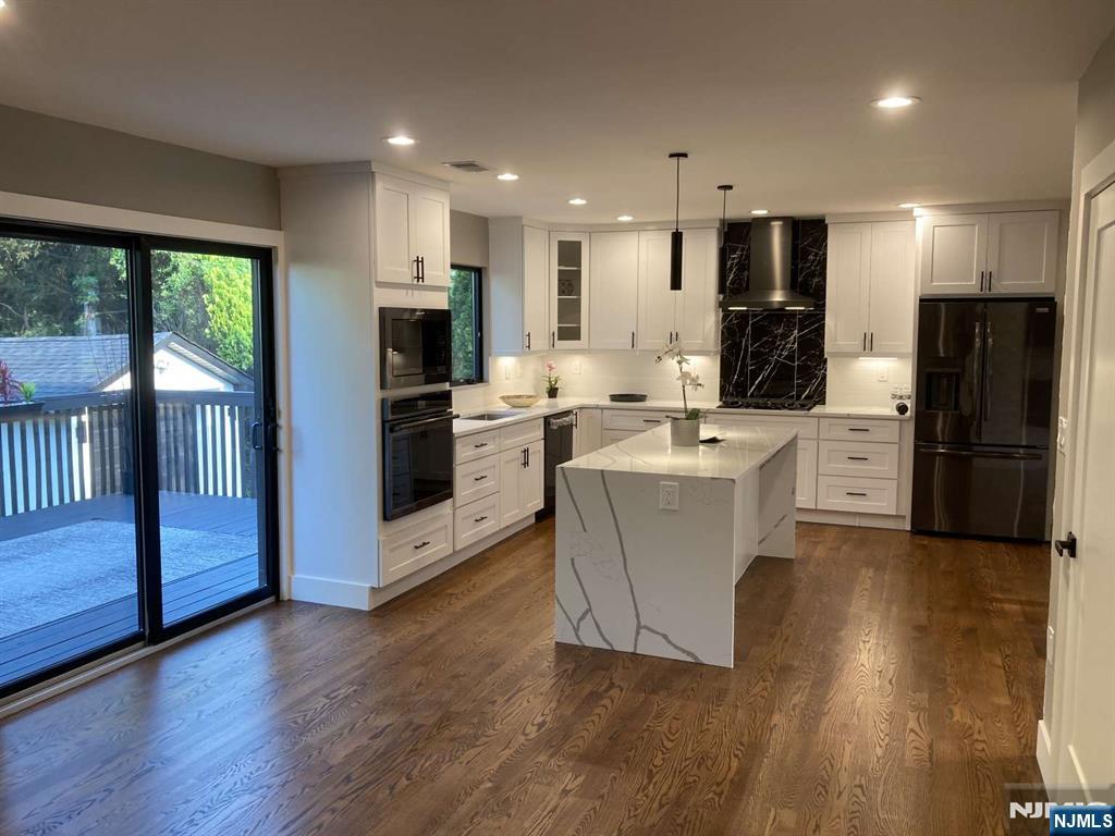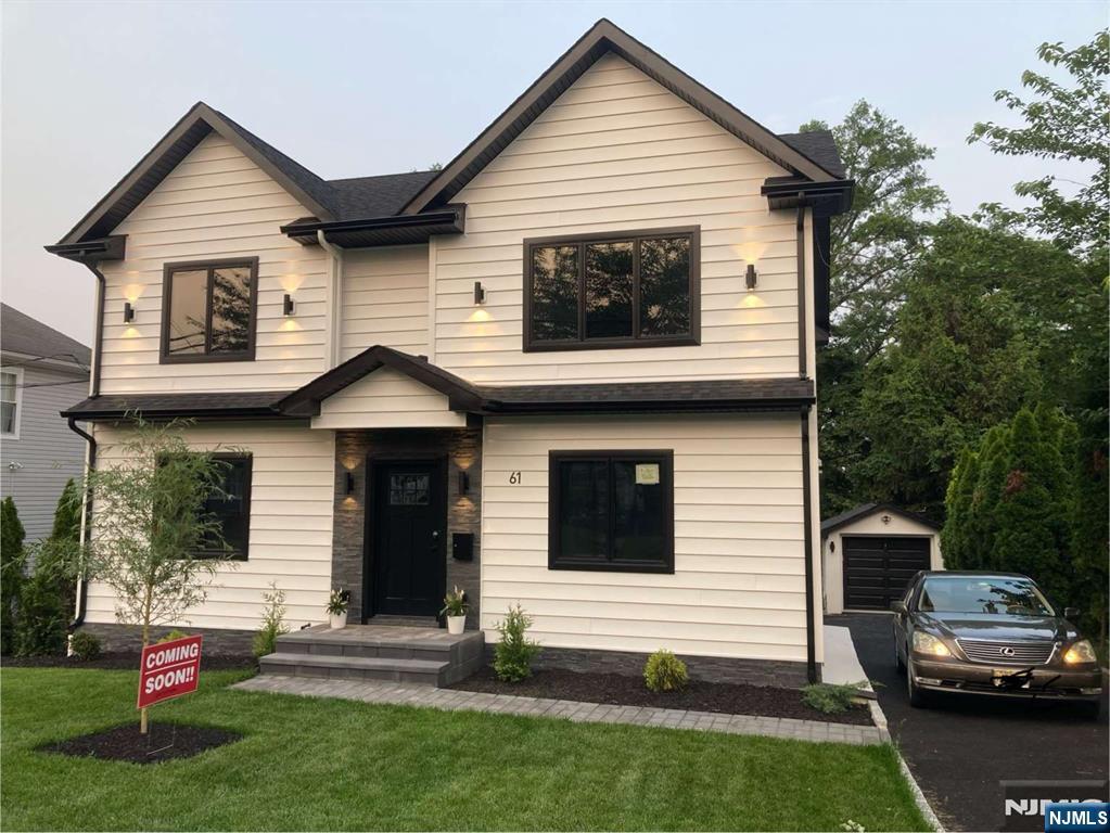Experience modern elegance and thoughtful craftsmanship in this newly built home, constructed on an existing foundation. Featuring 5 bedrooms, 5.5 bathrooms, and a 1-car garage, the home showcases 7.5" white oak floors, a dramatic two-story foyer with 9' ceilings, and a modern rod-iron staircase. The first floor offers an open living and dining area with an electric fireplace and custom TV wall, plus a bedroom with en-suite bath, powder room, and custom closets. The chef’s kitchen stands out with quartz counters and backsplash, an island with microwave drawer, and premium Fisher & Paykel and GE Café appliances. Upstairs includes 4 bedrooms and 3 bathrooms, highlighted by a stunning primary suite with spa-inspired bath, free-standing tub, and custom walk-in closet. A full laundry room with washer, dryer, and sink completes the level. The finished basement adds more living space with a large family room and a full bath with frameless glass shower. Bathrooms feature porcelain tile, frameless glass doors, and Kohler fixtures. Exterior features include a paver driveway with Belgian block edging, stepping-stone walkway, fenced yard, multi-zone sprinkler system, and a high-end entry door with accent lighting. Additional upgrades include a 75-gallon AO Smith water heater, 2-zone heating/cooling with smart thermostats, and a surveillance camera system with TV monitor. Located in the heart of Fair Lawn, this home defines modern luxury living.