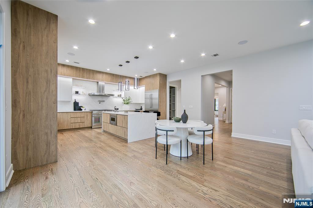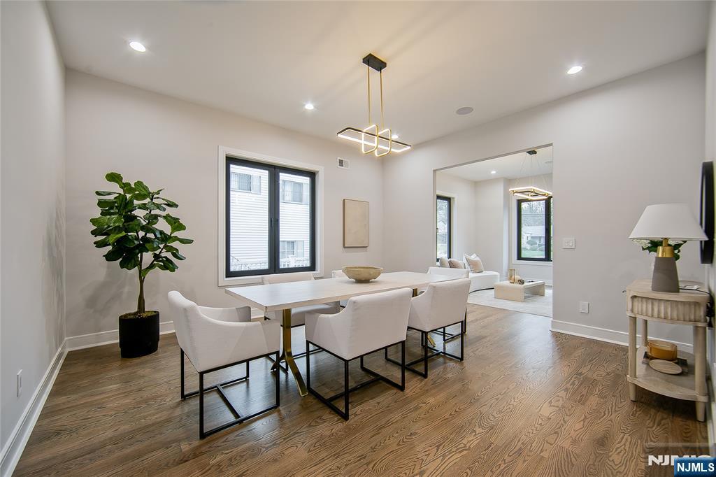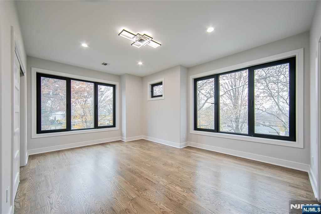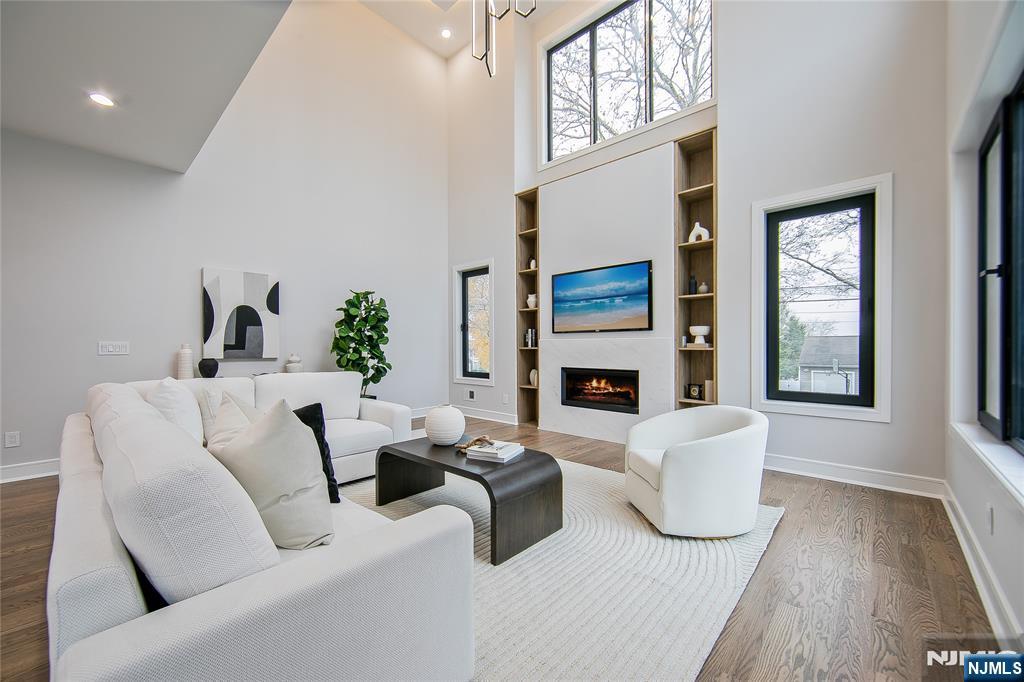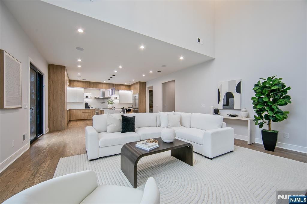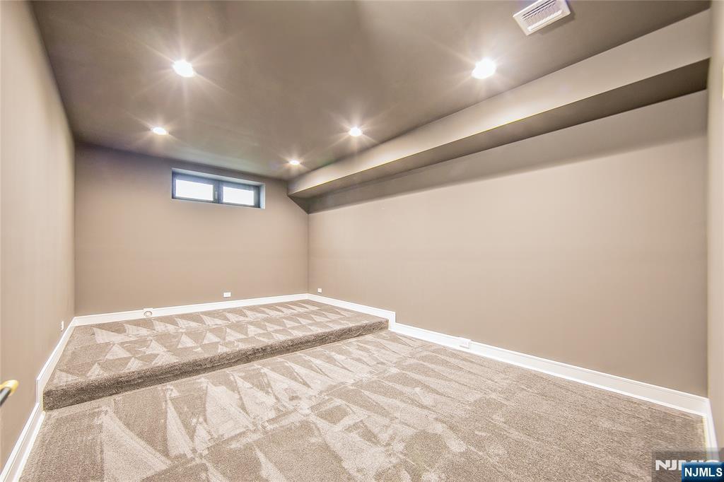 Welcome to 121 Circle Drive, a stunning new construction by Jet Engineering. Offering nearly 6,500 sq ft across 3 finished levels, this home blends modern luxury with thoughtful functionality. A dramatic two-story foyer leads to a seamless main floor with 10’ ceilings, formal DR with butler’s pantry, living room, and a breathtaking two-story great room w/ gas FP. The designer chef’s kitchen features quartz counters & backsplash, custom LED cabinetry, large island, pot filler, walk-in pantry, & Thermador appliances. A private office/optional 7th bedroom, full guest suite, & powder room complete this level. Upstairs offers 4 bedrooms: a junior suite, 2 bedrooms with Jack & Jill bath, and a serene primary suite with 2 walk-in closets and a spa bath with heated floors, rain shower, freestanding tub, & double vanity. The fully finished lower level includes a large rec room with wet bar, home-theater setup, guest bedroom, full bath, mudroom, & access to the 2-car garage. Exterior highlights include Hardie + New-Tech siding, paver driveway/patio, privacy fencing, and sprinklers. Additional features include a full exterior camera system and complete smart-home package with smart thermostats, doorbell, integrated speakers, and smart garage door. The home is generator-ready with an automatic transfer switch and electrical connection in place. With 7 bedrooms, 5.5 baths, 4-zone HVAC, advanced tech, & exceptional craftsmanship, 121 Circle Drive delivers true luxury living in Paramu