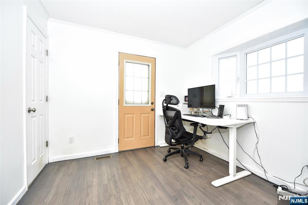 Located in the highly desirable town of Ridgewood, this 4-bedroom, 2 bath colonial is primed and ready for you to call home! You will be delighted to discover all hardwood floors, a Living Room with a beautiful coffered ceiling, a full Dining Room with French Doors leading directly to the backyard patio and a large Kitchen with lots of cabinets and counter space that features a fabulous 6-month-old Samsung Smart Refrigerator. Rounding out the first floor is a Bedroom/Office with its own private entrance and a renovated Bathroom with a standup shower. Make your way upstairs and you will find 3 generously sized Bedrooms, a full Bath with a double vanity and a hallway area perfectly suited for a sitting area or small home office. The finished Basement offers a Family Room, a Laundry Room with a washer and newer large capacity dryer, and a separate storage area. The fully fenced in backyard has a patio area prefect for summer barbeques, 2 sheds, and a separate dog run for your fur babies! With multi zoned heat and central air, this home is waiting for its new owner to add their finishing touches and start enjoying all Ridgewood has to offer.