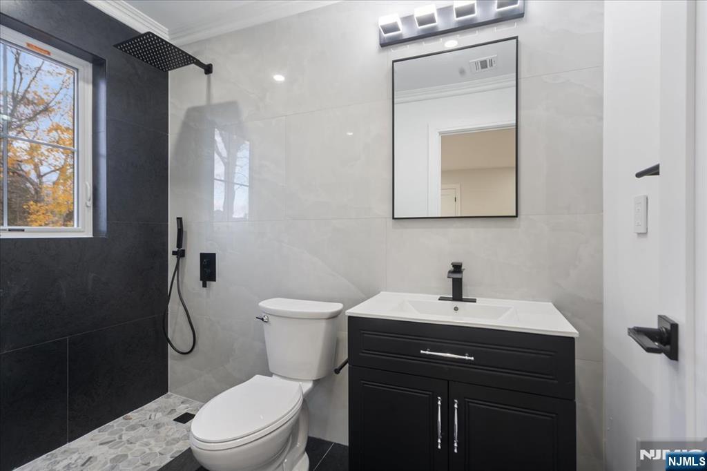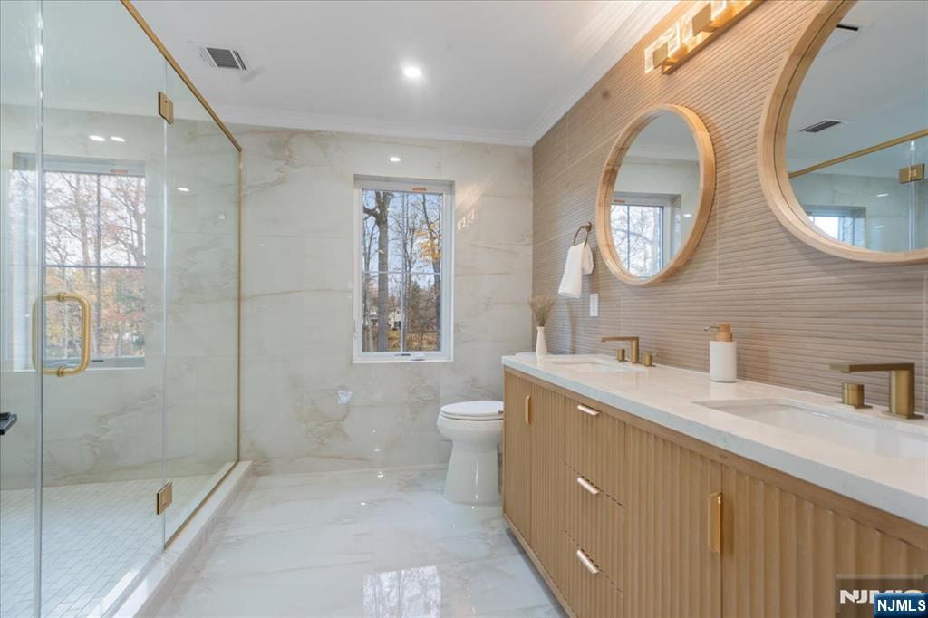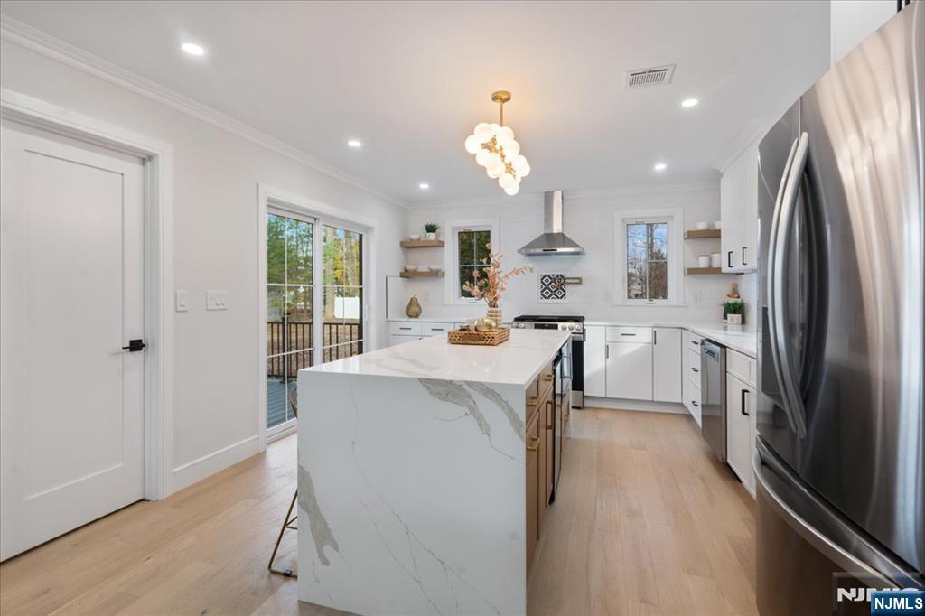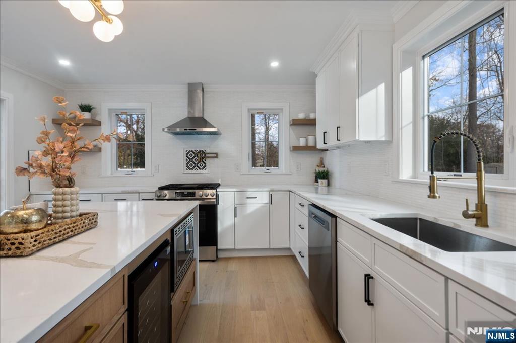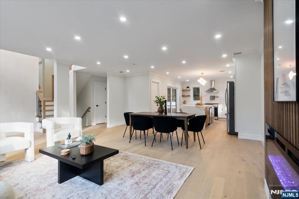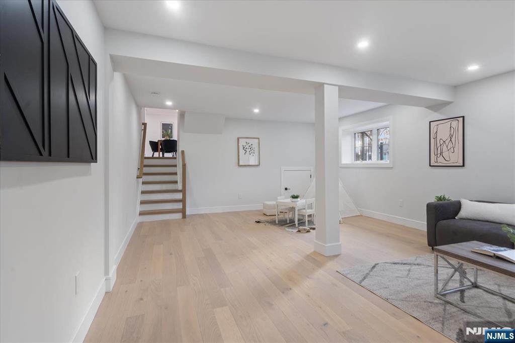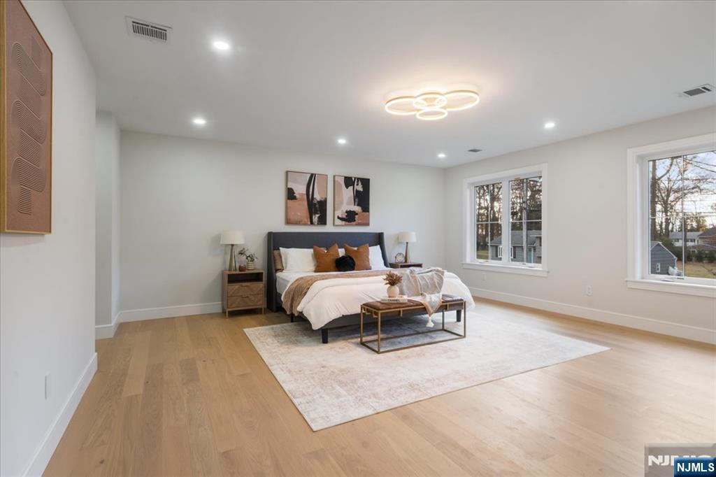 Welcome to this newly built home on existing foundation in the desirable town of Woodcliff Lake! This home is on a dead-end street with a big flat level lot. Walk into the double story foyer with loads of natural light to an open living room, dining room, and tastefully done modern kitchen with a big island, stainless steel appliances, soft close cabinets, pot filler and more. You have a 1/2 bath on the first floor as well and a pantry. There is a slider door to the back trex deck off the kitchen. Second floor of the home features 3 good size bedrooms that share a bathroom as well as a junior ensuite with its own bathroom. The third level has a laundry room completed with brand new washer dryer, cabinets and counter space to fold on. The third floor also has the entire primary bedroom with its beautiful ensuite bathroom that has a double vanity, and 72" soaker tub, and enclosed shower, along with a big walk-in closet. The ground level has entry from the attached garage to the family room; there is also a storage room with door to back yard to paver patio, and the utility room. Come check out this gem of a home in desirable wood cliff lake on a dead-end road with a massive level backyard!