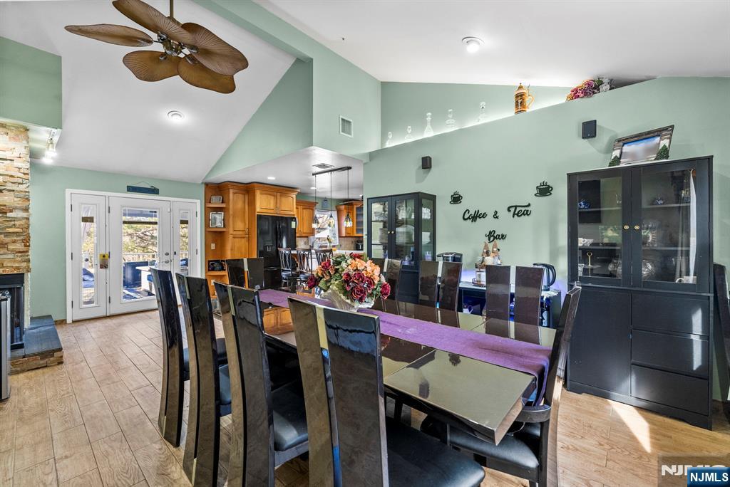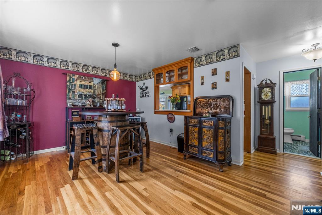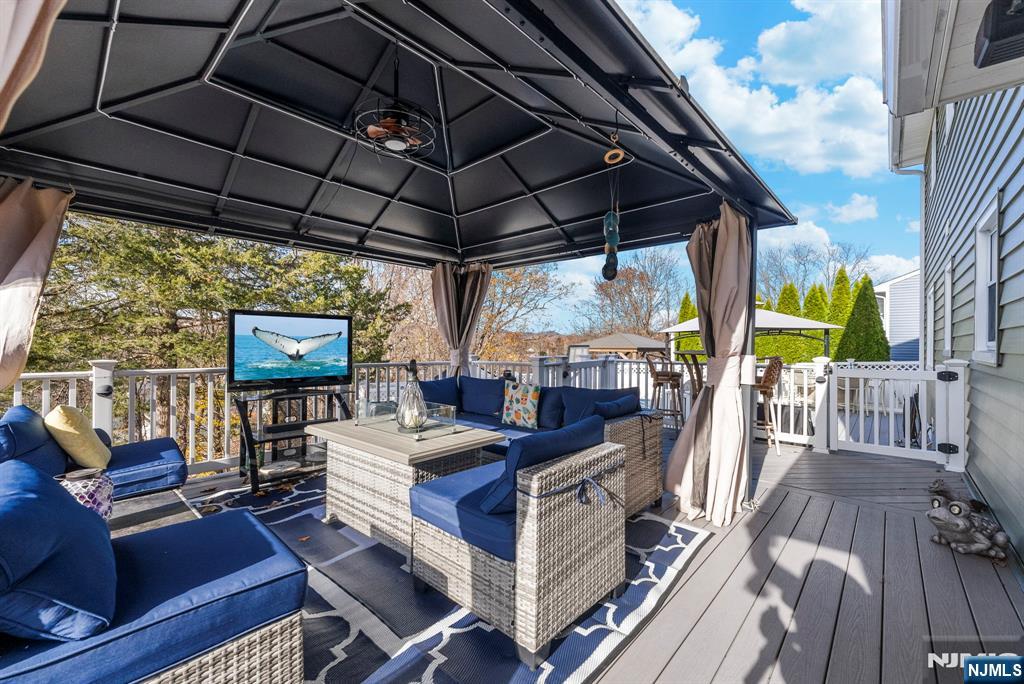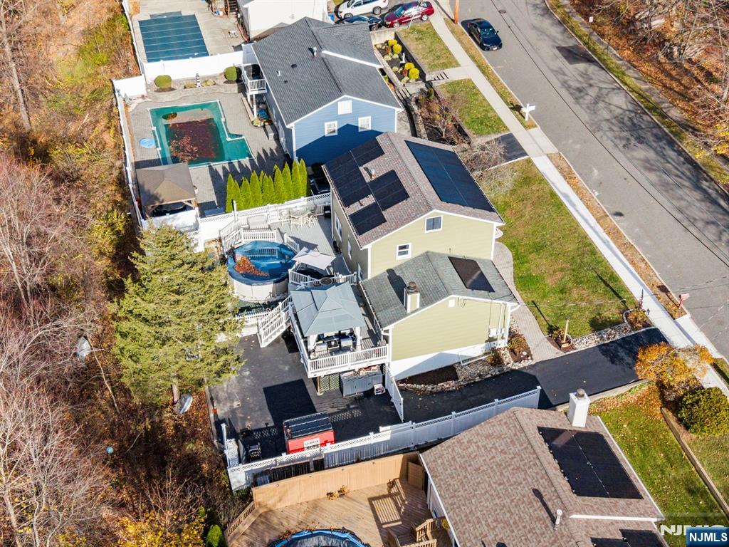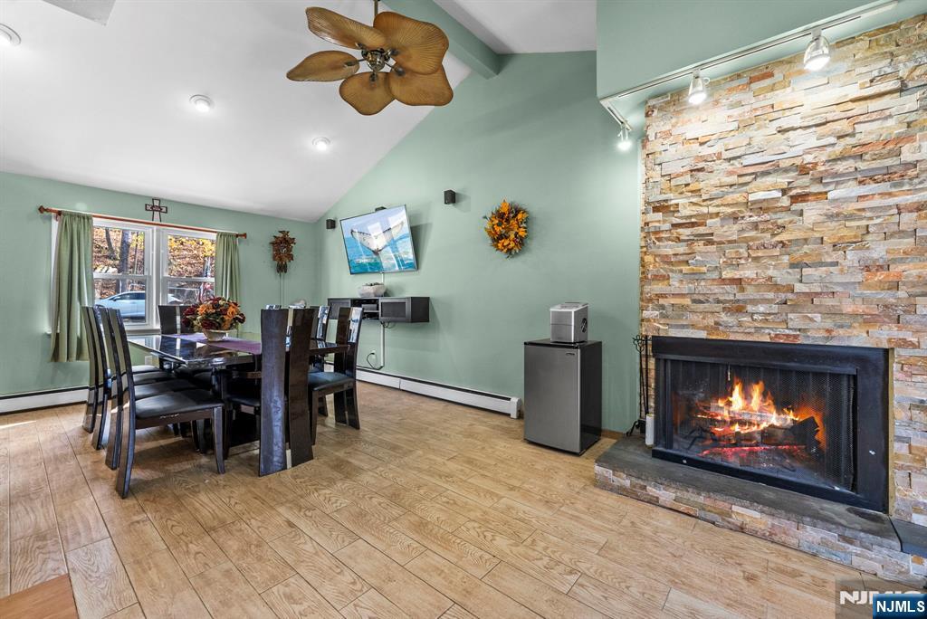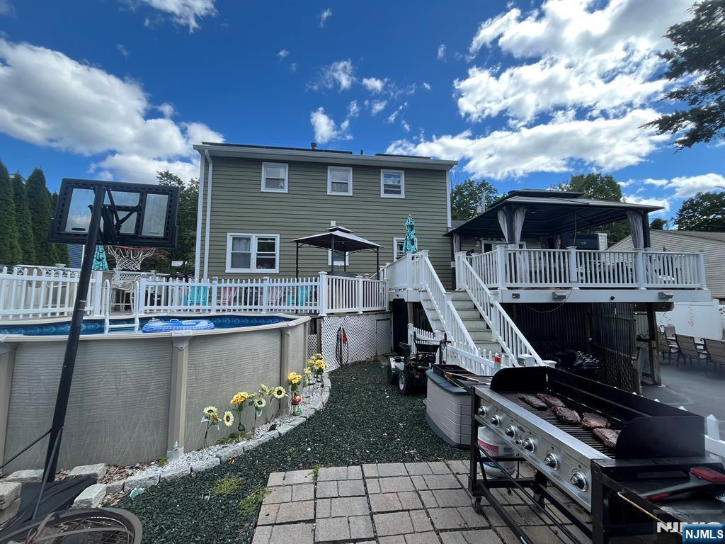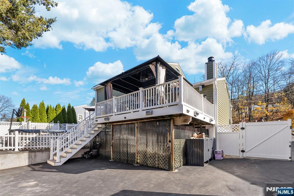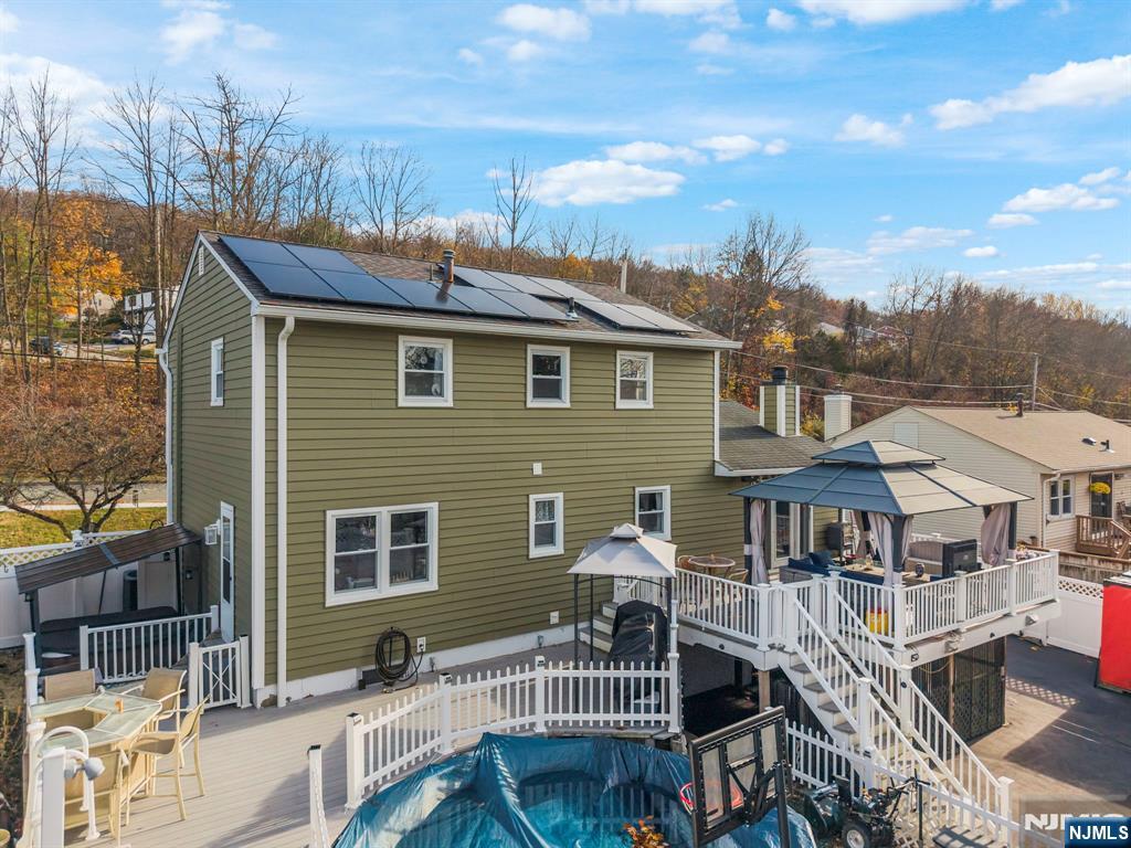 Step inside this beautiful colonial-style home and immediately feel the warmth of the cozy living room perfect for relaxing at the end of the day. The flow continues into the spacious eat-in kitchen, enhanced by custom cabinetry. Just off the kitchen, a dedicated wine room offers a stylish setting for entertaining guests. Toward the back of the home, the impressive family room features cathedral ceilings, a wood-burning fireplace, and a separate dining area. Flooded with natural light, this versatile space is ideal for relaxing, gathering or enjoying peaceful views of the backyard. A convenient main-level bath completes the first floor. Upstairs, the home offers four comfortable bedrooms and a full bathroom, along with a pull-down attic for generous storage. The lower level expands your living options even further, offering a bonus room, recreation area, laundry/utility room, and access to the two-car garage. Outside, the backyard is truly a retreat. Take in mountain views from the brand-new deck, enjoy outdoor meals or cool off in the above ground pool perfect for endless summer fun. Located in the peaceful borough of Wanaque, this home provides a quiet suburban lifestyle embraced by nature, while still offering convenient access to nearby amenities and city life.